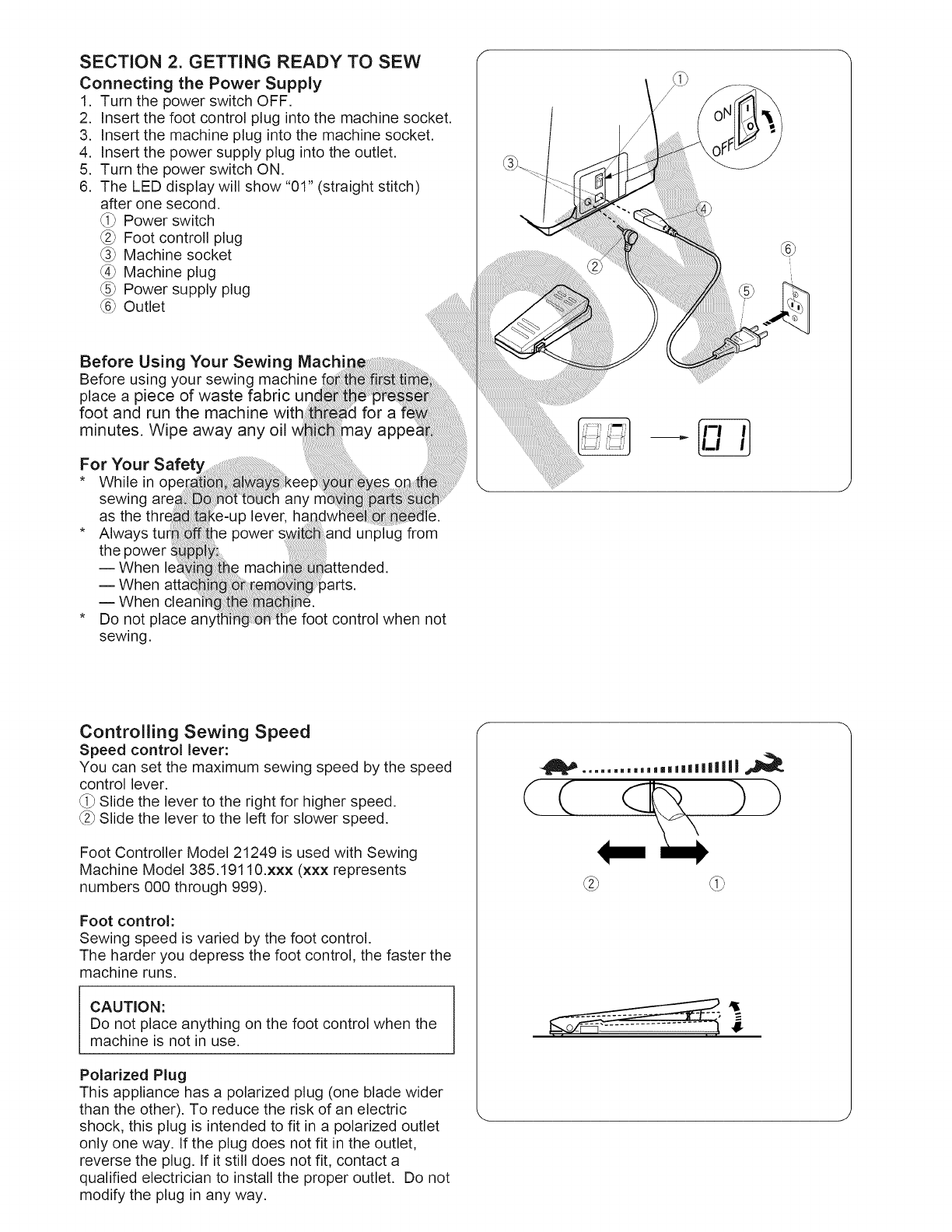 15. Always unplug this sewing machine from the electrical outlet when removing covers, lubricating, or when making any