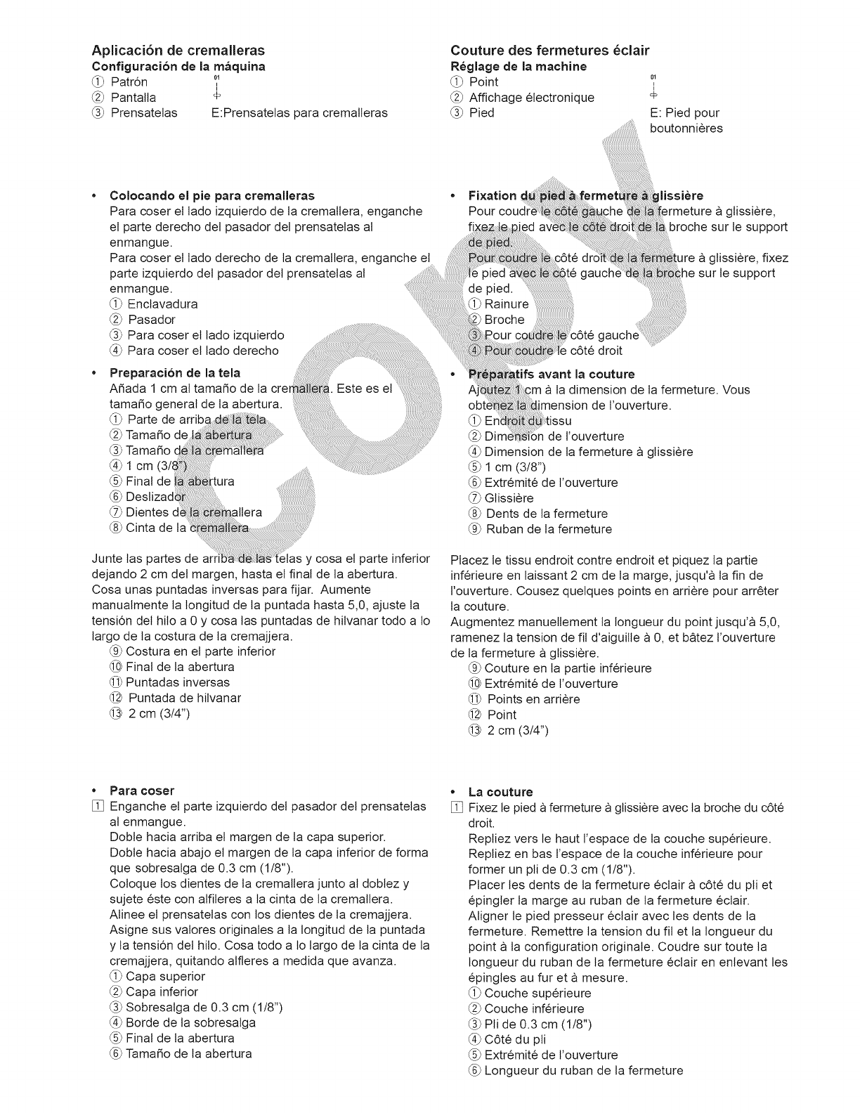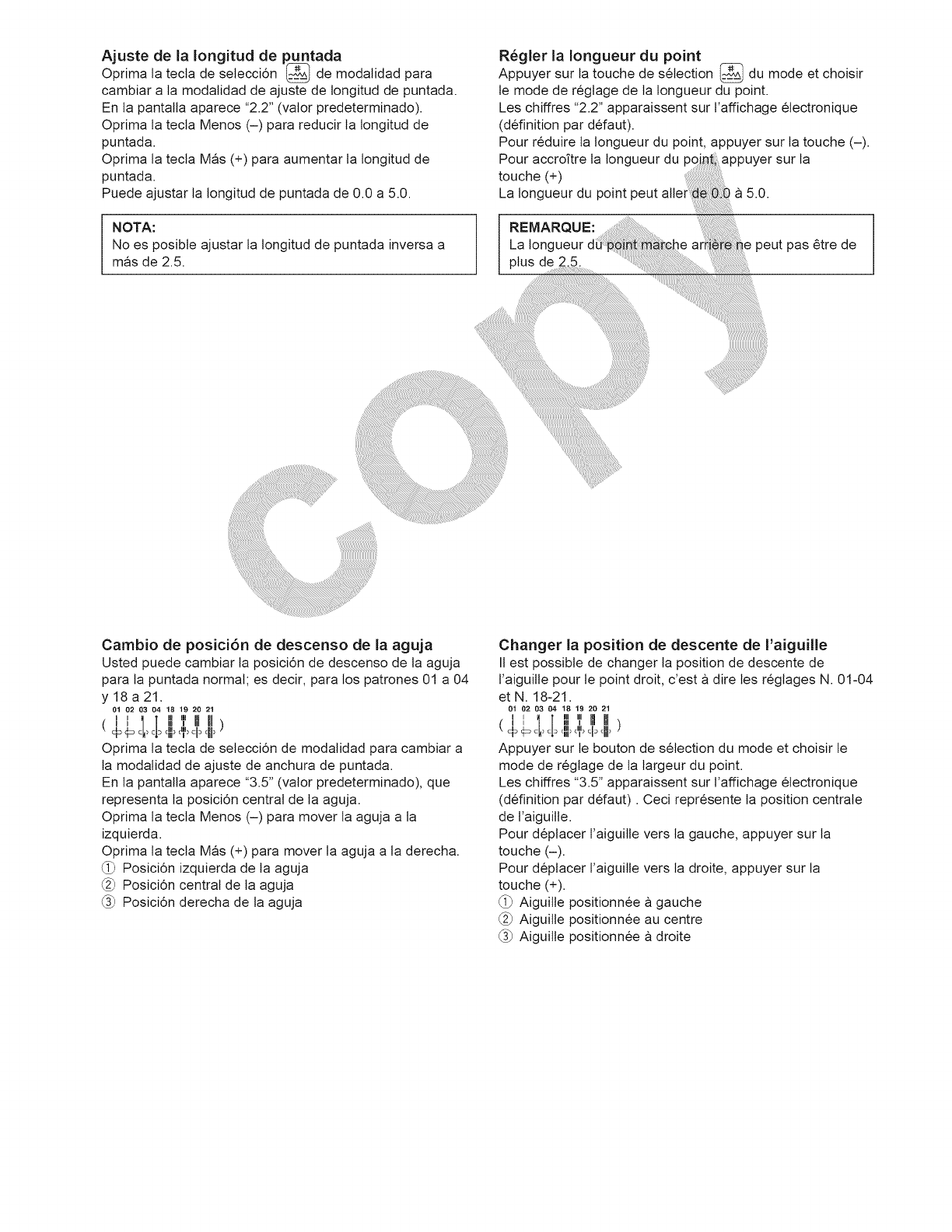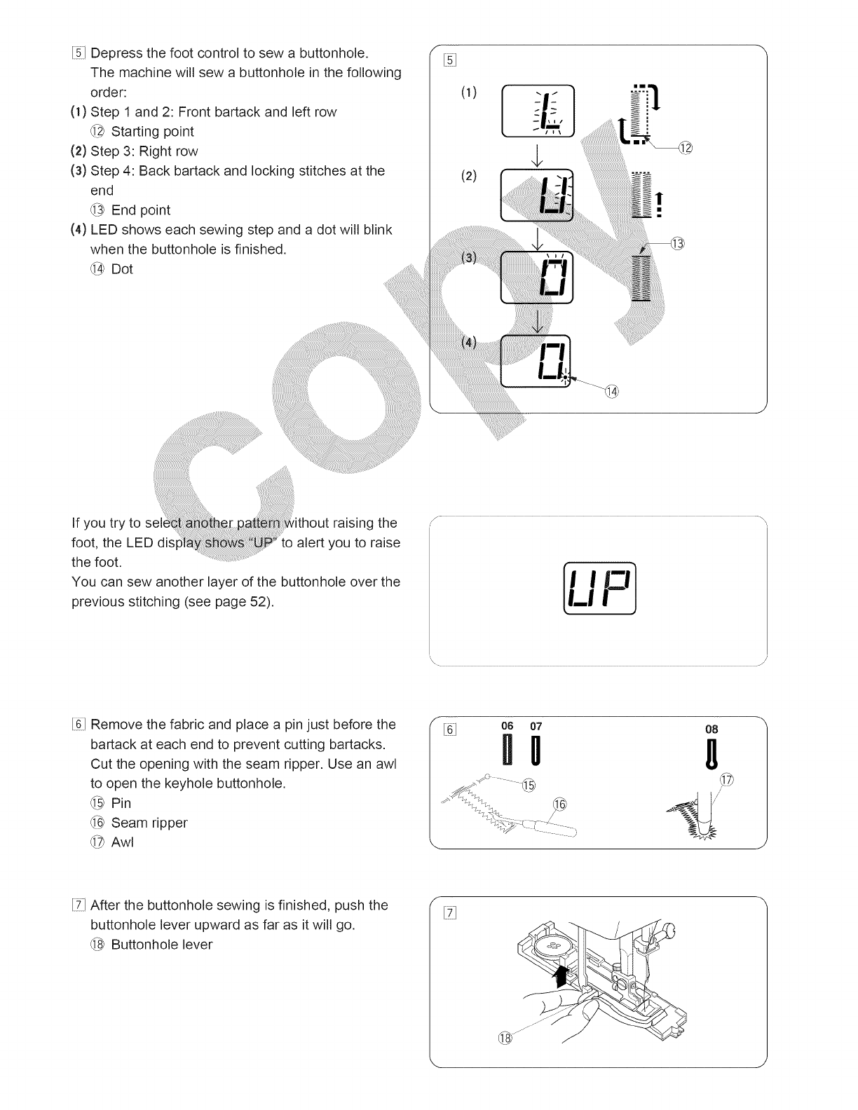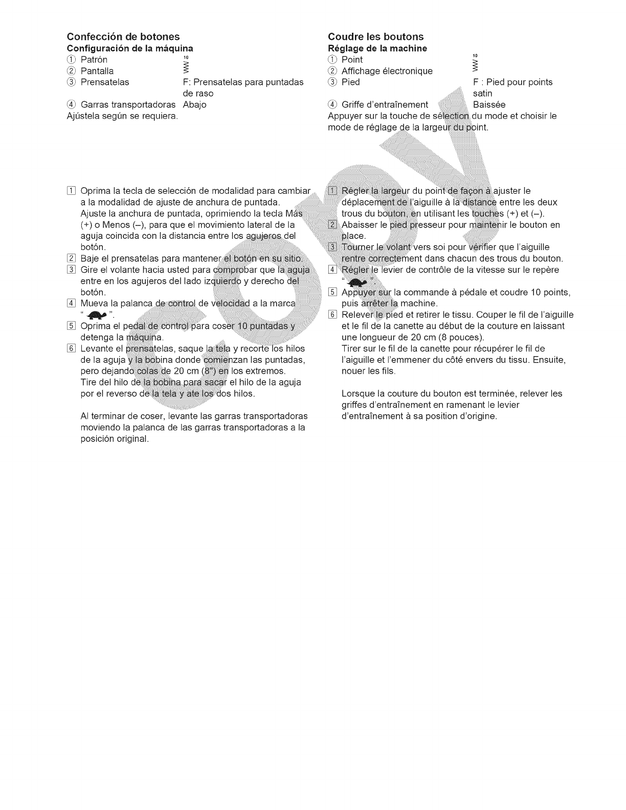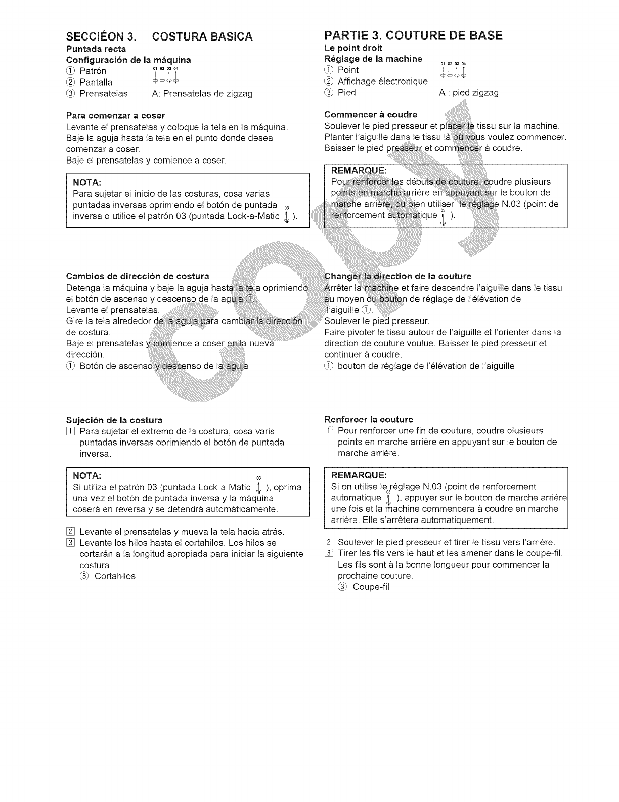 14. Apague esta maquina de coser ("O") cada vez que tenga que hacer ajustes en la zona de la aguja, como enhebrar