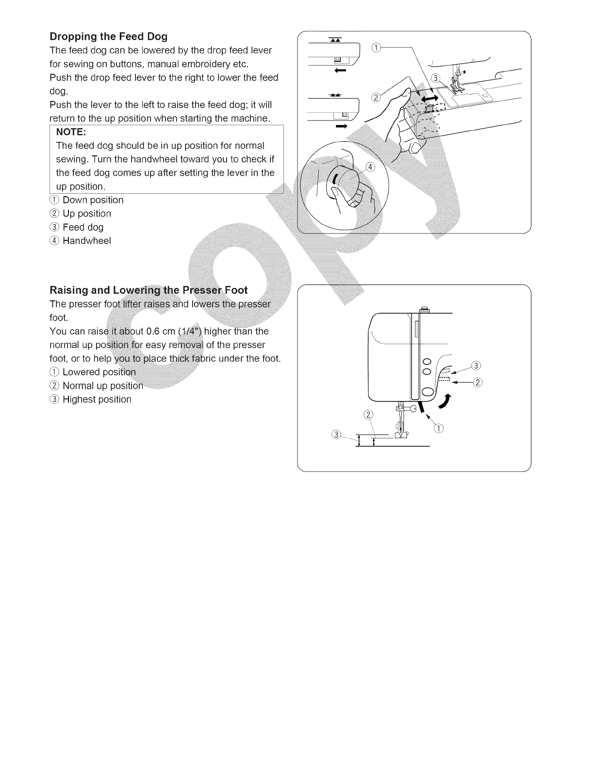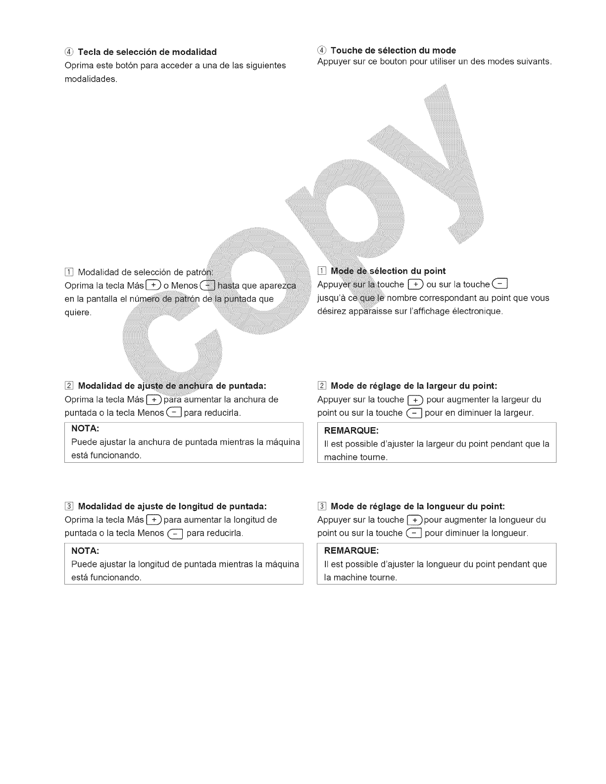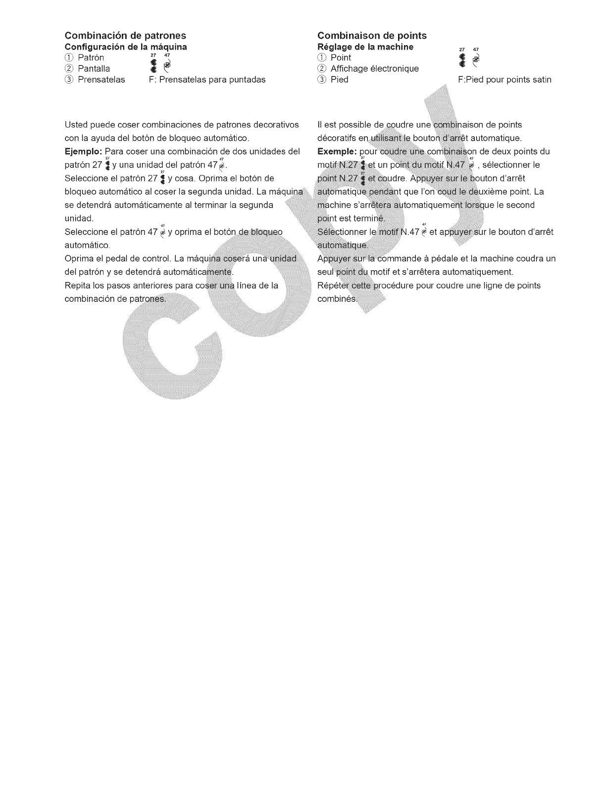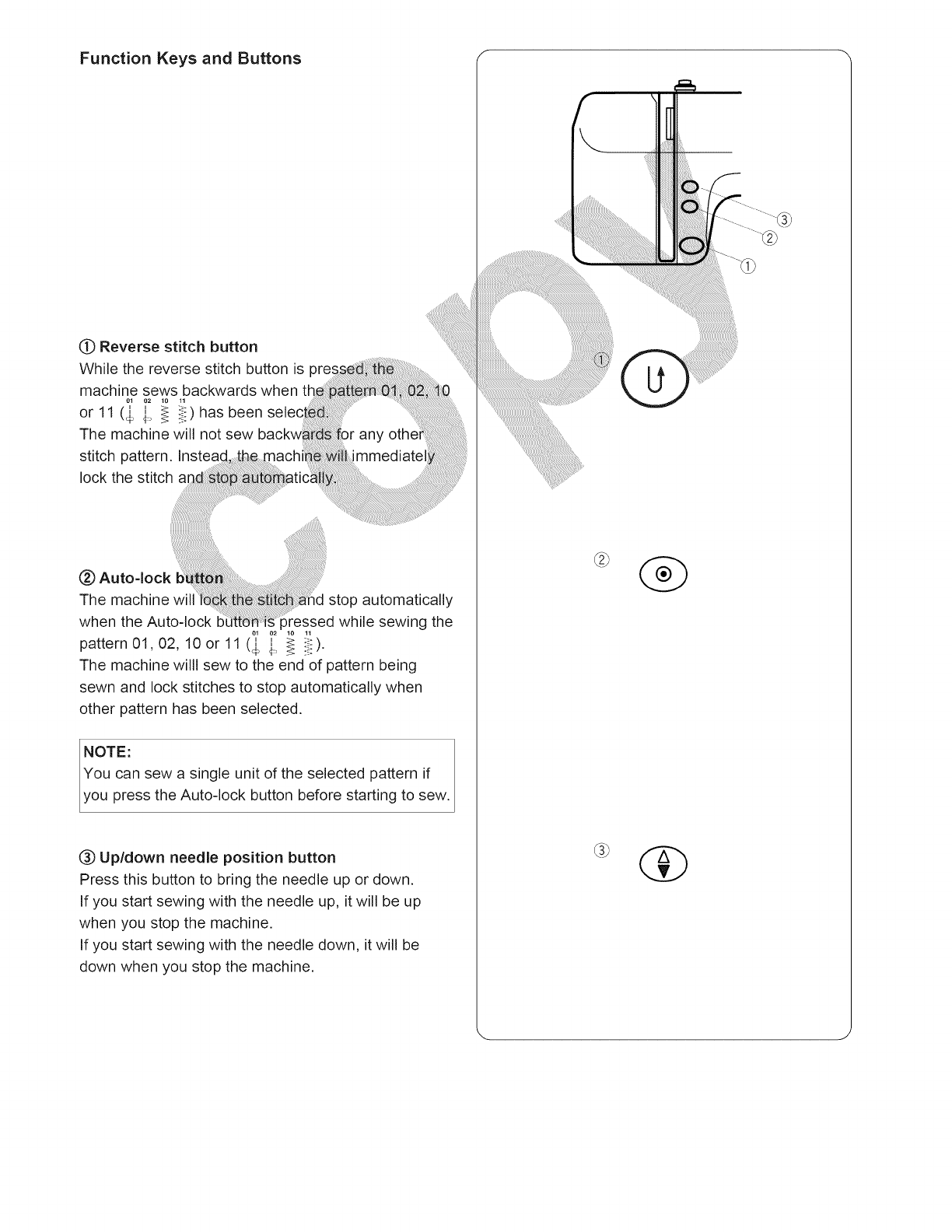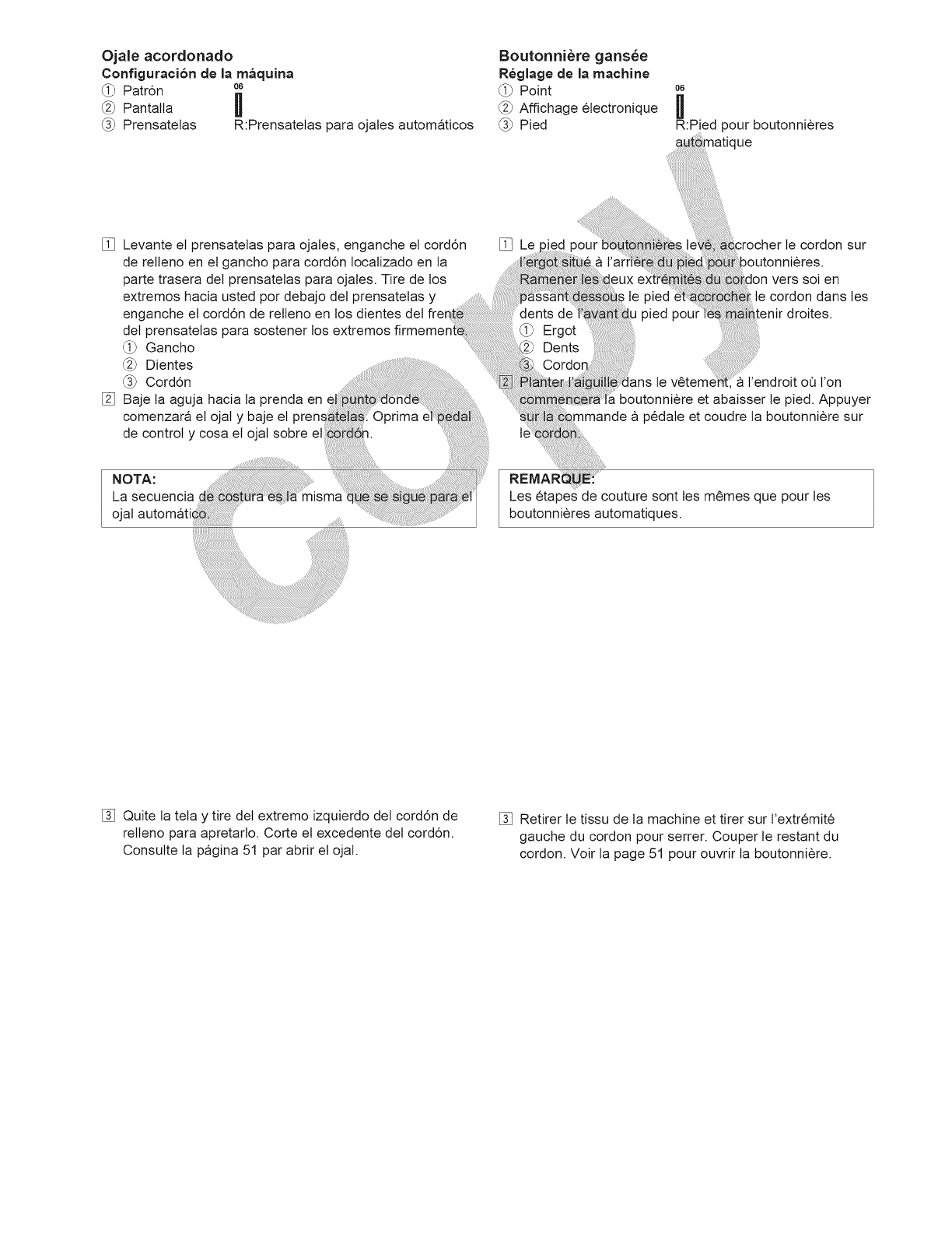 14. Apague esta maquina de coser ("O") cada vez que tenga que hacer ajustes en la zona de la aguja, como enhebrar