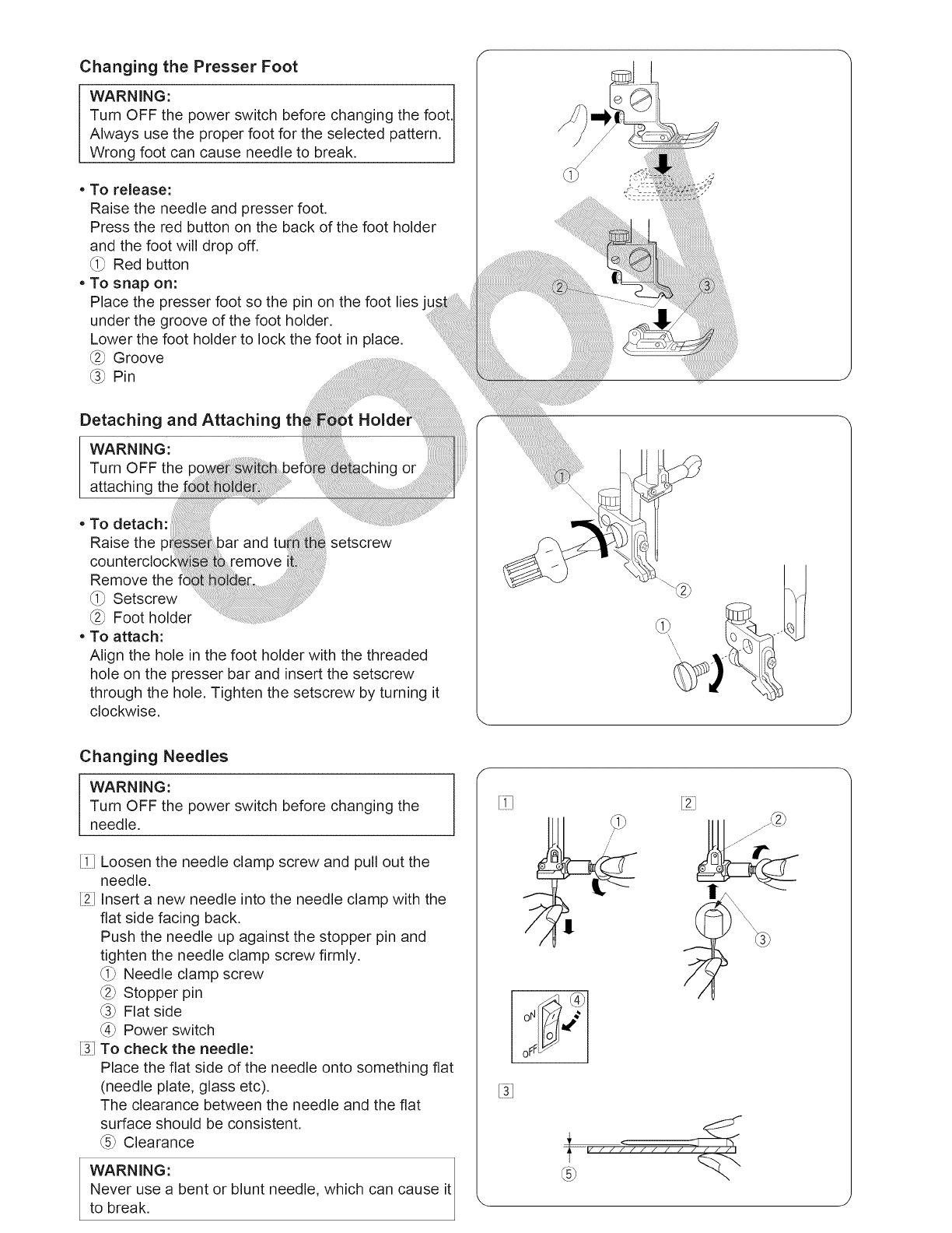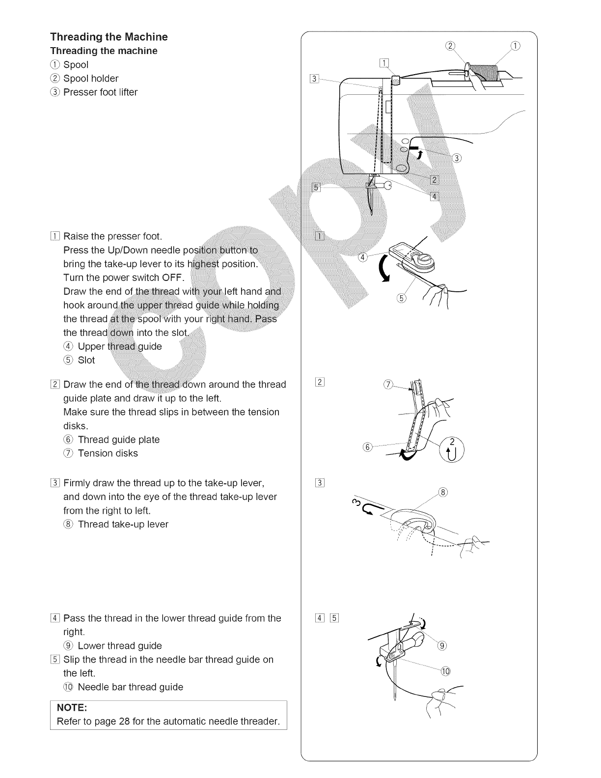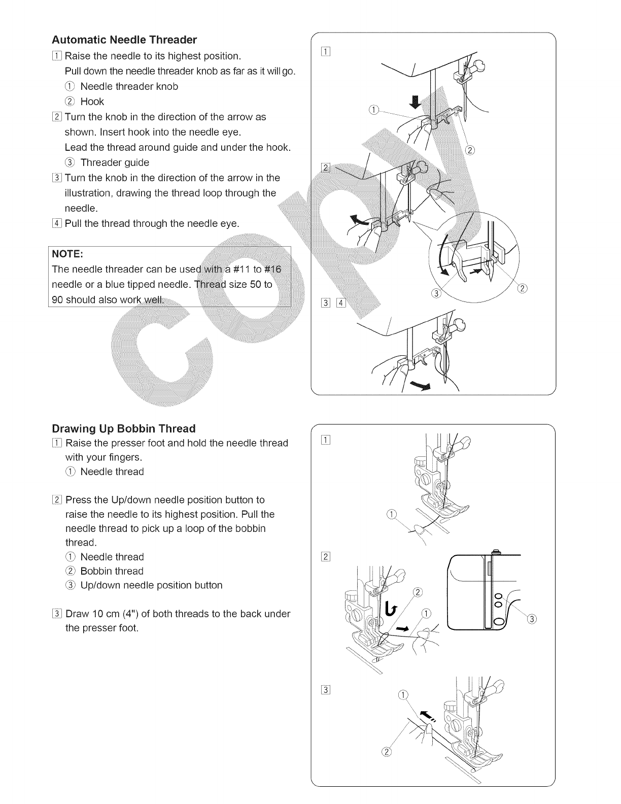 changing the needle, threading the bobbin, changing the presser foot, and the like.