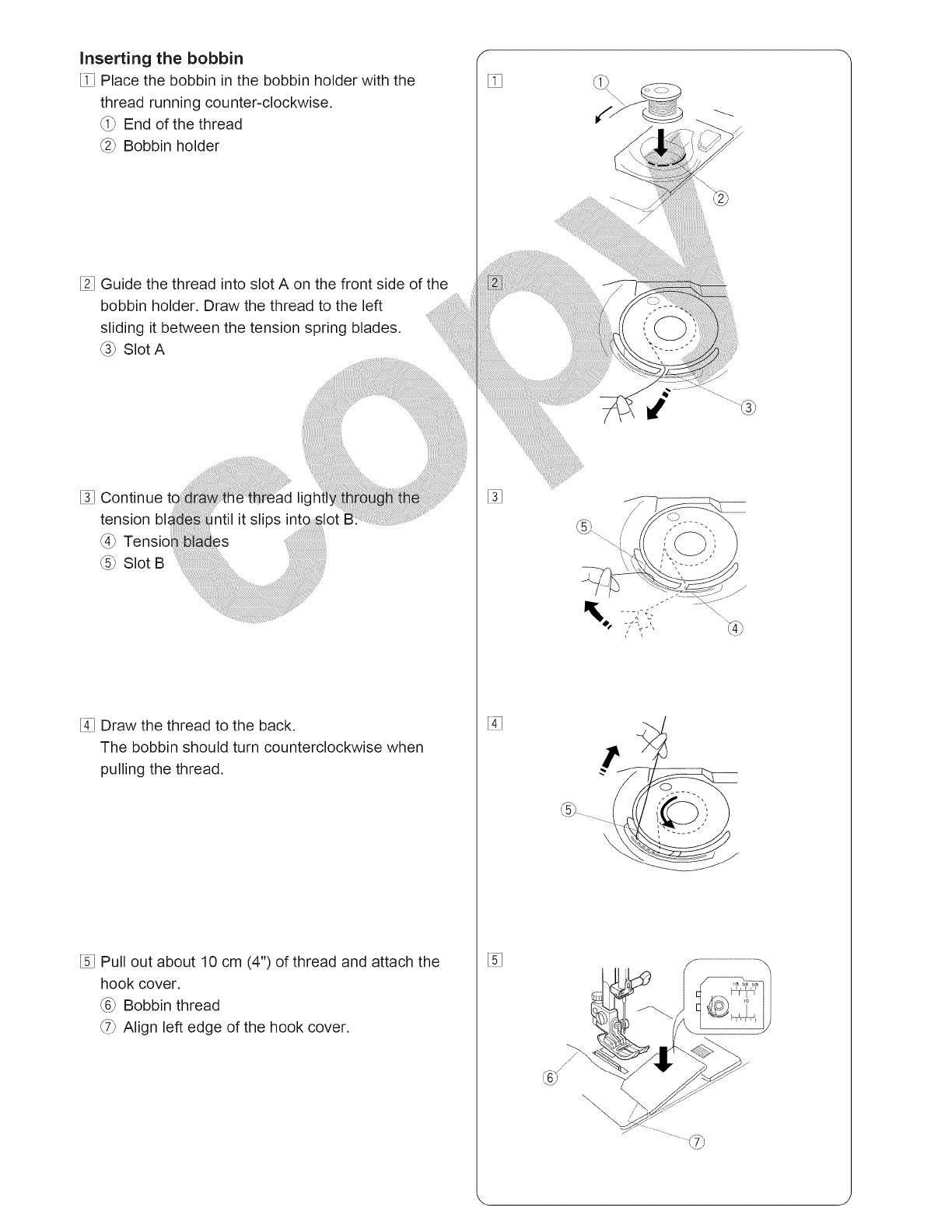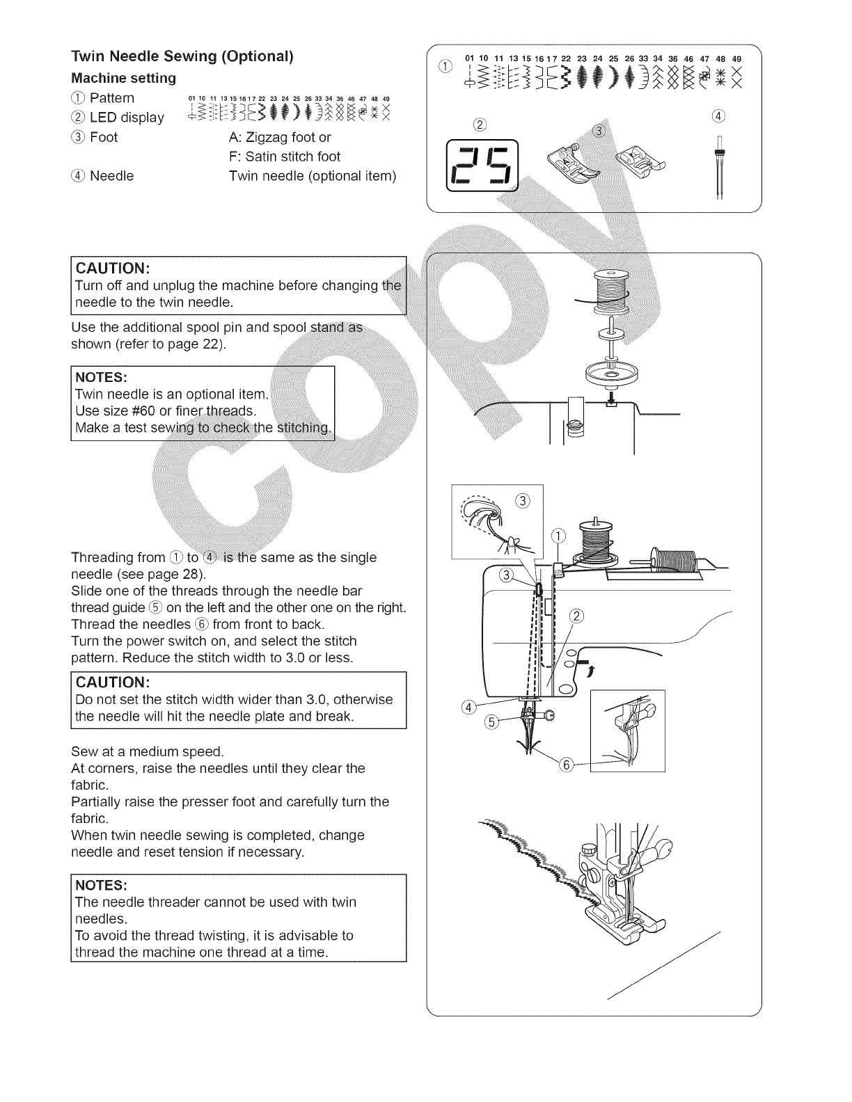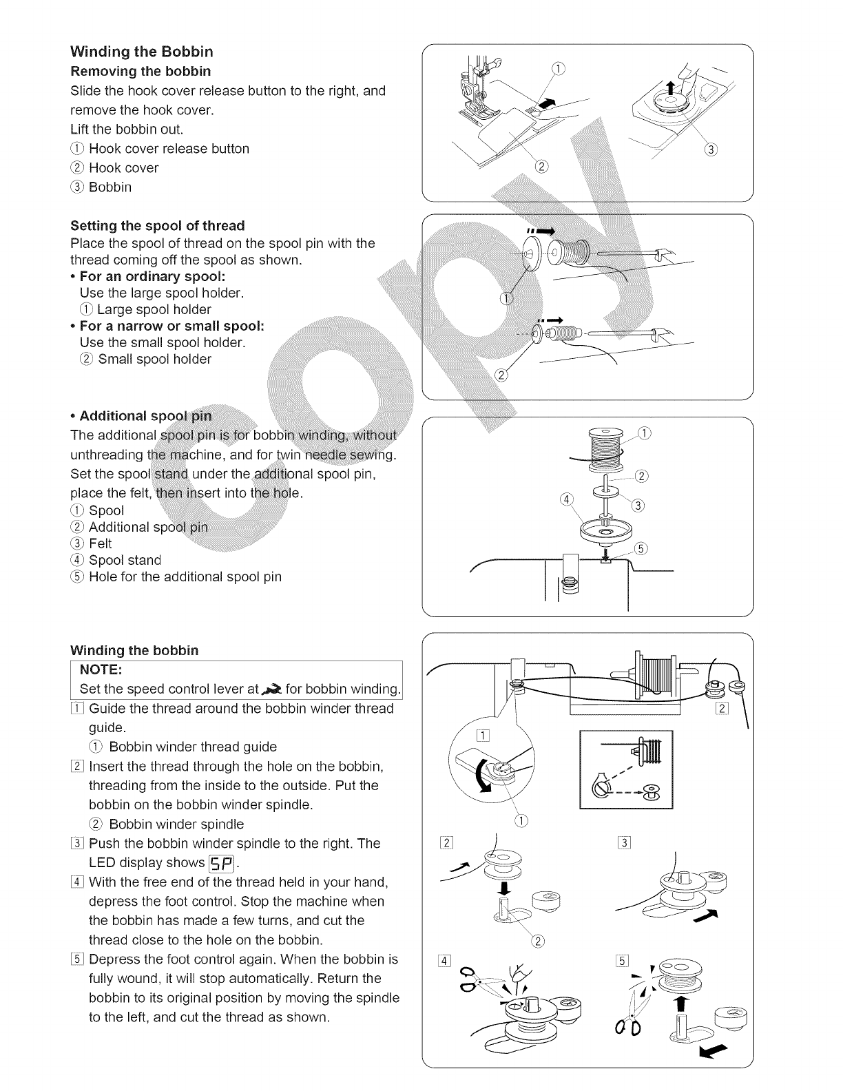 changing the needle, threading the bobbin, changing the presser foot, and the like.