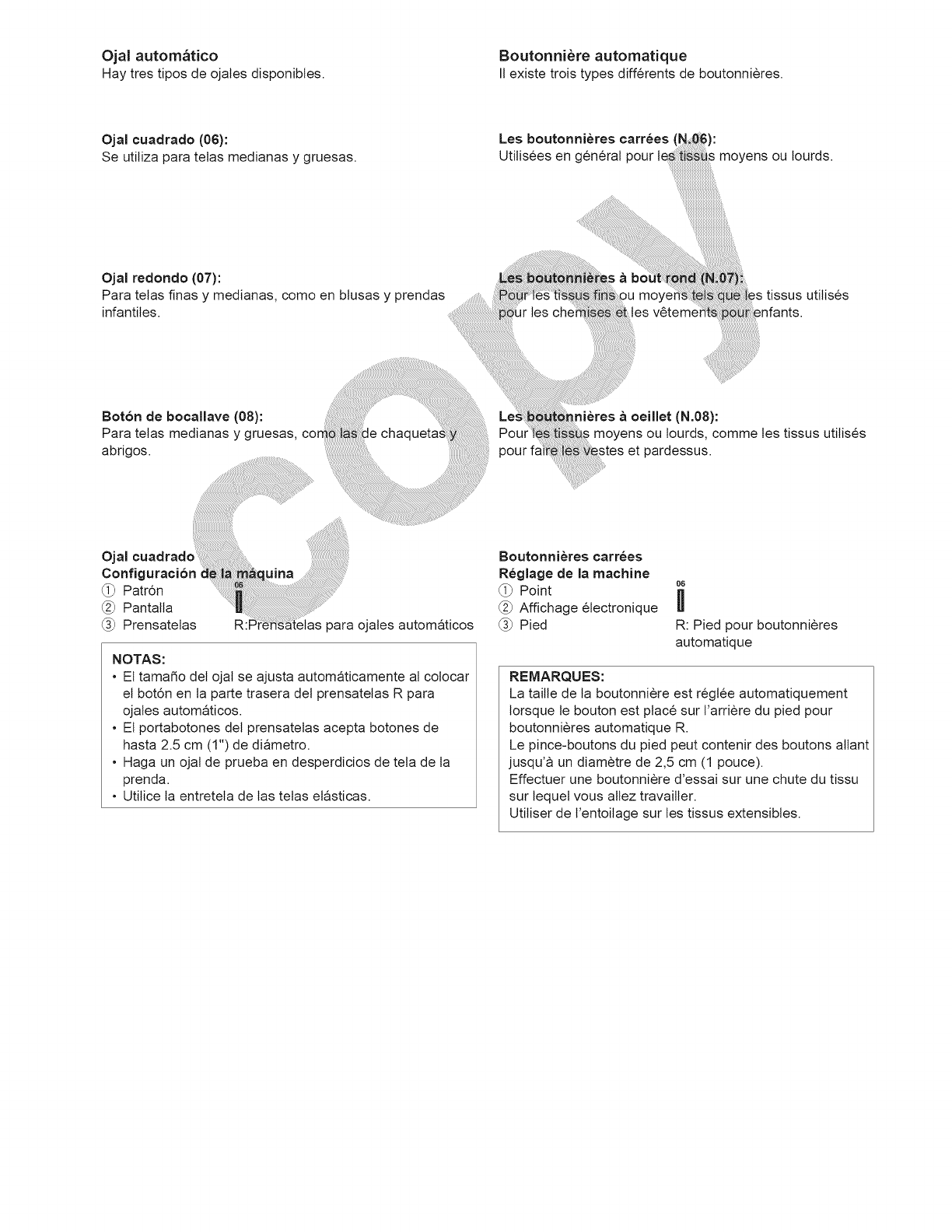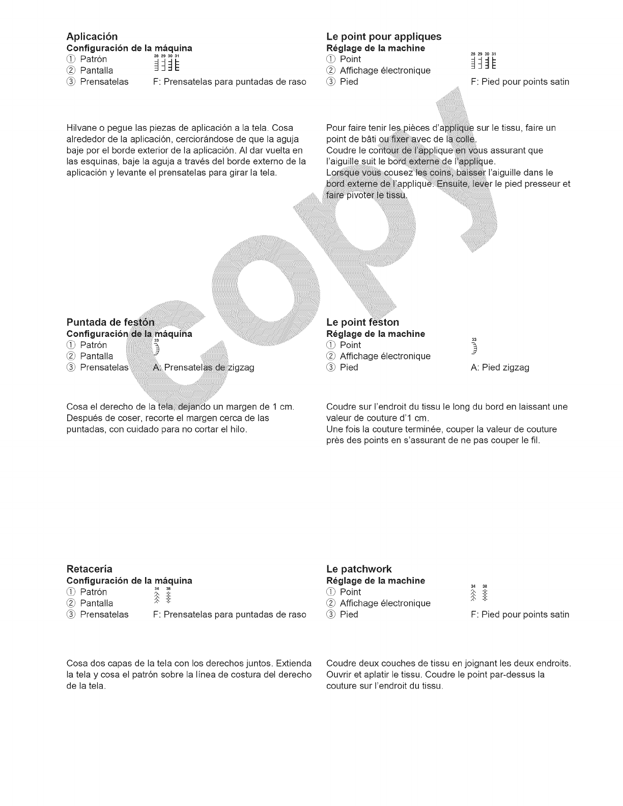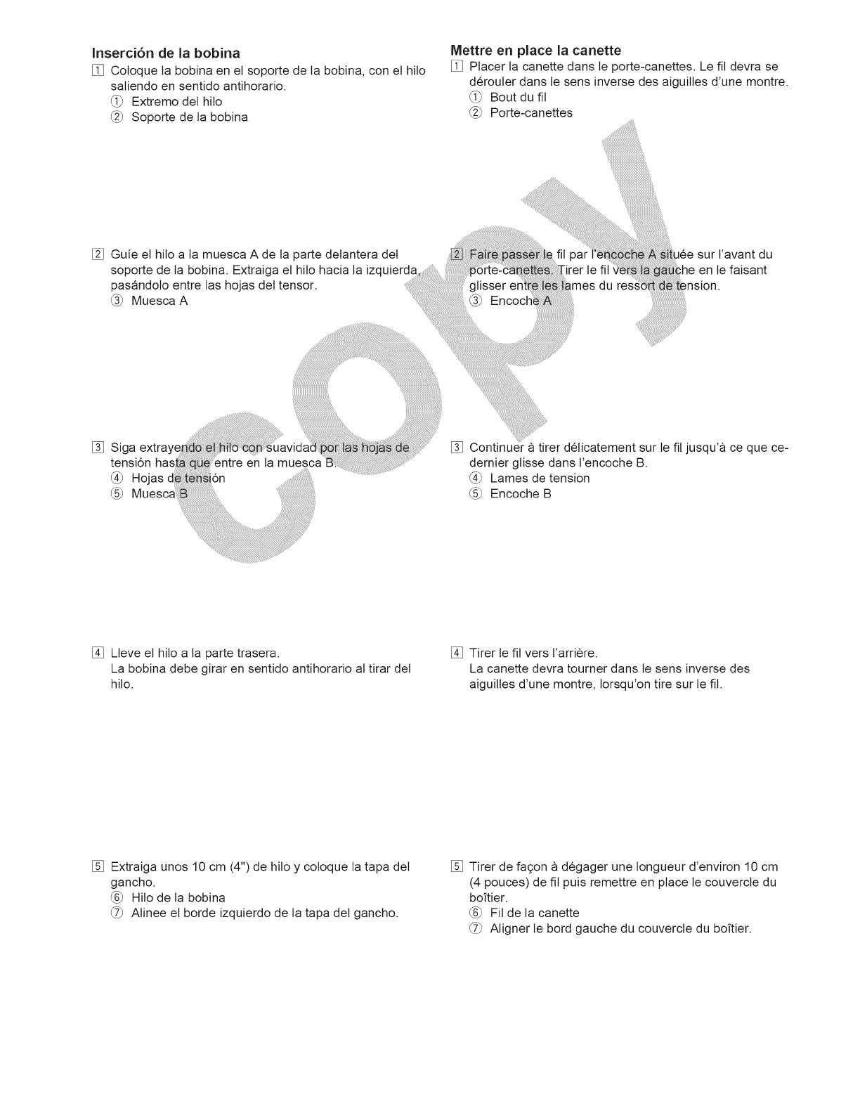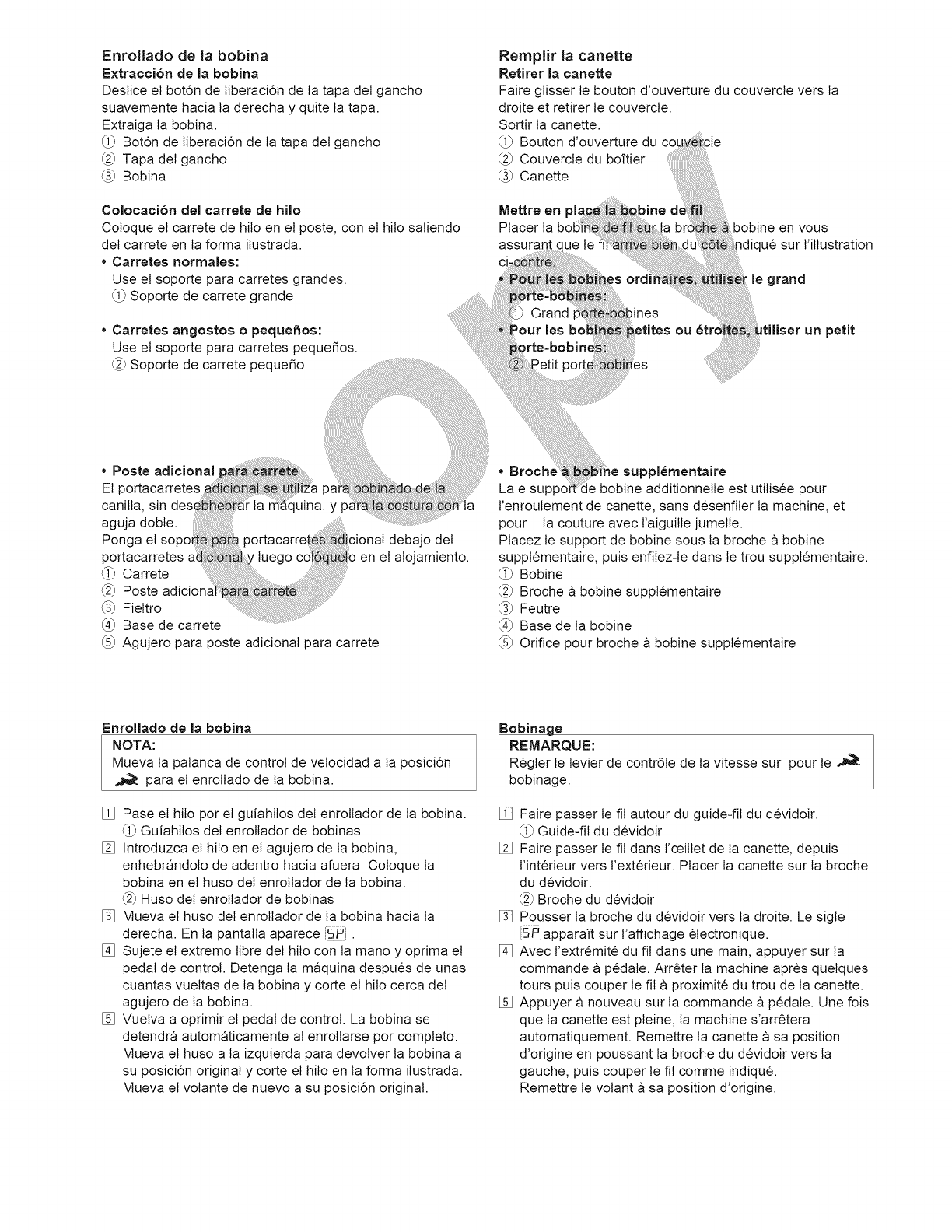 la aguja, cambiar la aguja, enhebrar la bobina, cambiar el prensatelas y operaciones similares.