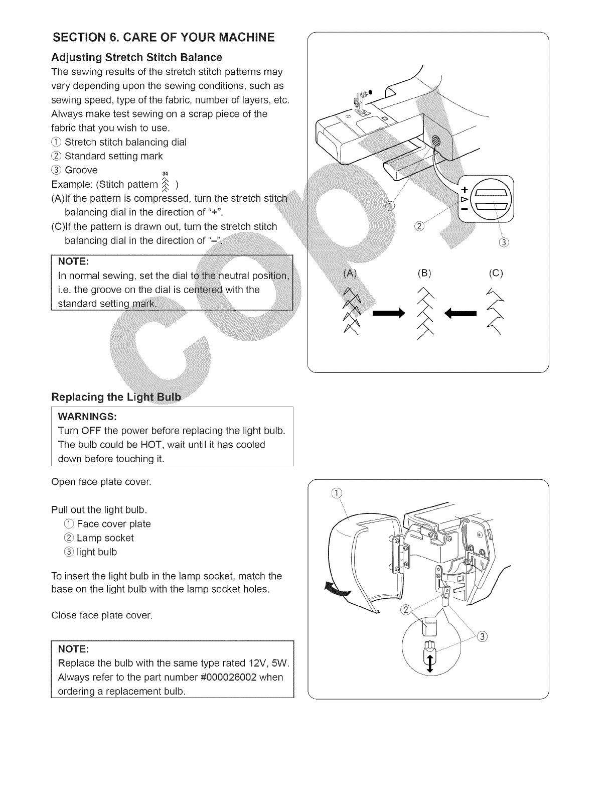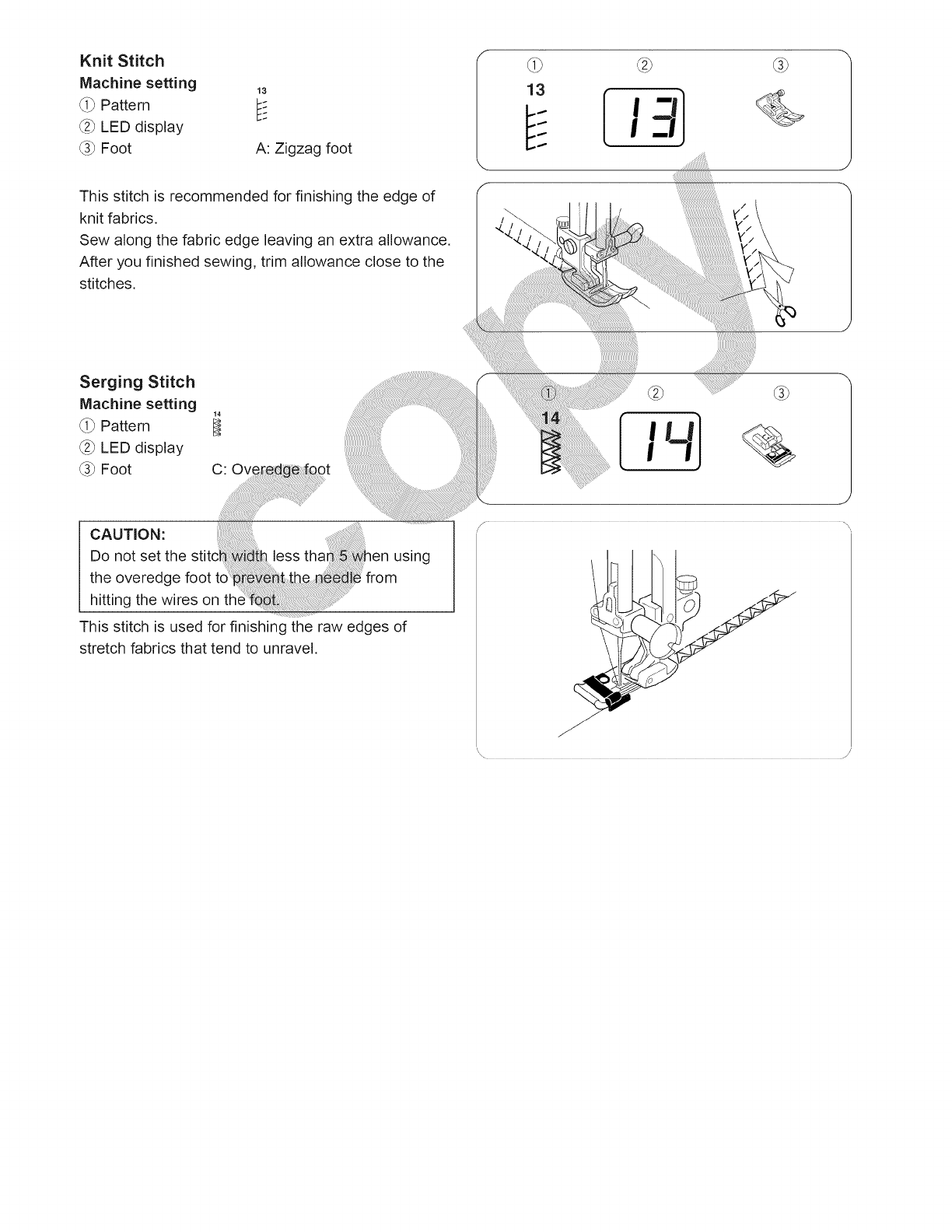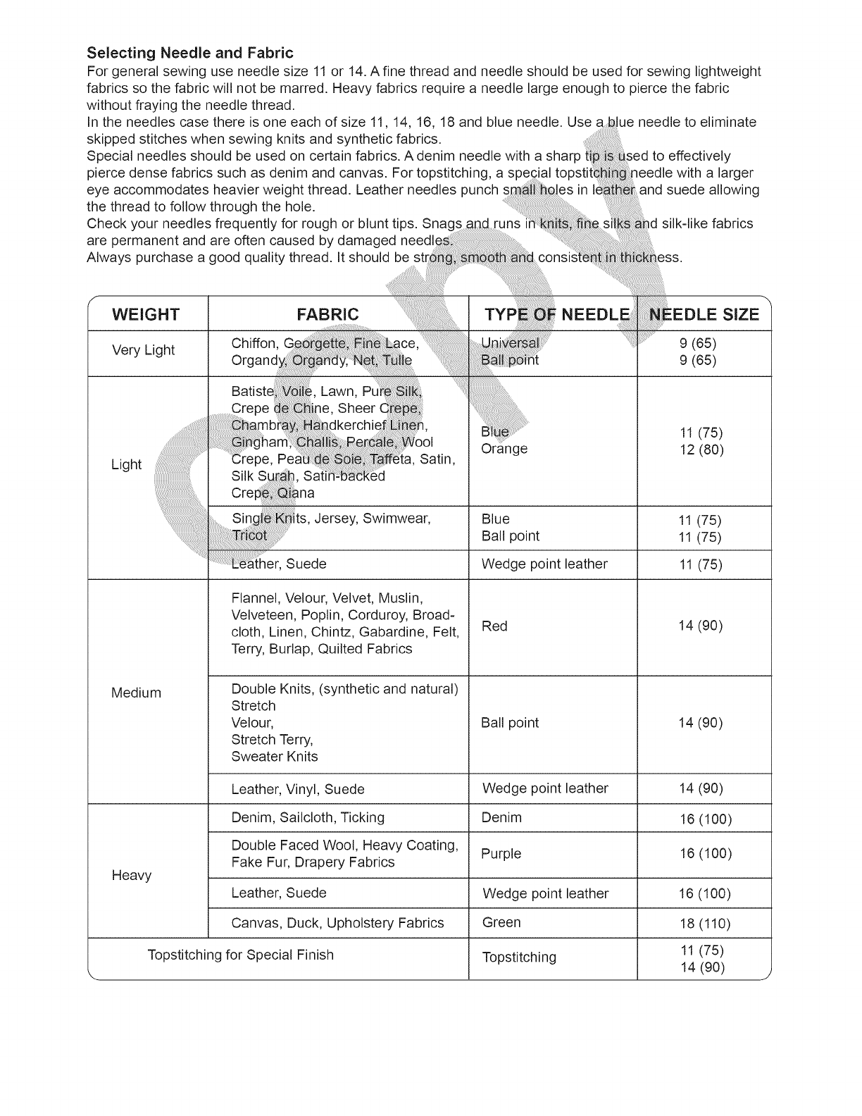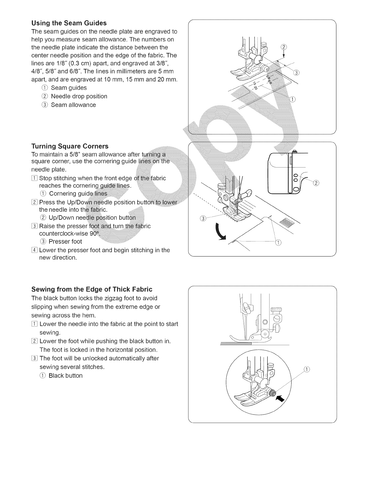 13. Do not pull or push fabric while stitching. It may deflect the needle causing it to break.