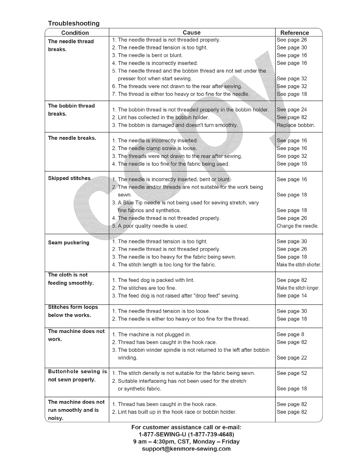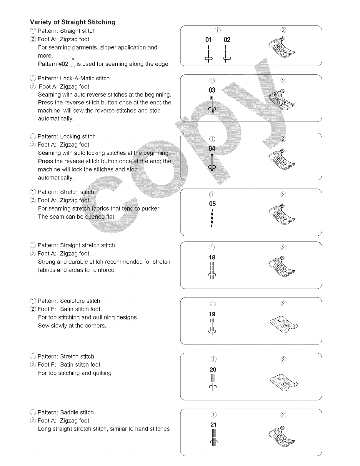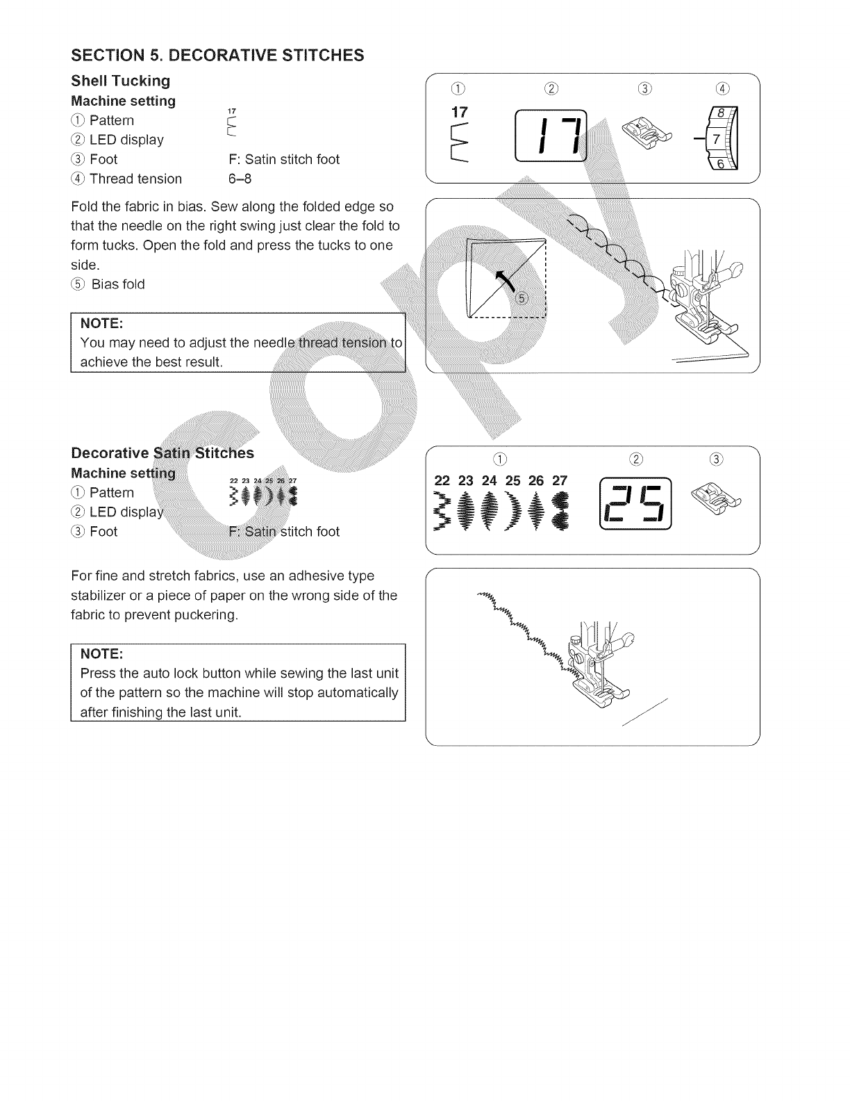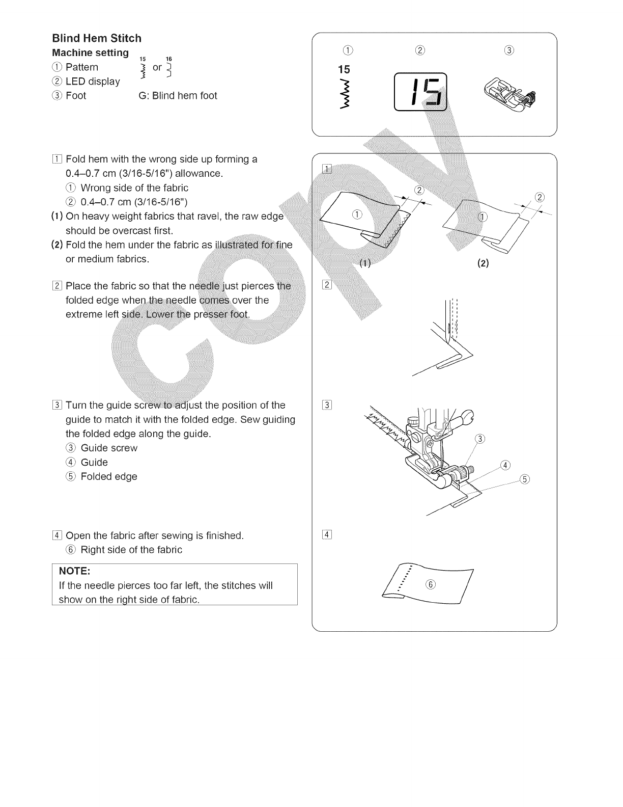 13. Do not pull or push fabric while stitching. It may deflect the needle causing it to break.