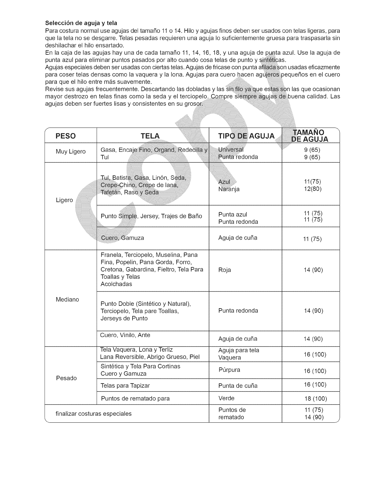 11. Utilice siempre la placa de agujas adecuada. Una placa incorrecta puede hacer que se rompa la aguja.