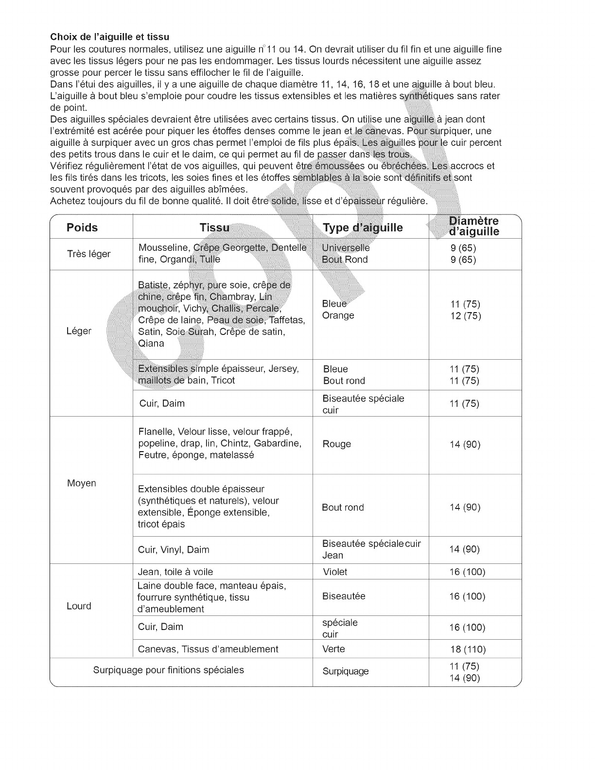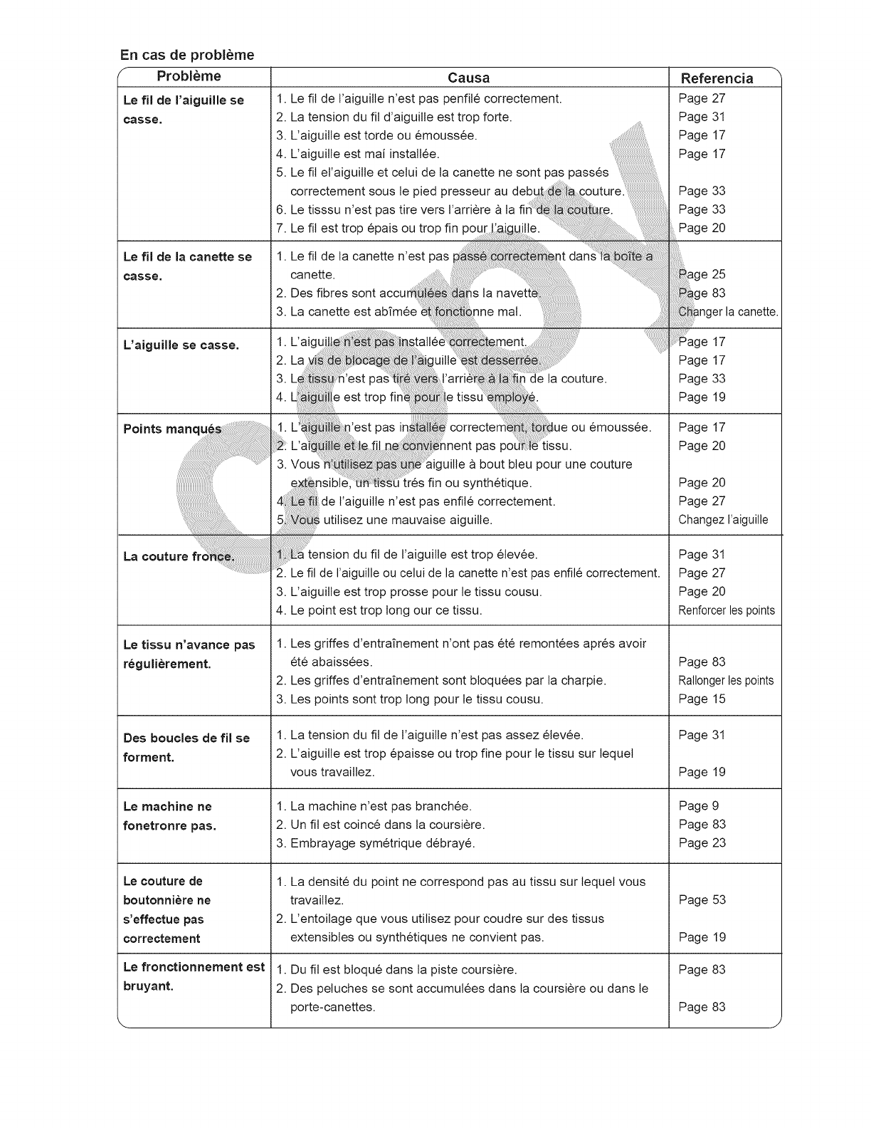 3. L'aiguitle est trop prosse pour te tissu cousu.