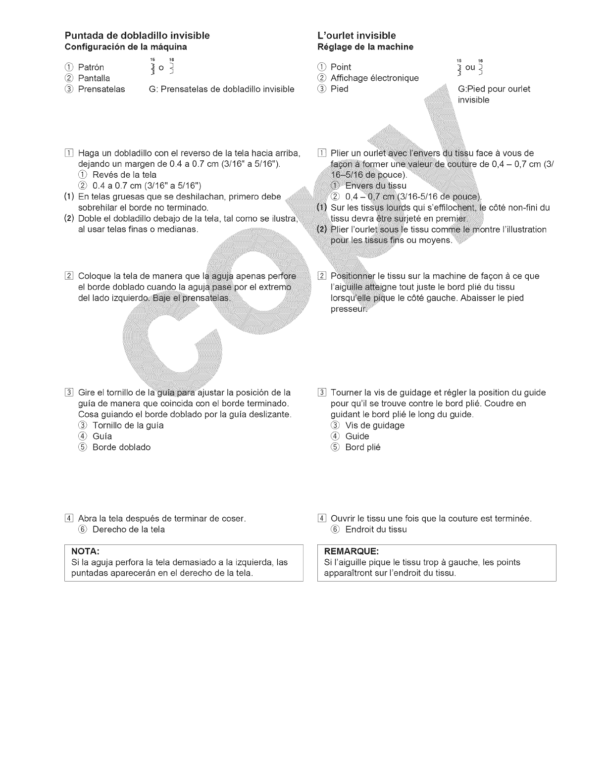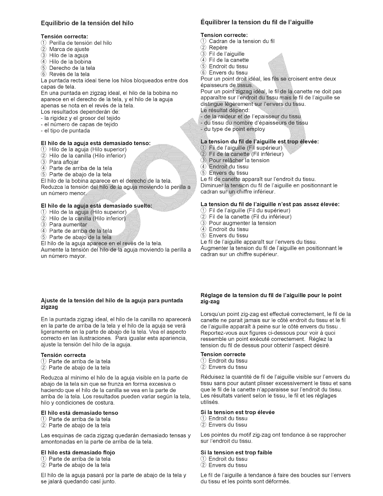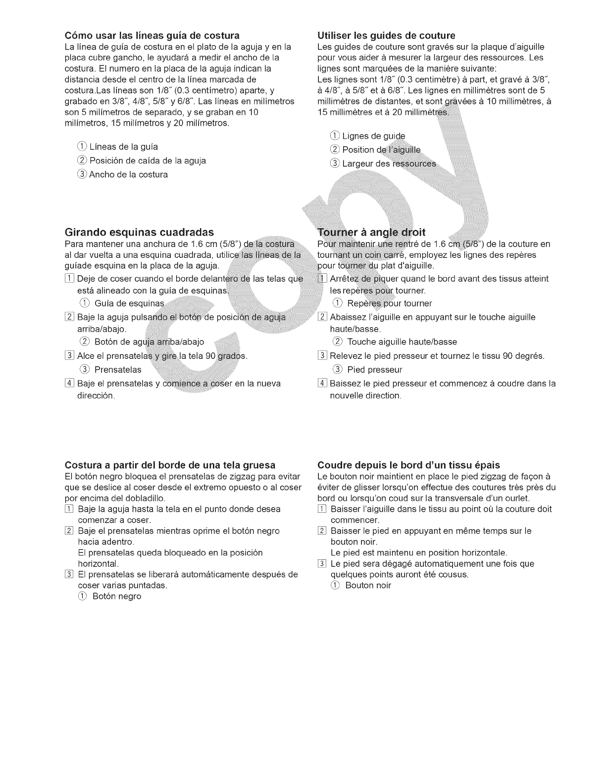13. No tire de la tela ni la empuje mientras est6 cosiendo. La aguja podda desviarse y romperse.