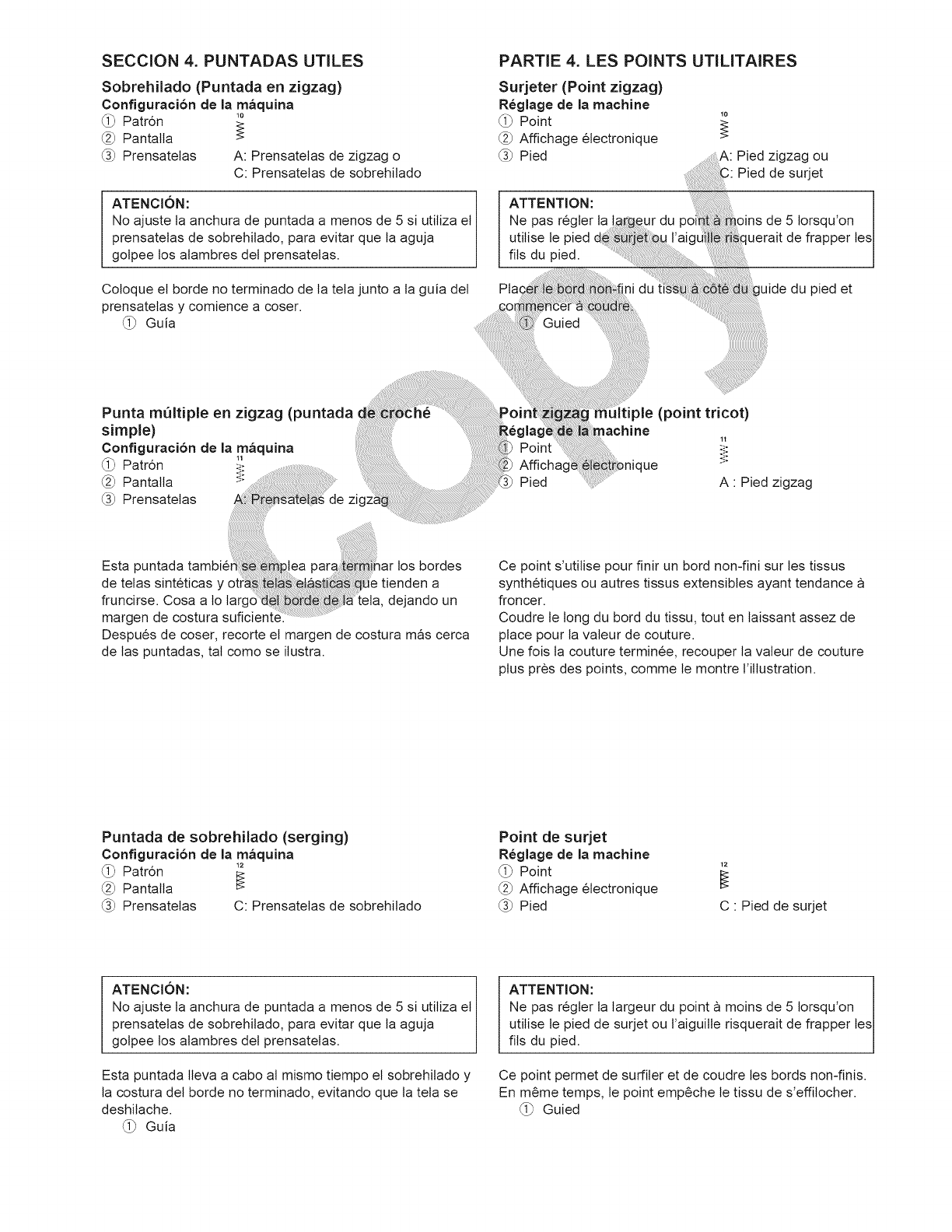 10. Mantenga los dedos alejados de todas las piezas m6viles. Tenga especial cuidado alrededor de la aguja de la