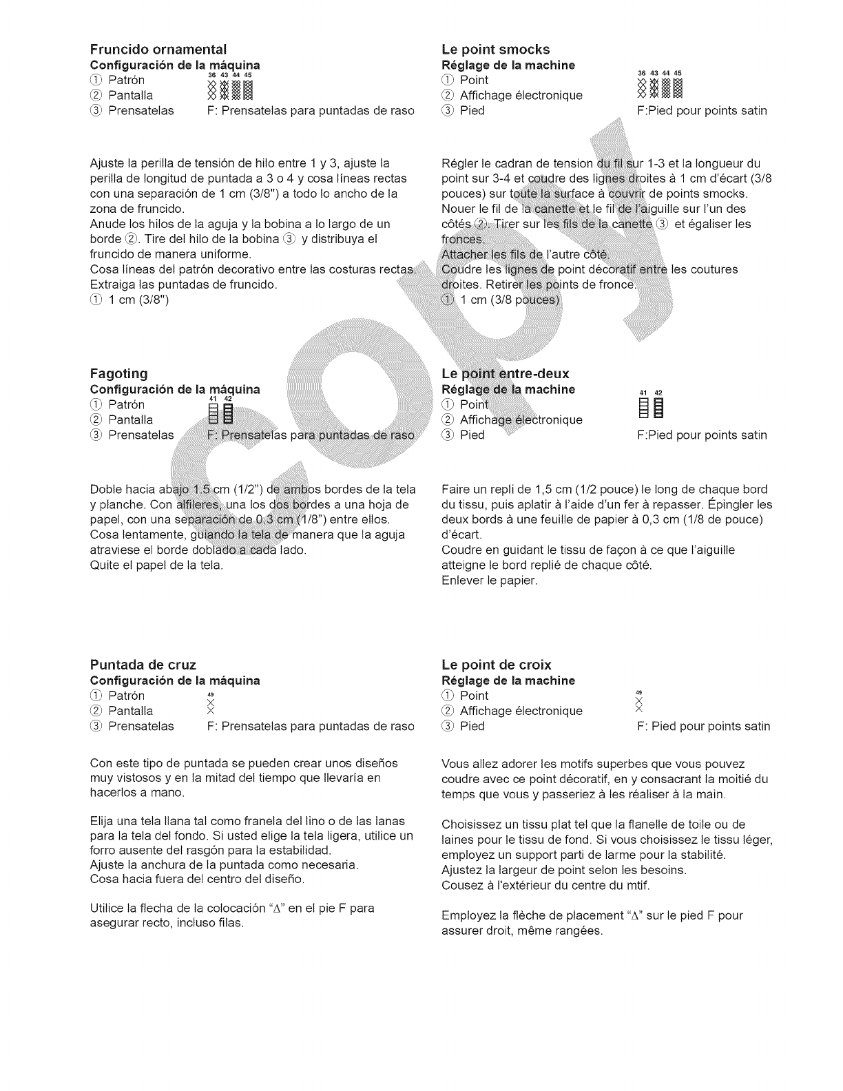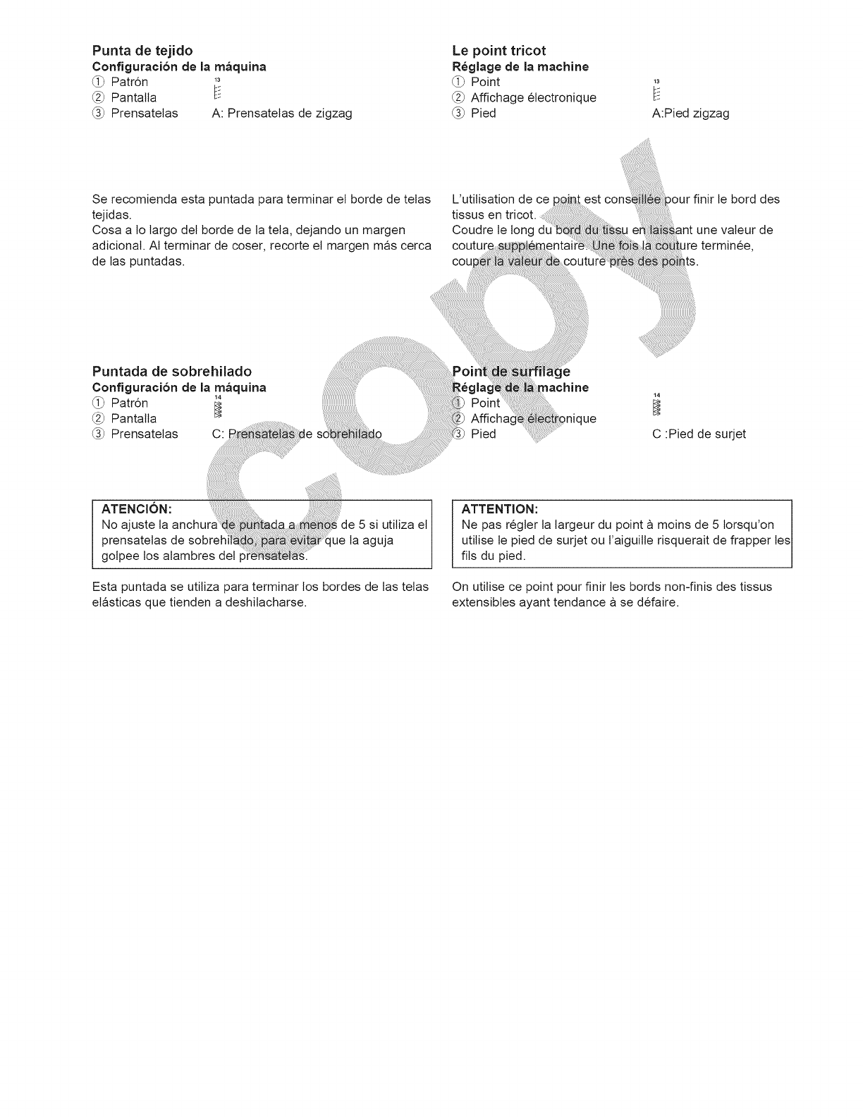1. La densite du point ne correspond pas au tissu sur lequet vous