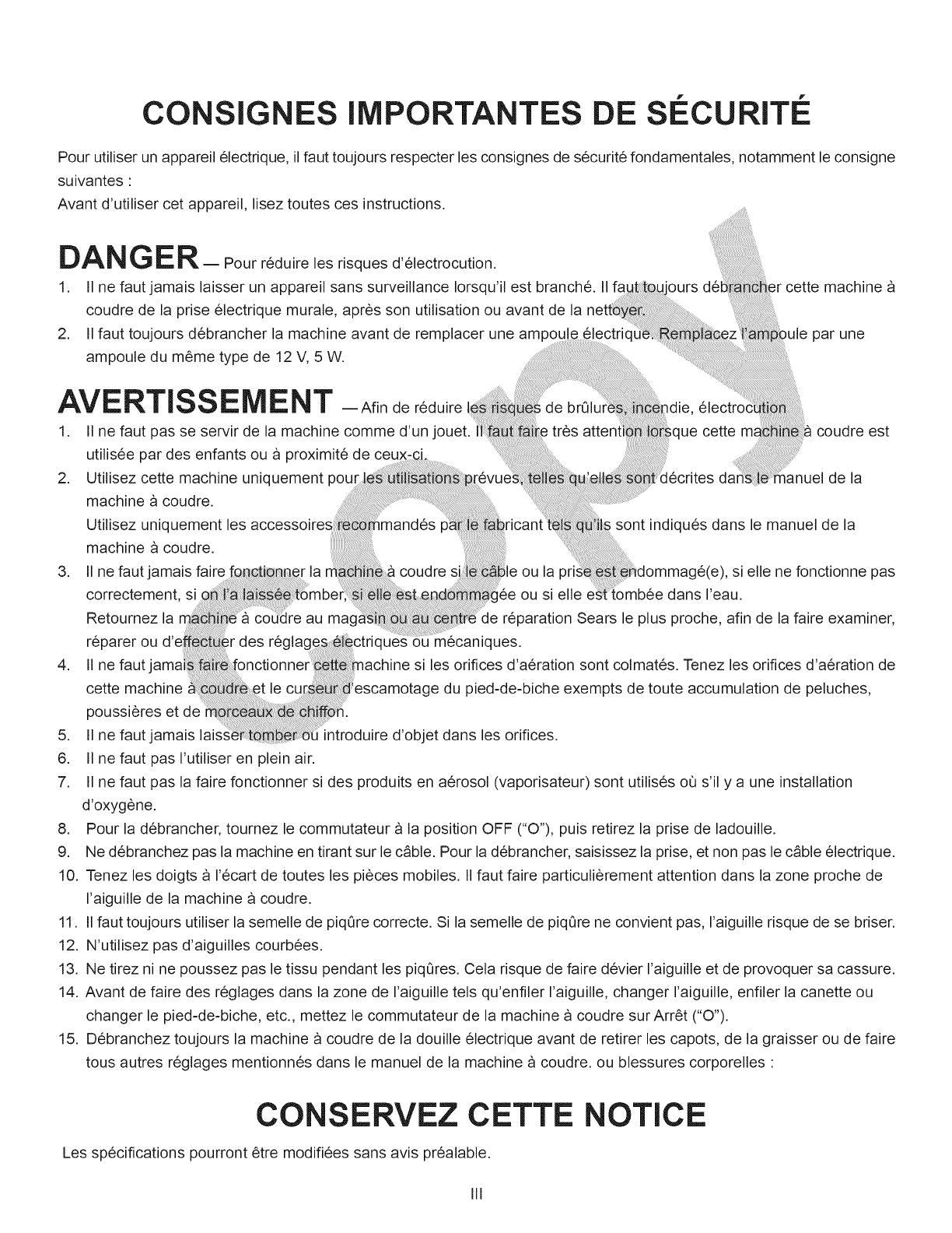 CONSIGNES IMPORTANTES DE SECURITI