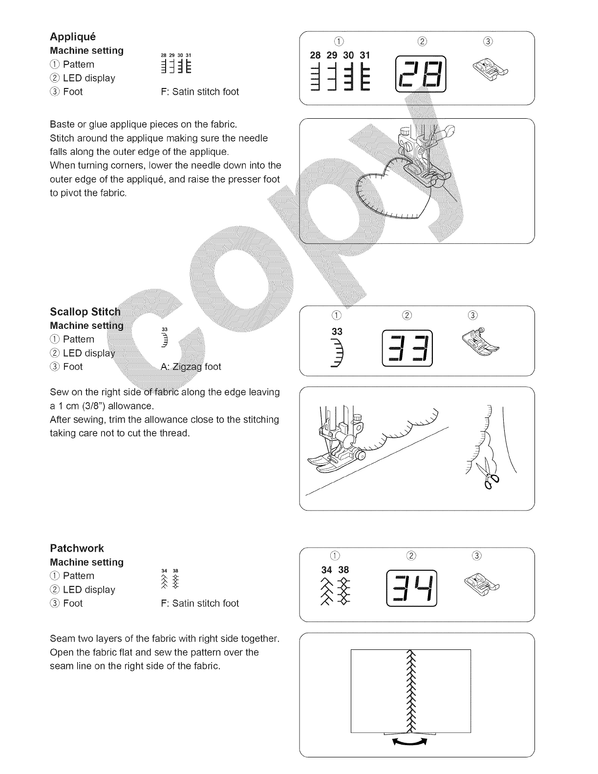 with_ ir opening blocked. Keep ventilation openings of this sewing machine and foot