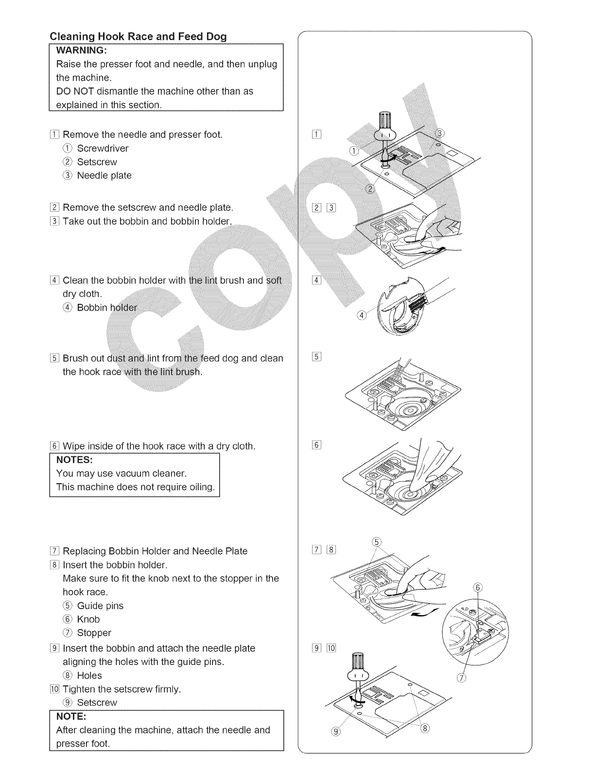 11. Always use the proper needle plate. The wrong plate can cause the needle to break.
