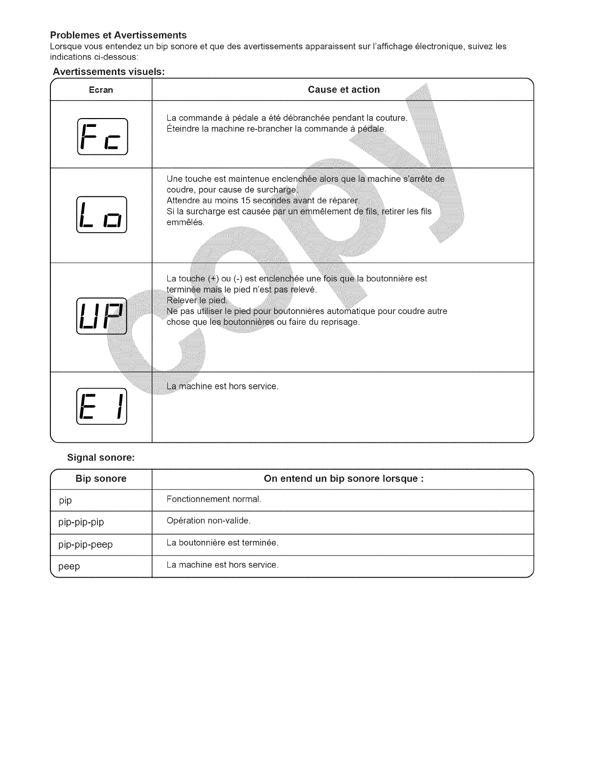 ................ Le fil de raiguille ou celui de la canette n'est pas enfile correctement.
