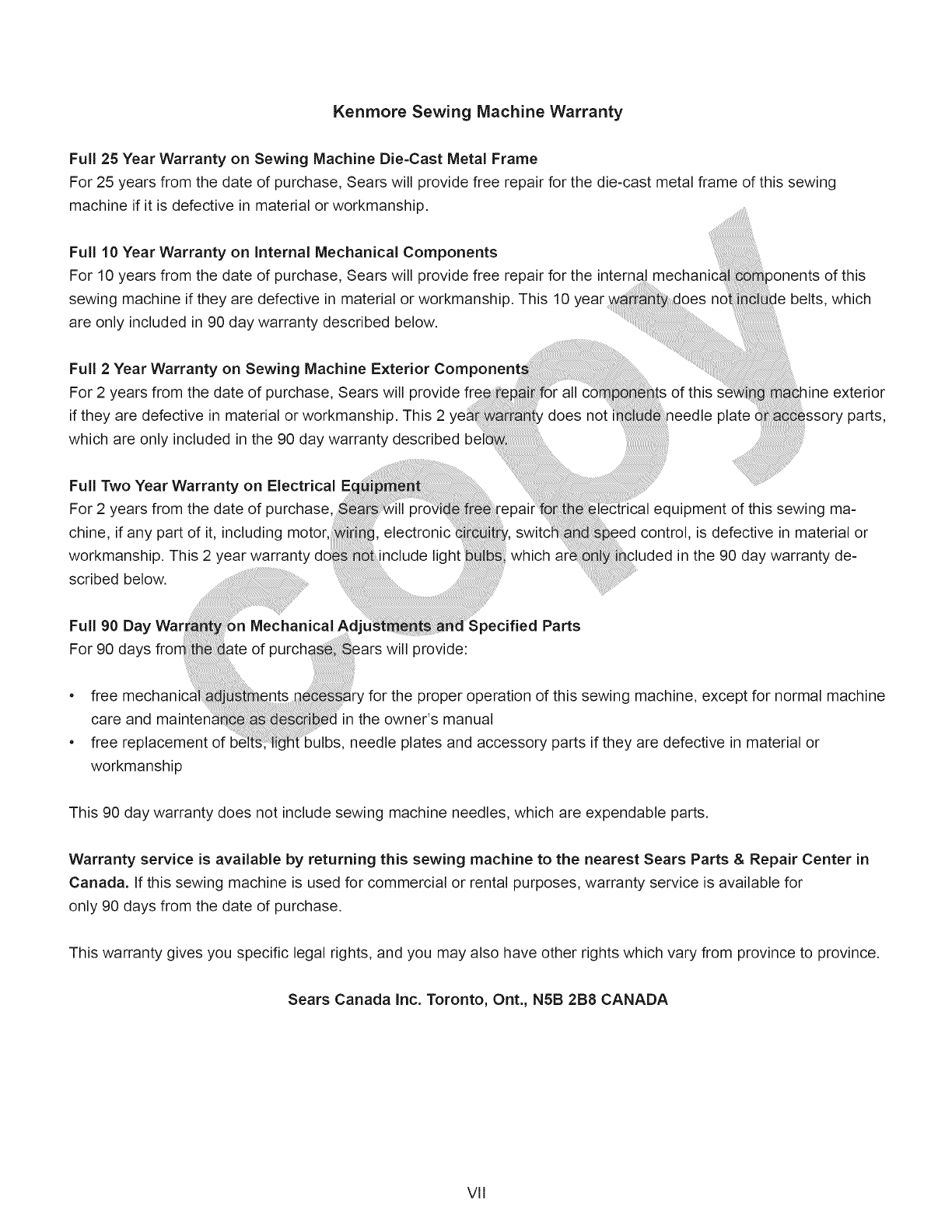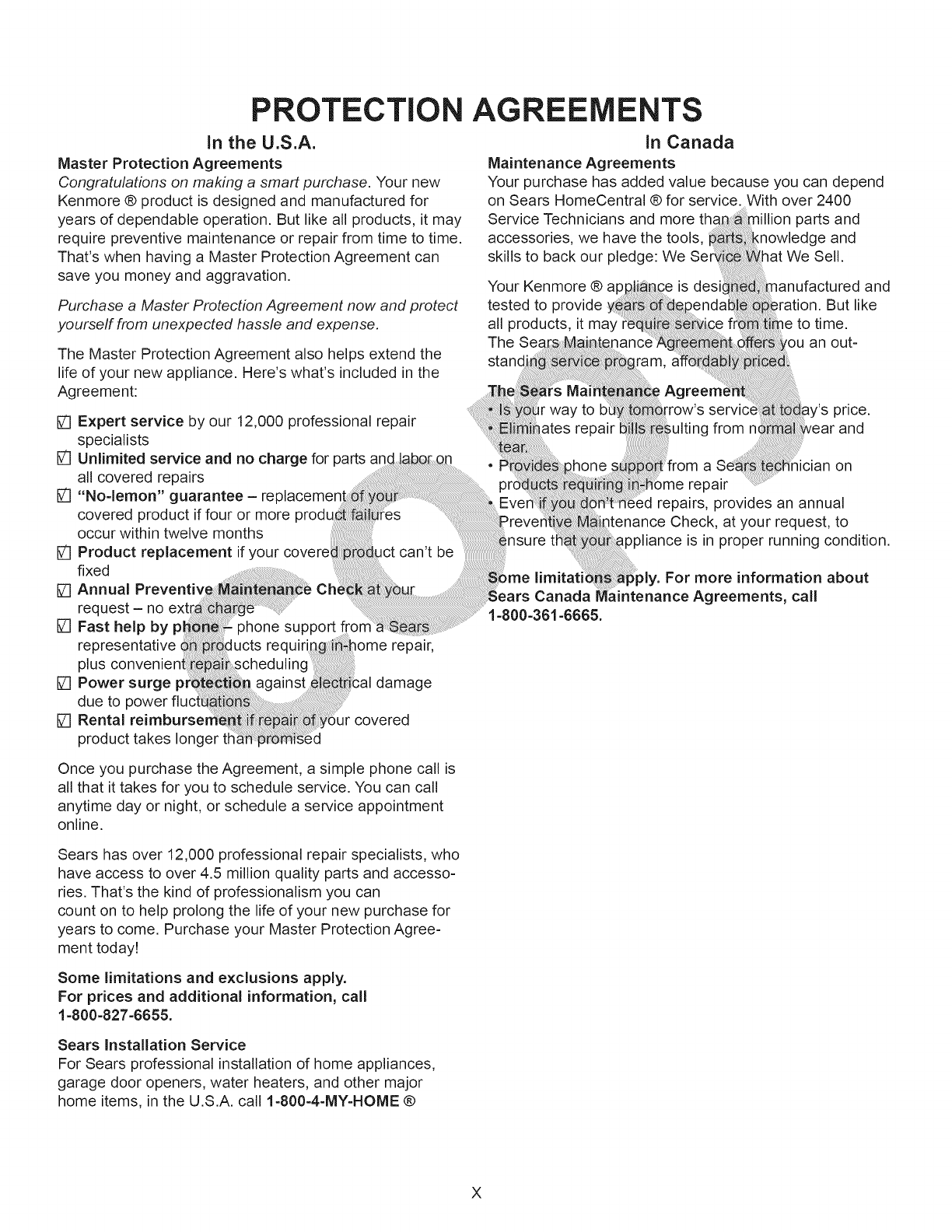 or maintenance agreement (Canada) on a product serviced by Sears: _