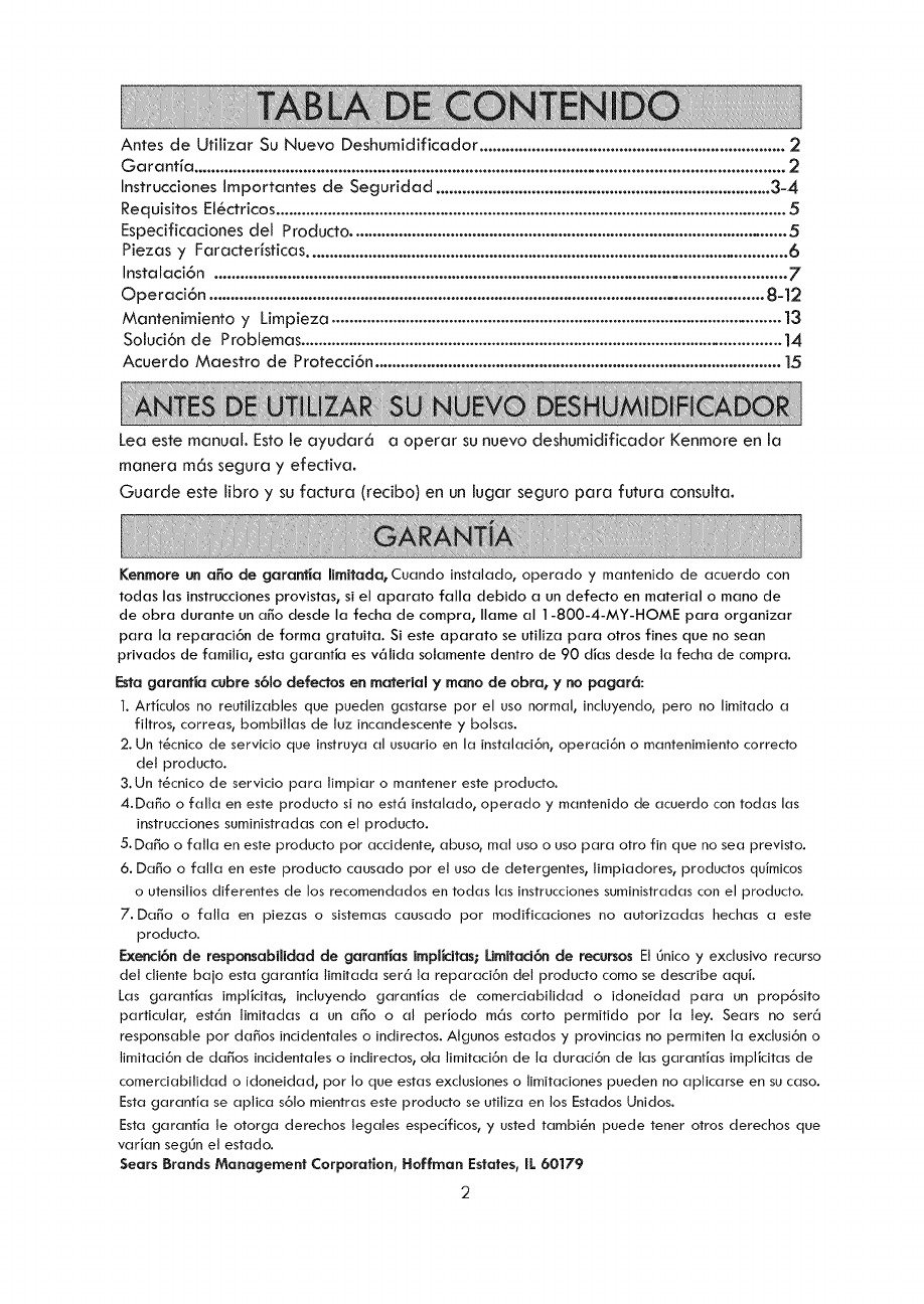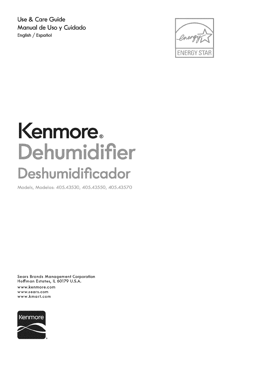 Kenmore 40543530 User Manual DEHUMIDIFIER Manuals And Guides 1310350L