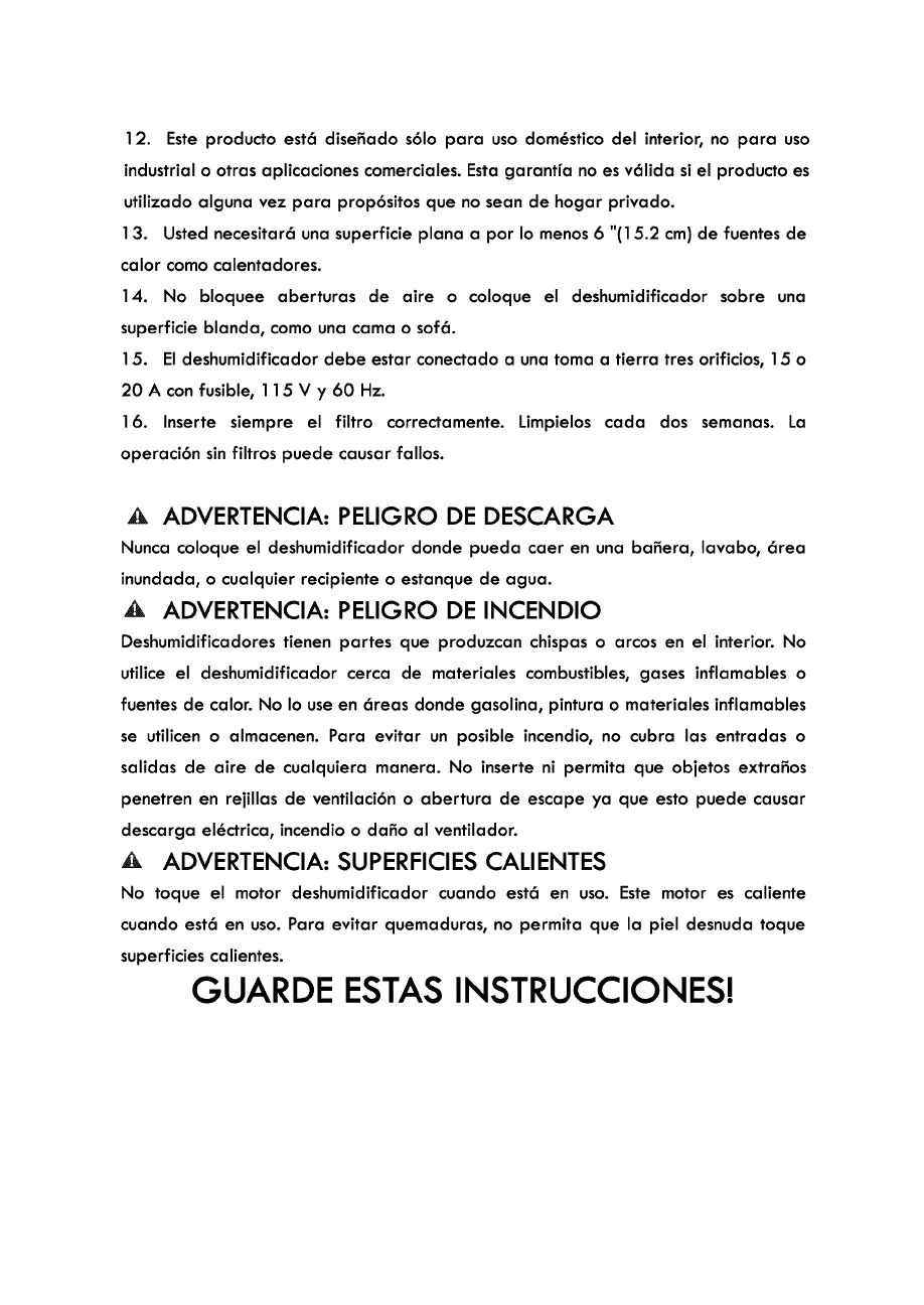 12. This product is intended for indoor residential use only, not for industrial or