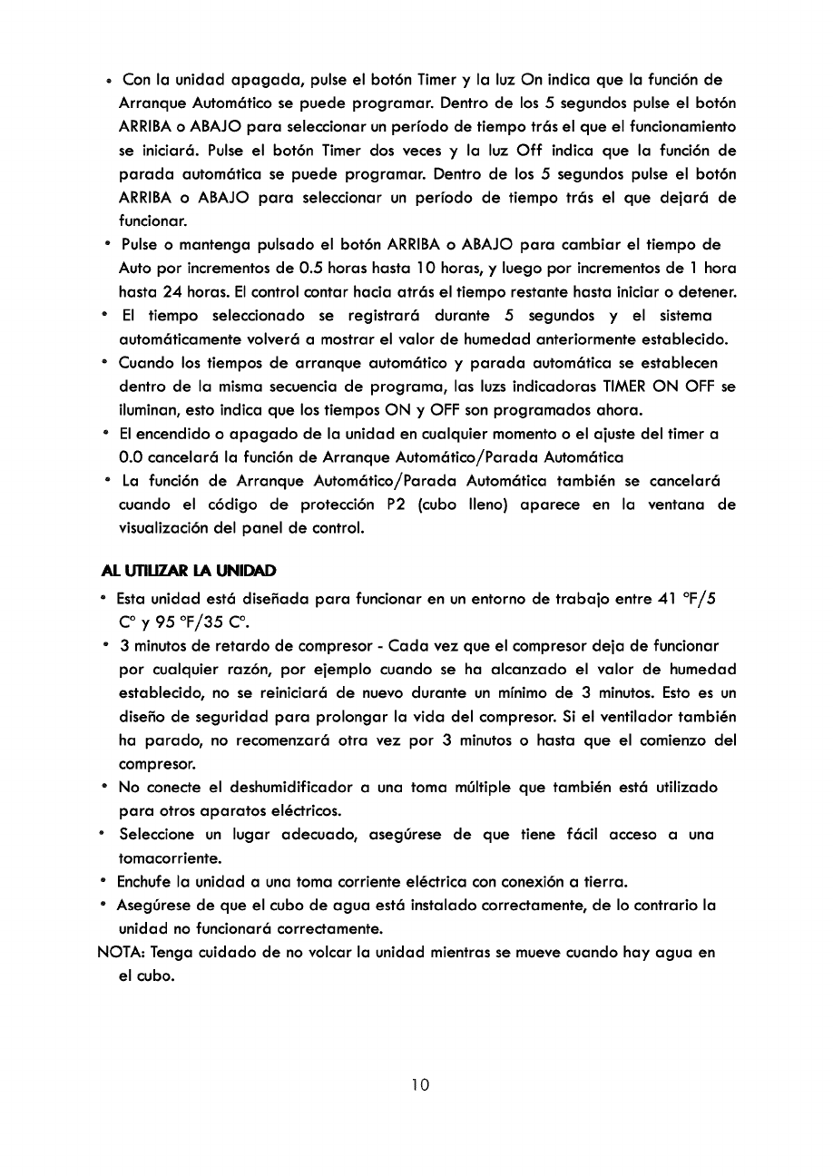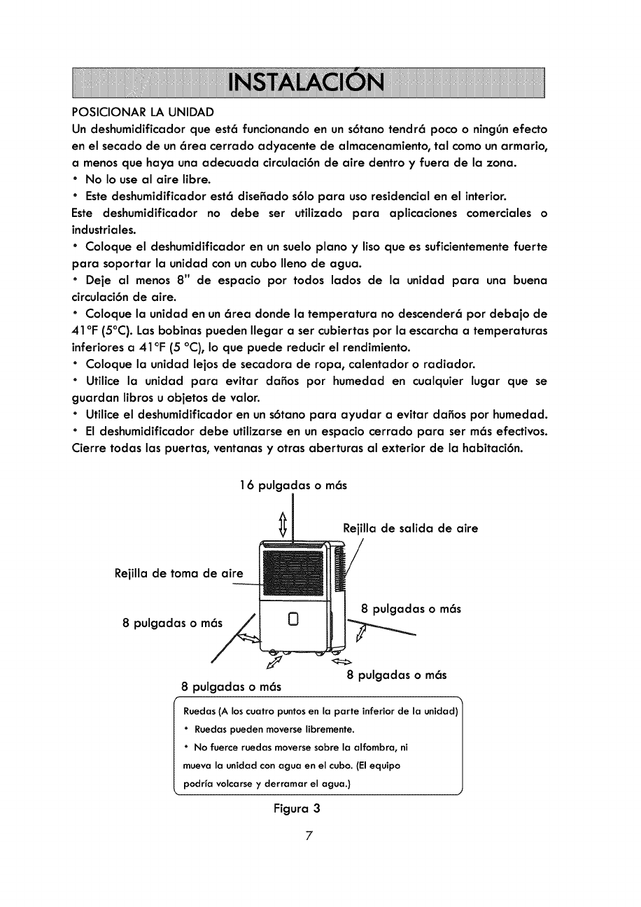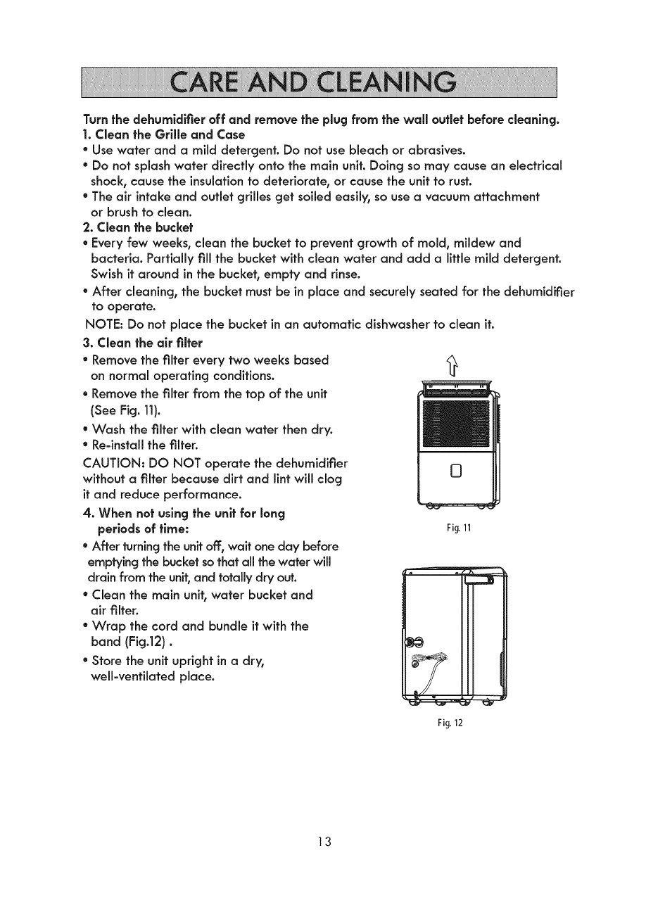 7. Always unplug dehumidifier when not in use.