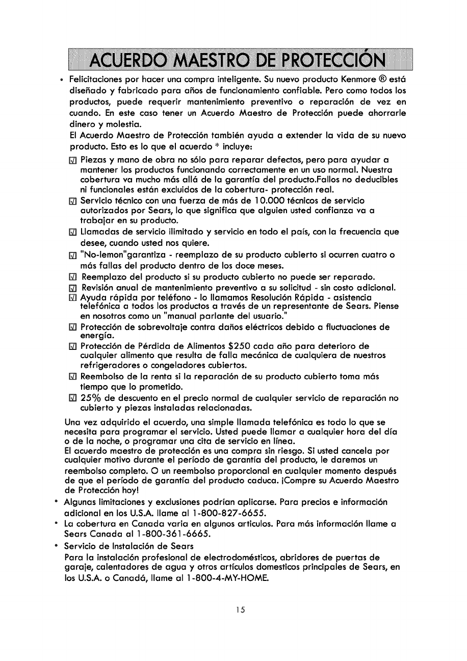 El acuerdo maestro de protecci6n es una compra sin riesgo. Si usted cancela por