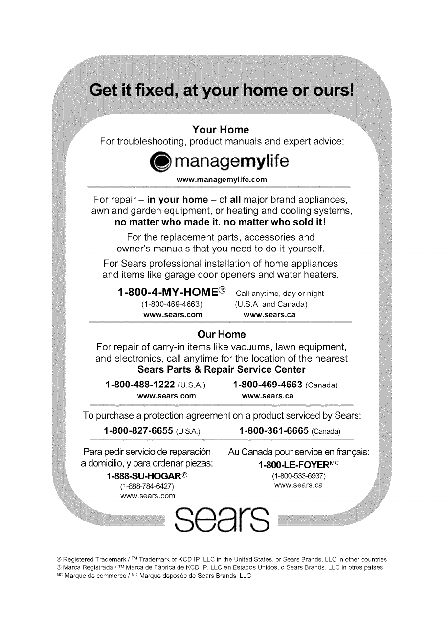 ® Registered Trademark /TM Trademark of KCD IP, LLC in the United States, or Sears Brands, LLC in other countries