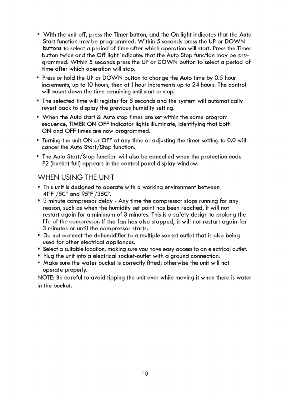 While using your dehumidifier, you should follow the IMPORTANT SAFETY