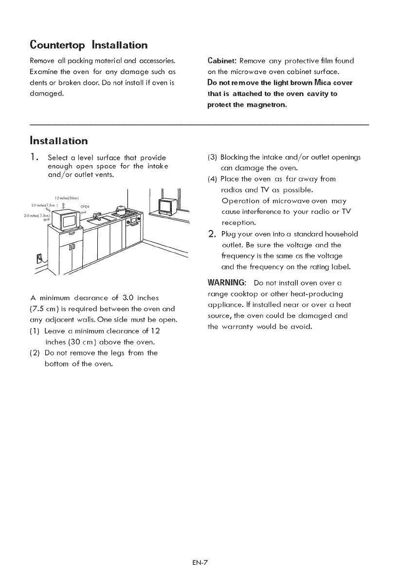 (b) Do not place any object between the oven front face and the door or allow soil or