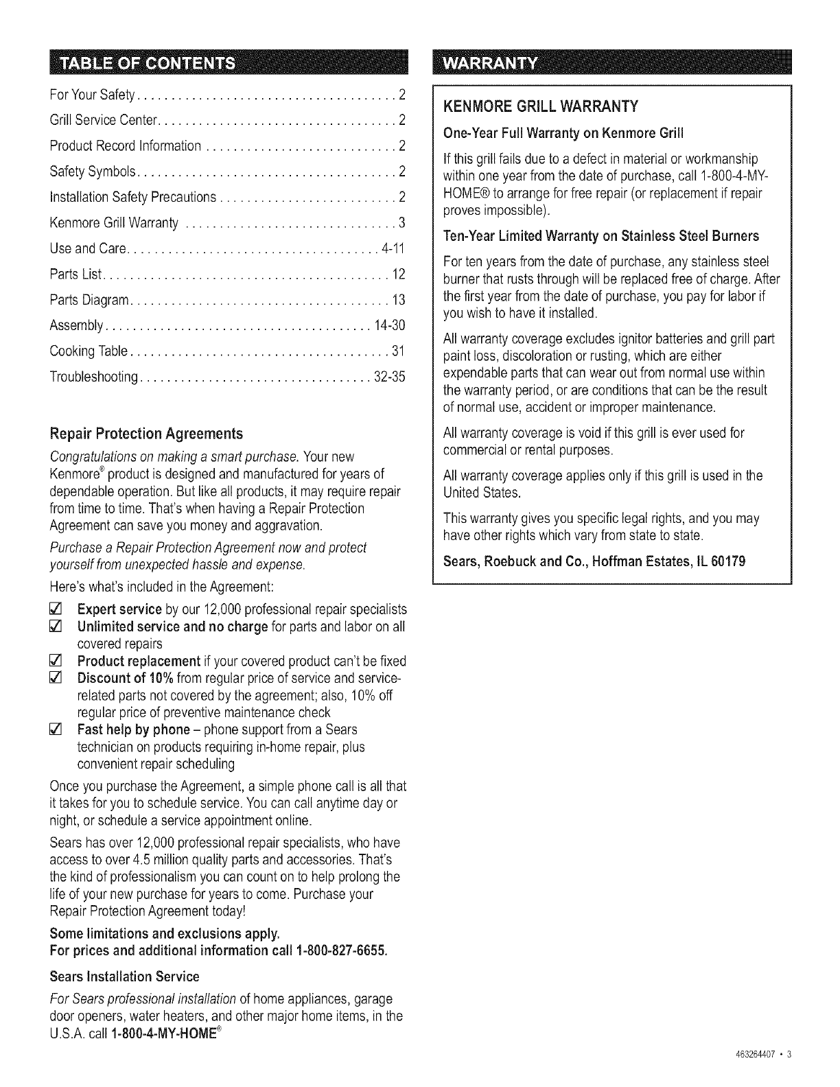Kenmore 41516237 User Manual GAS GRILL Manuals And Guides L0703044