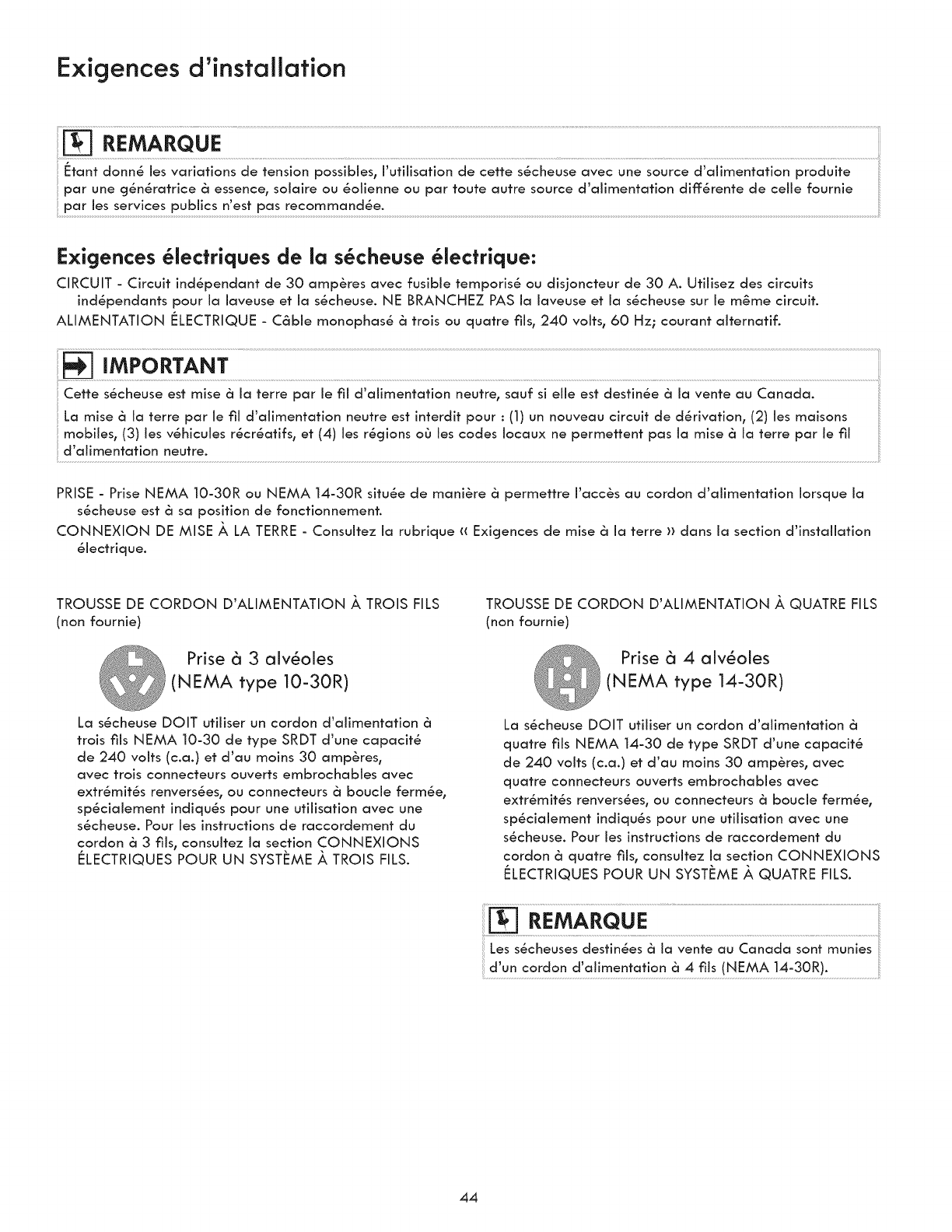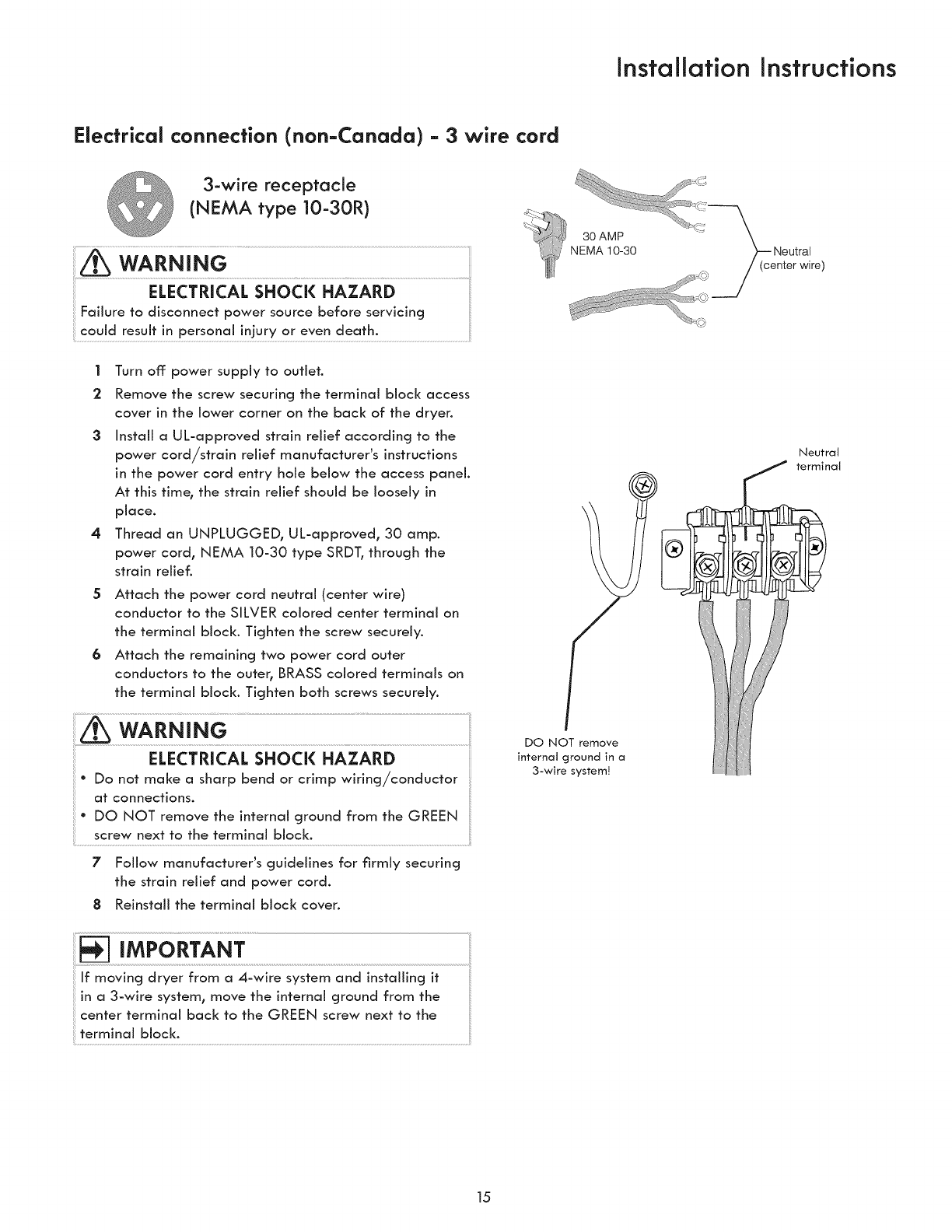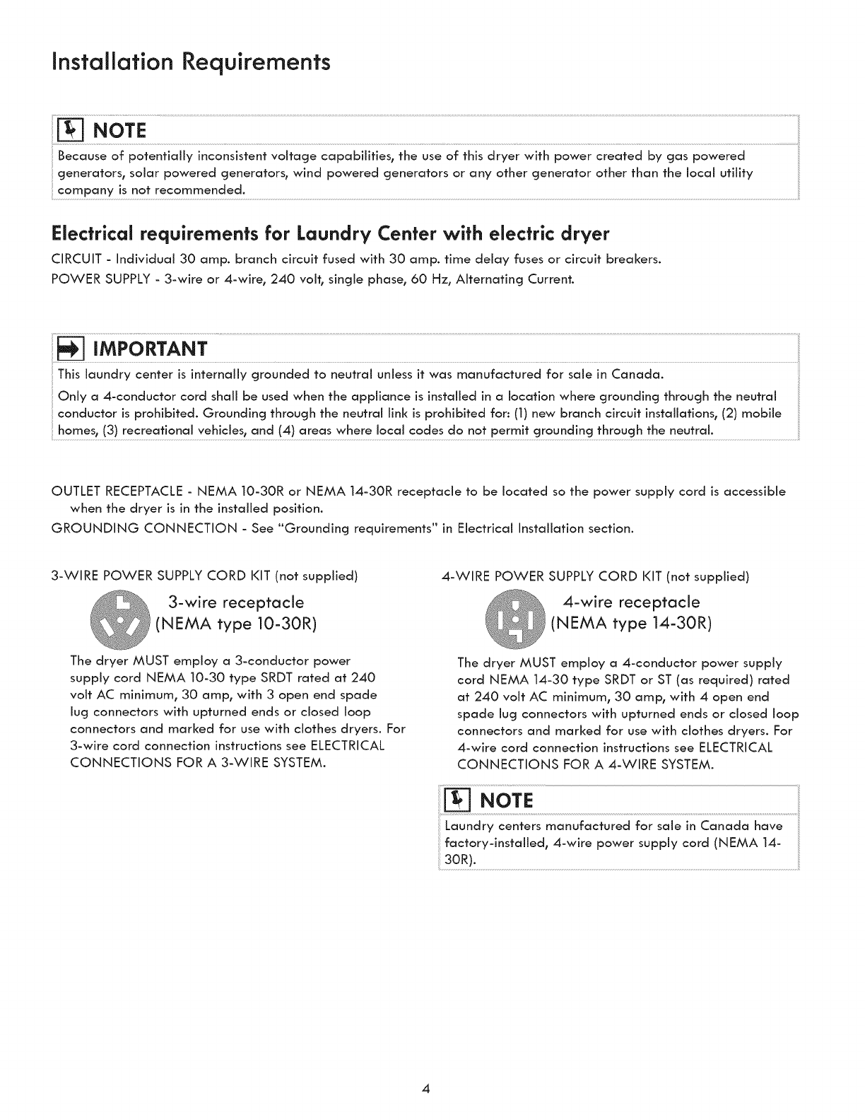 °3-wire or 4-wire 240 volt cord kit