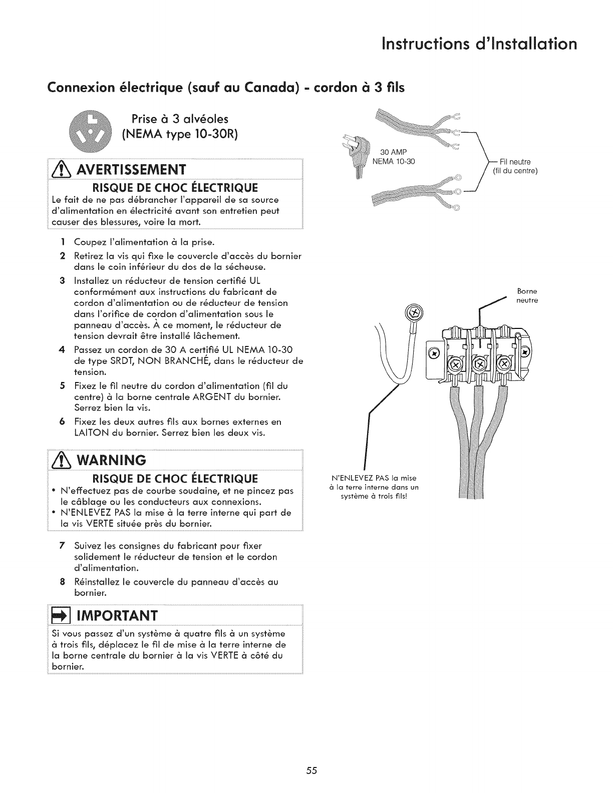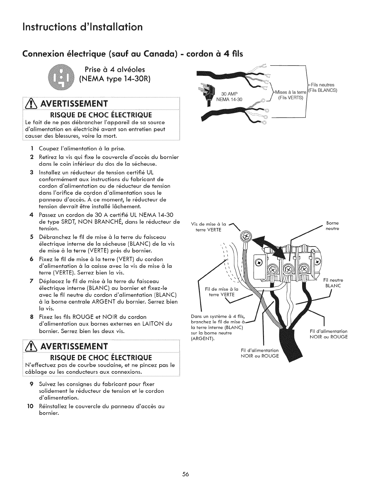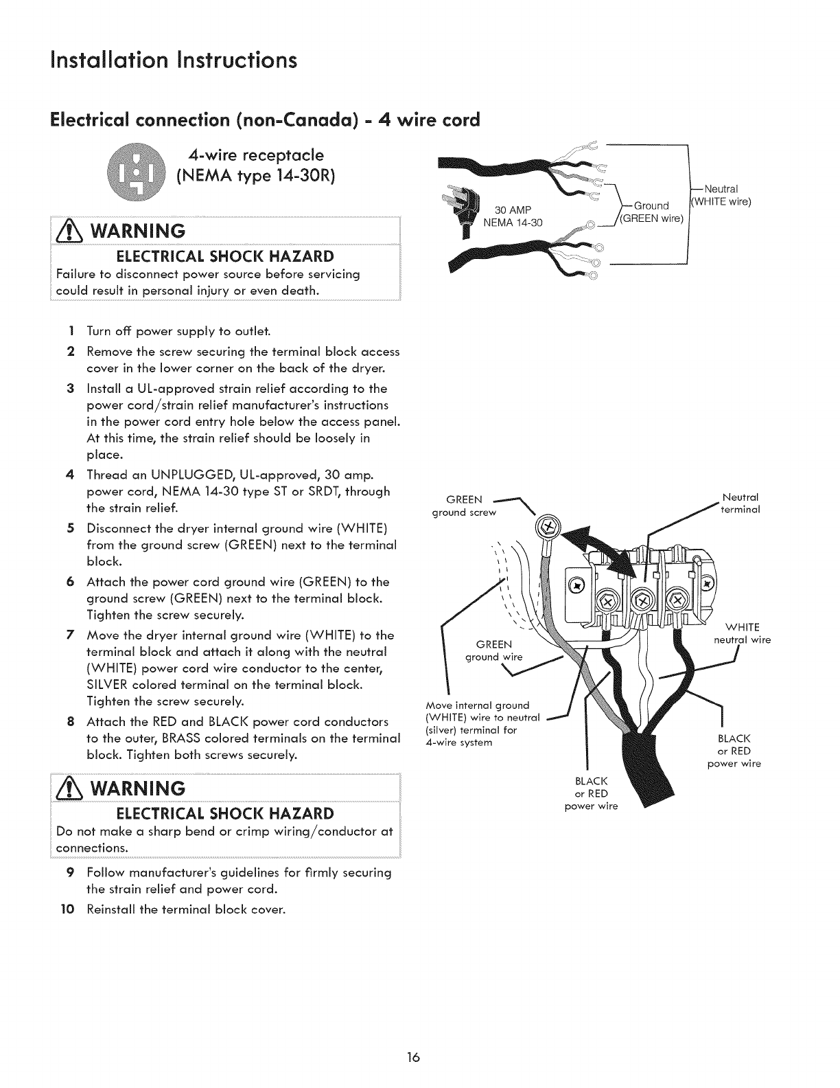 °3-wire or 4-wire 240 volt cord kit