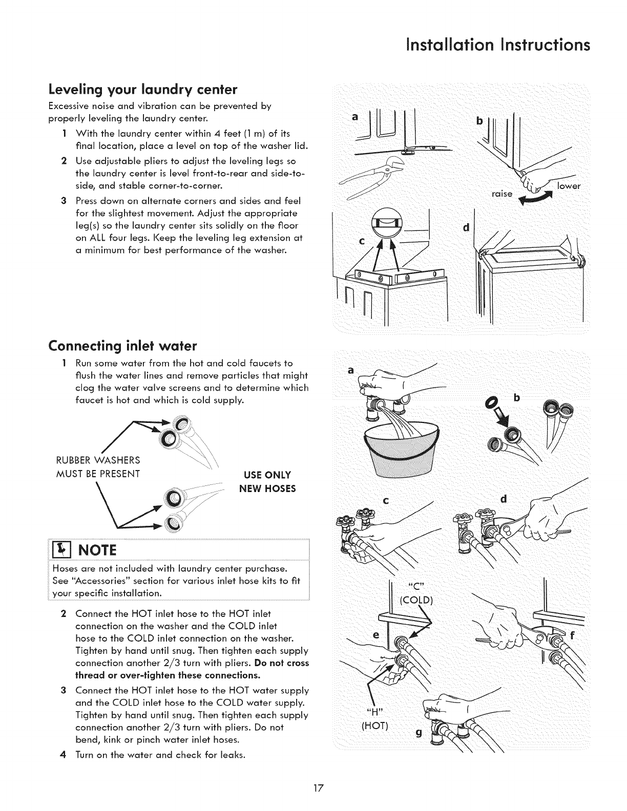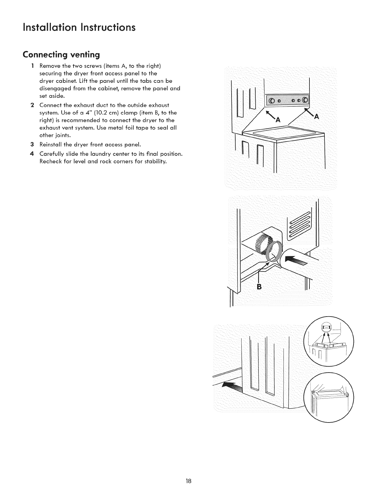 [] Laundry Center is level, side-to-side and front-to-back