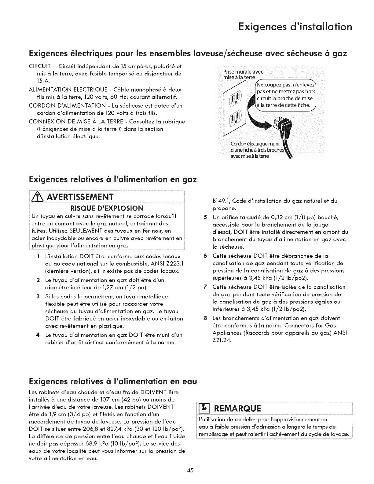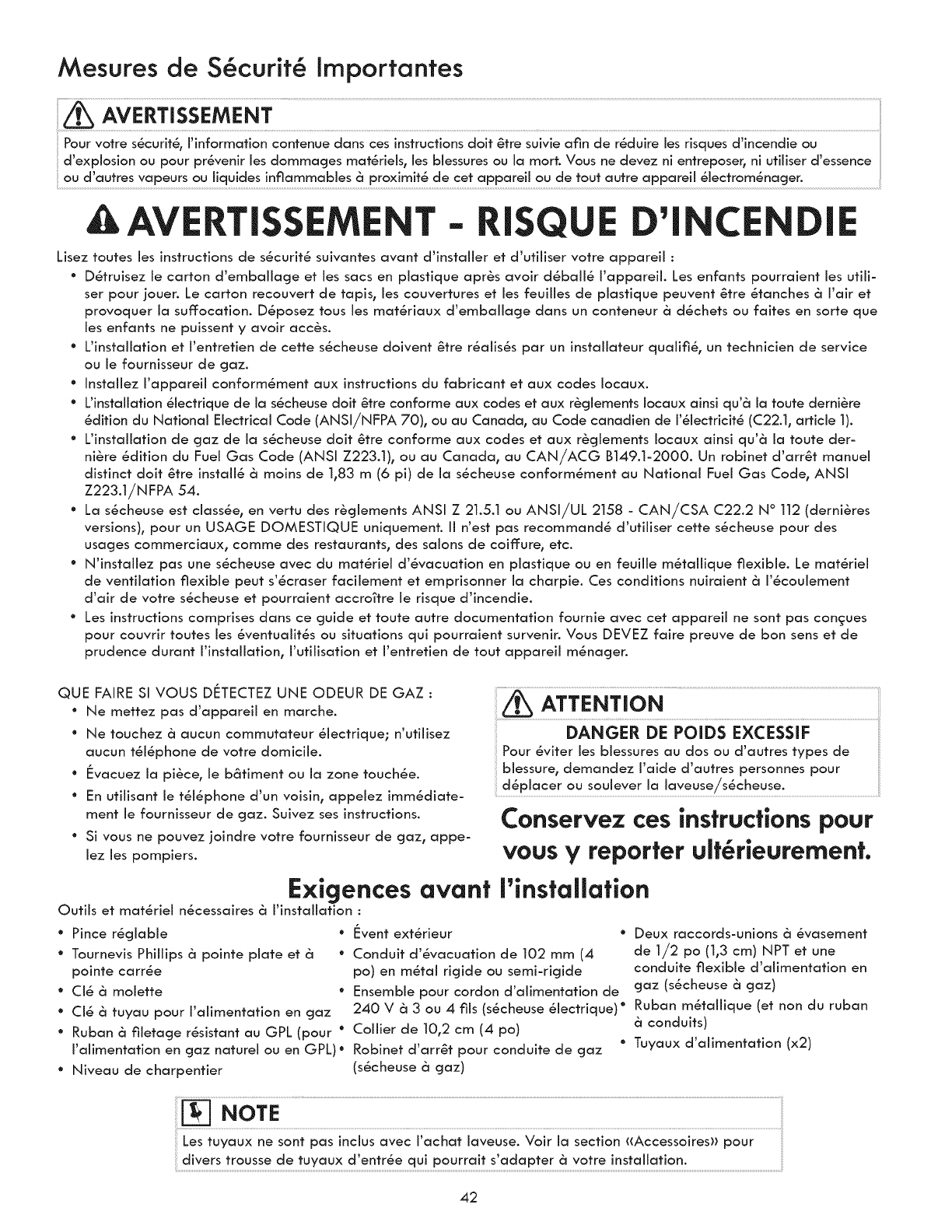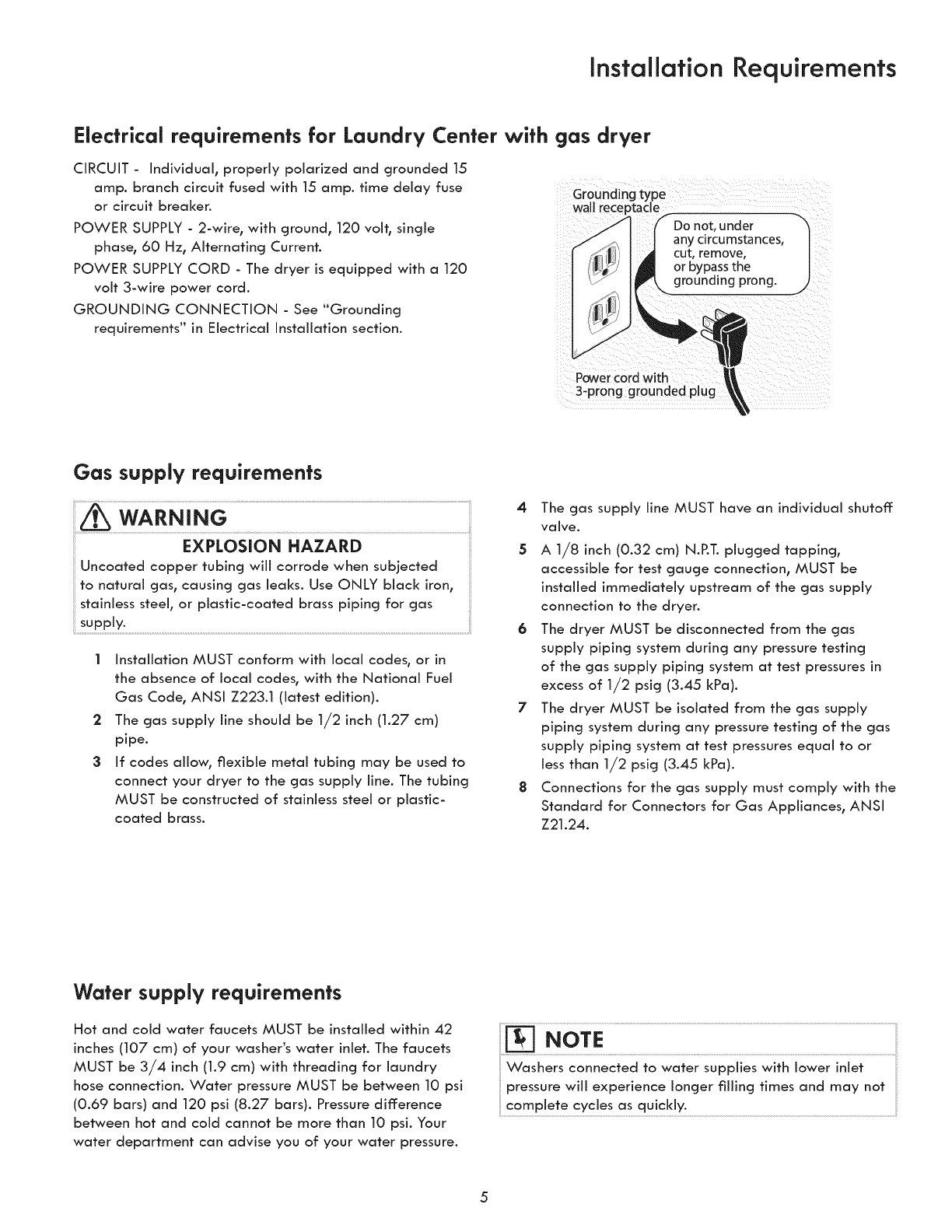 °The gas service to the dryer must conform with local codes and ordinances and the latest edition of the National Fuel