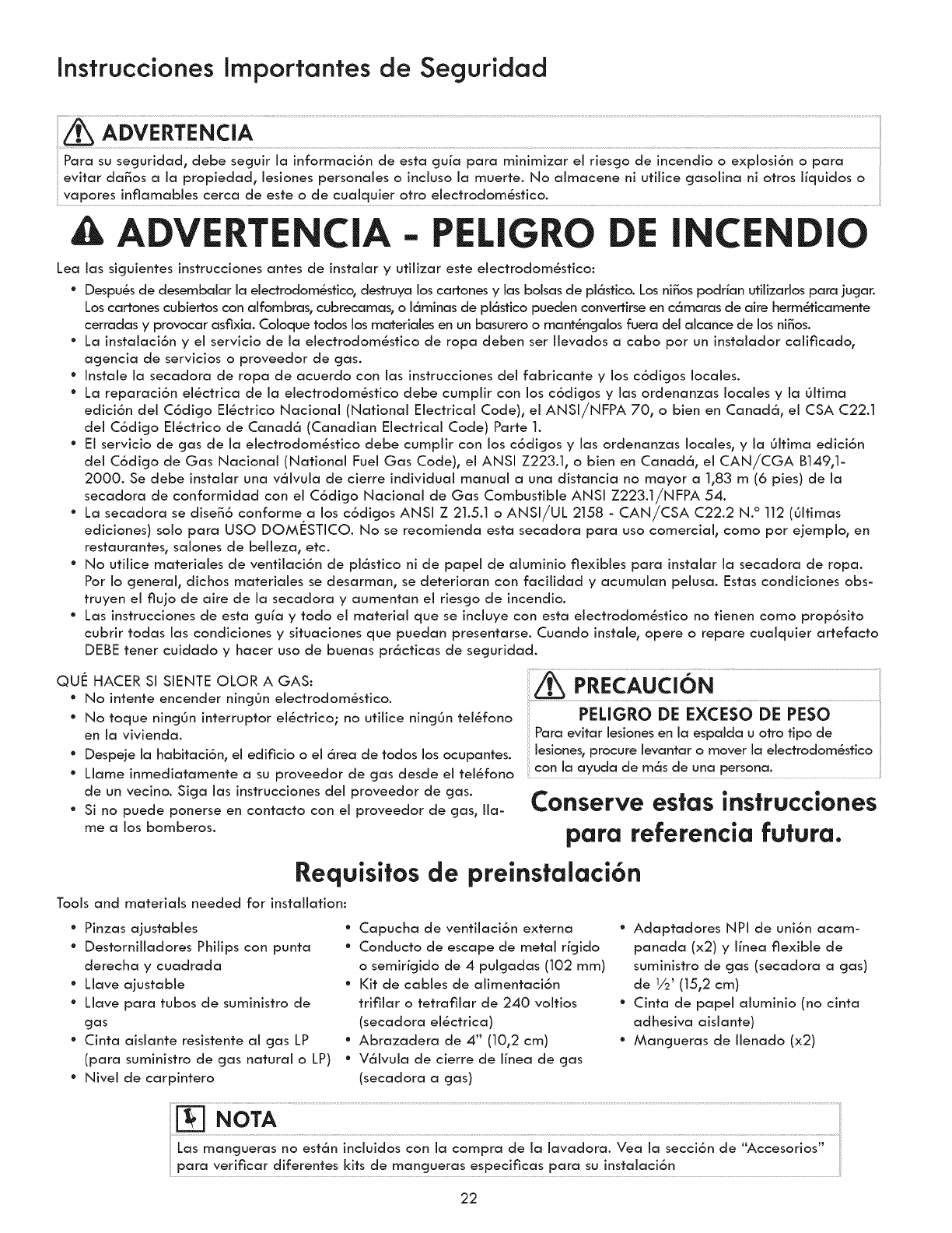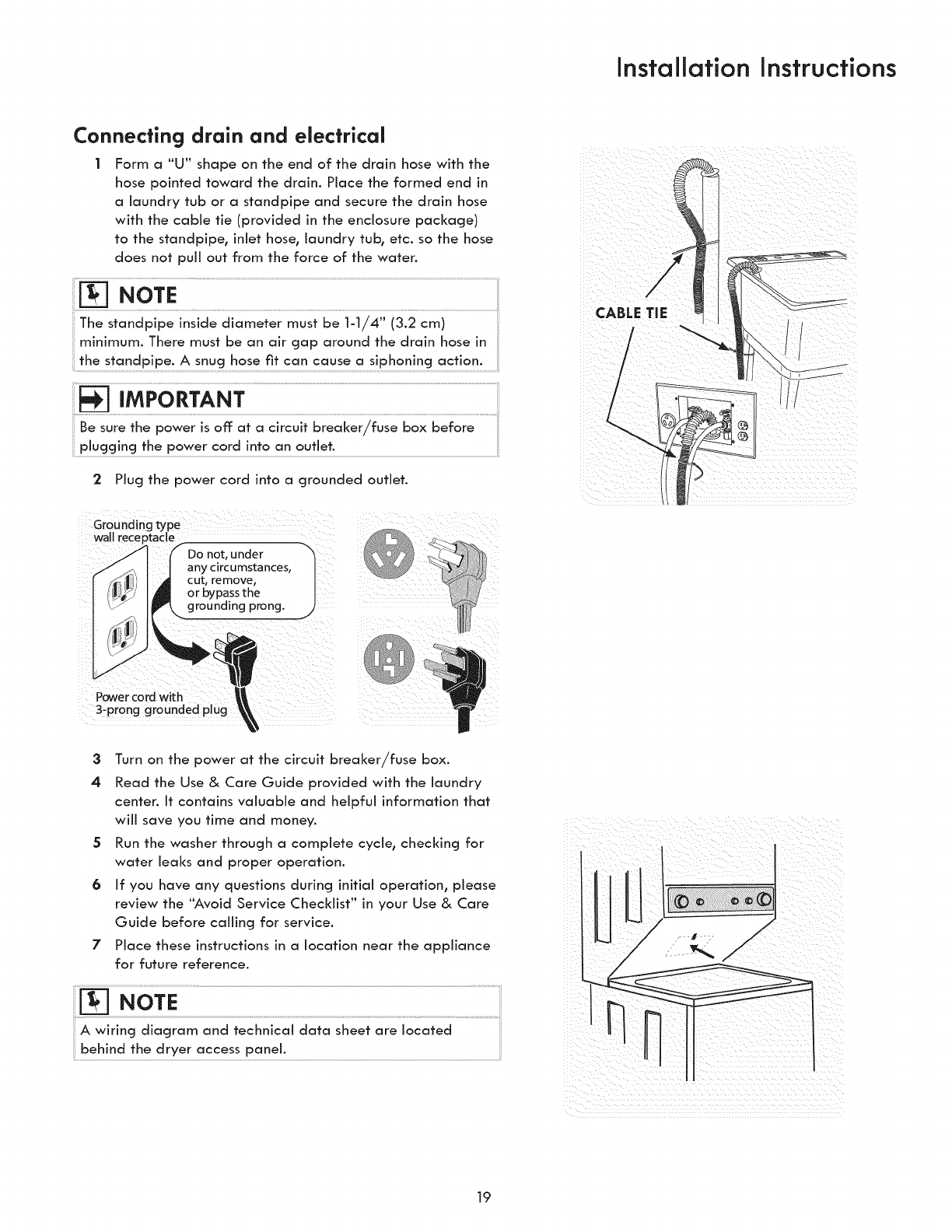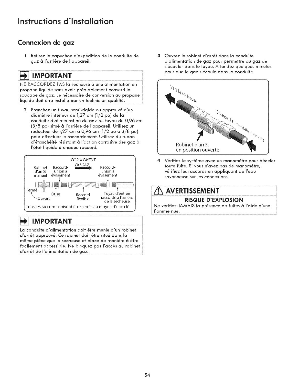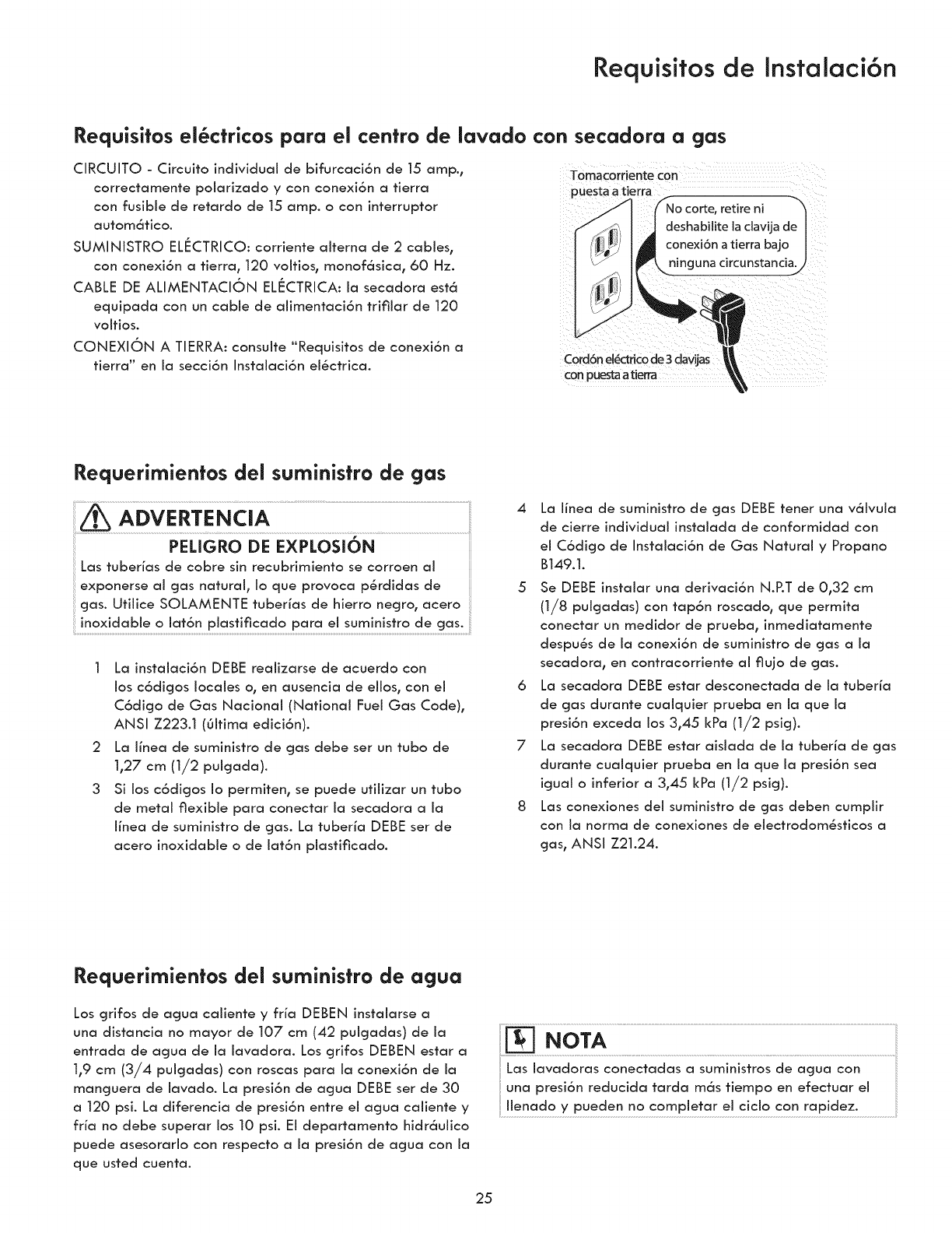 °The gas service to the dryer must conform with local codes and ordinances and the latest edition of the National Fuel