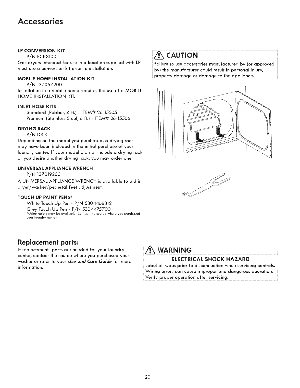 For the replacement parts, accessories and