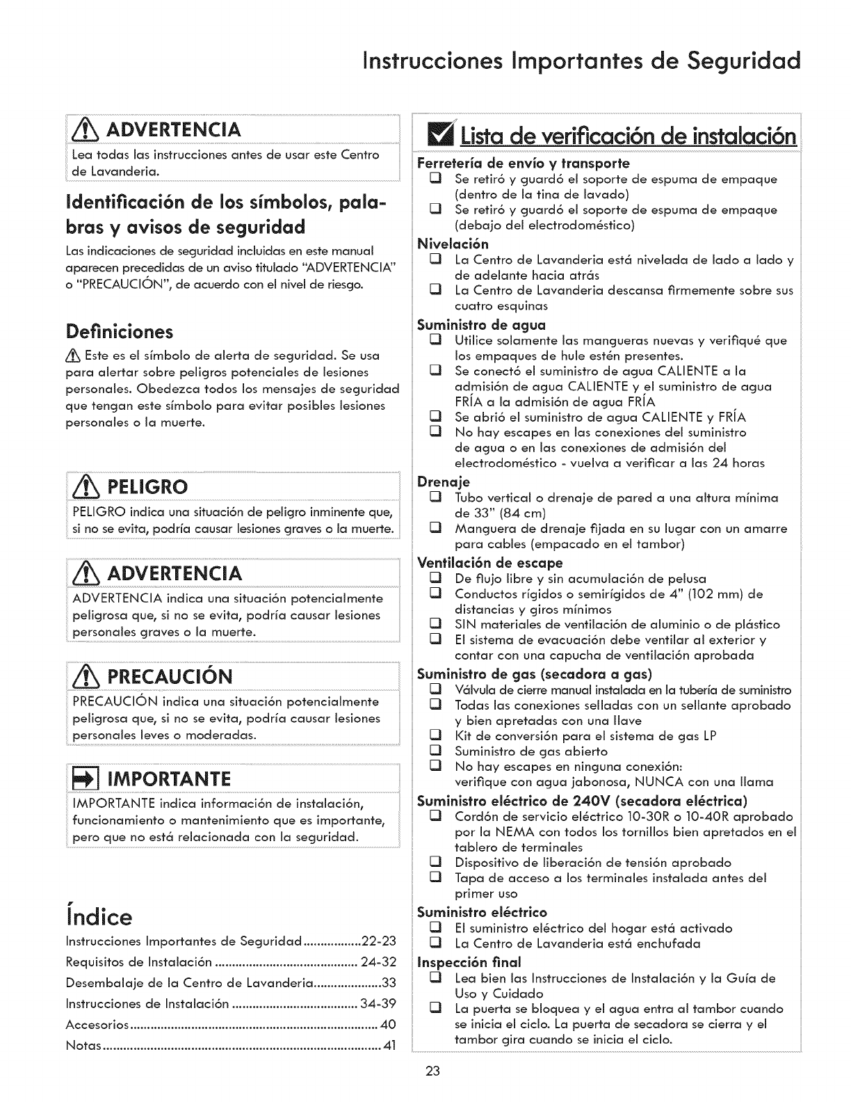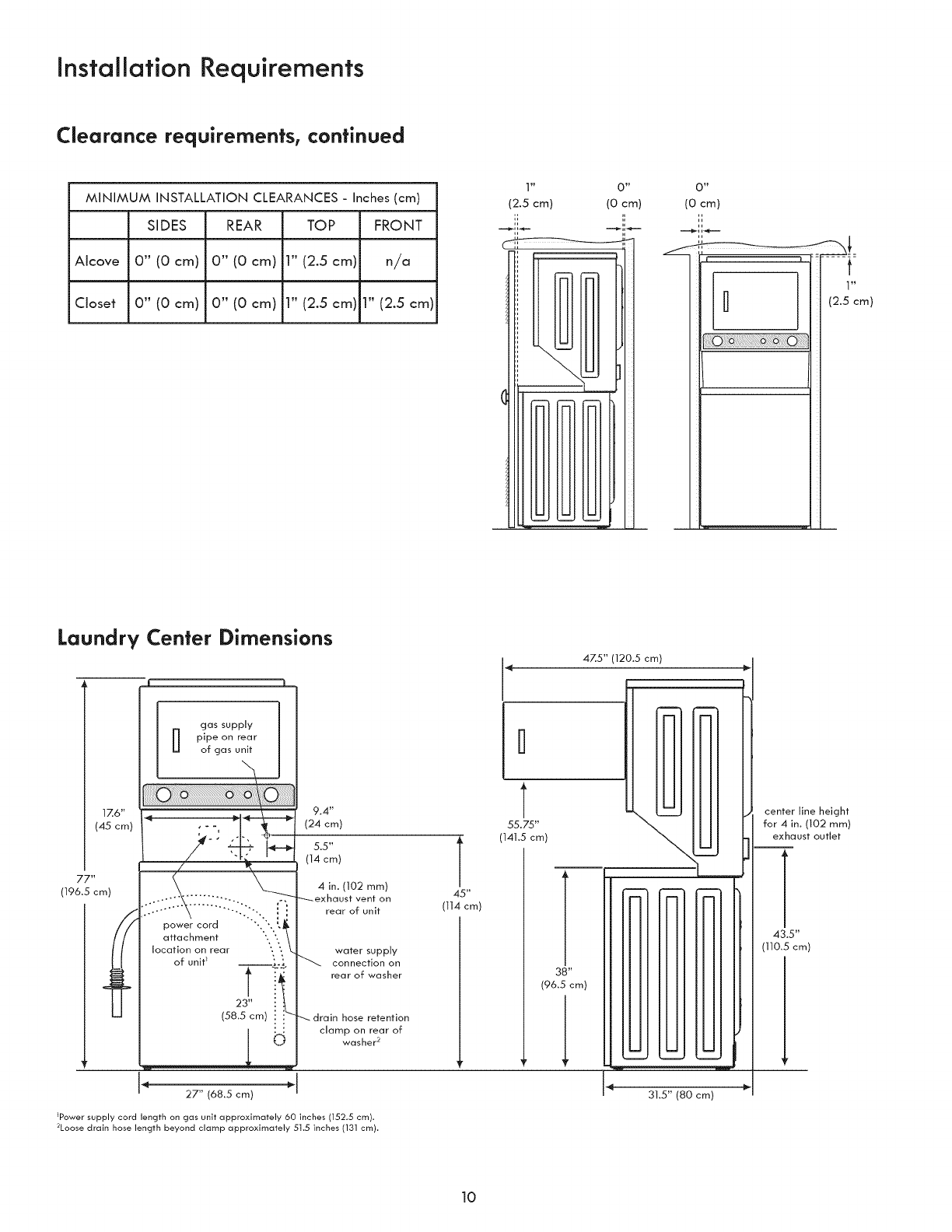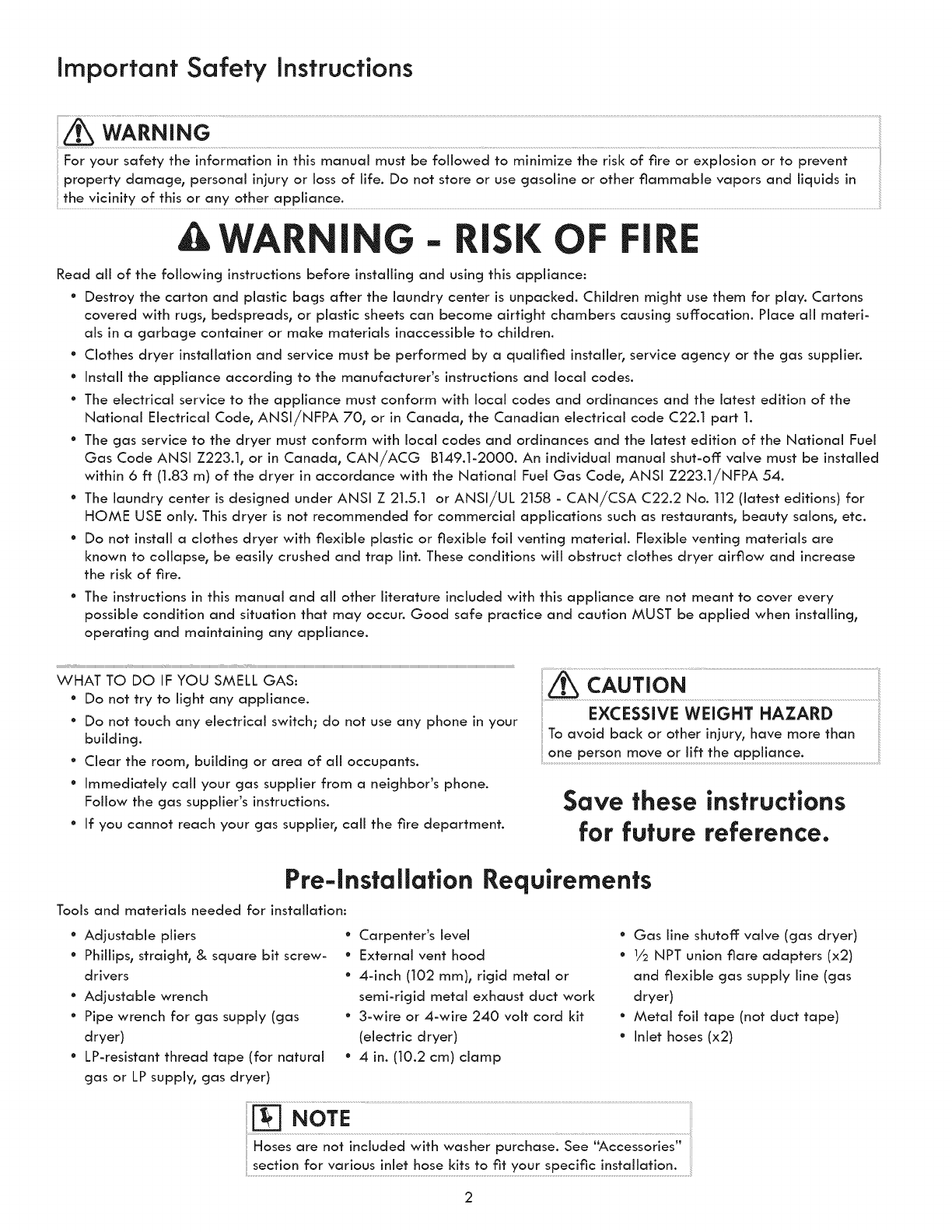 °The laundry center is designed under ANSI Z 21.5.1 or ANSIiUL 2158 - CAN/CSA C22.2 No. 112 (latest editions) for