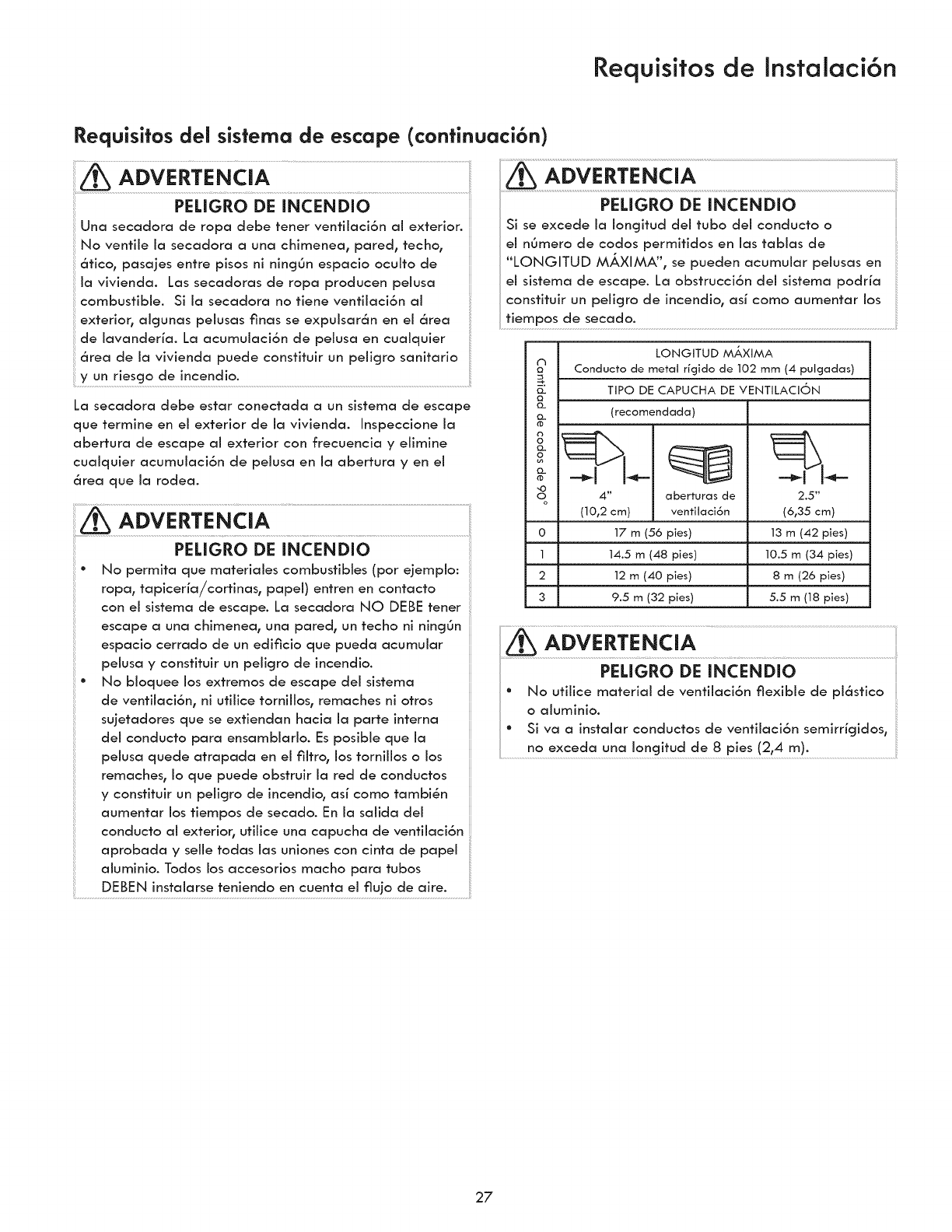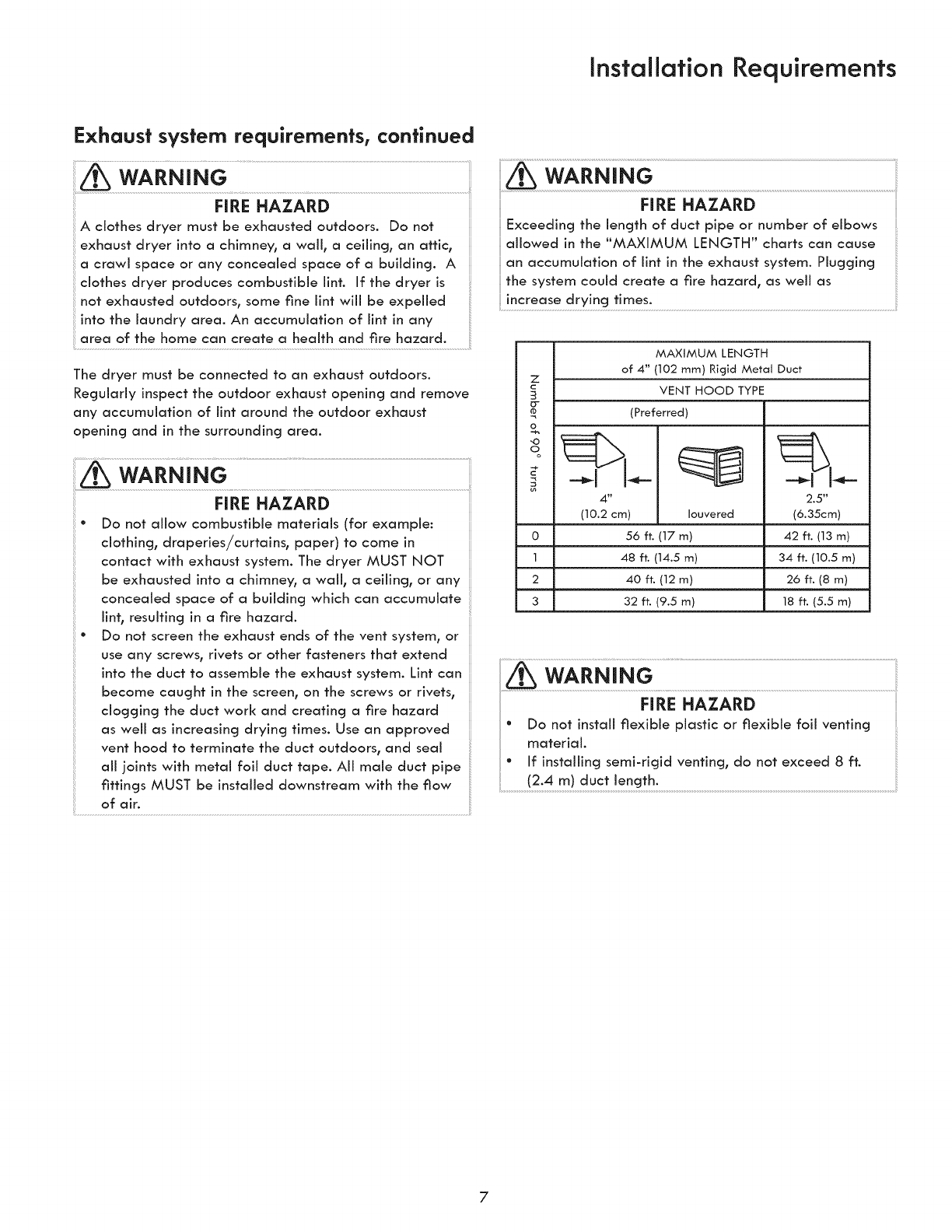 known to collapse, be easily crushed and trap lint. These conditions will obstruct clothes dryer airflow and increase