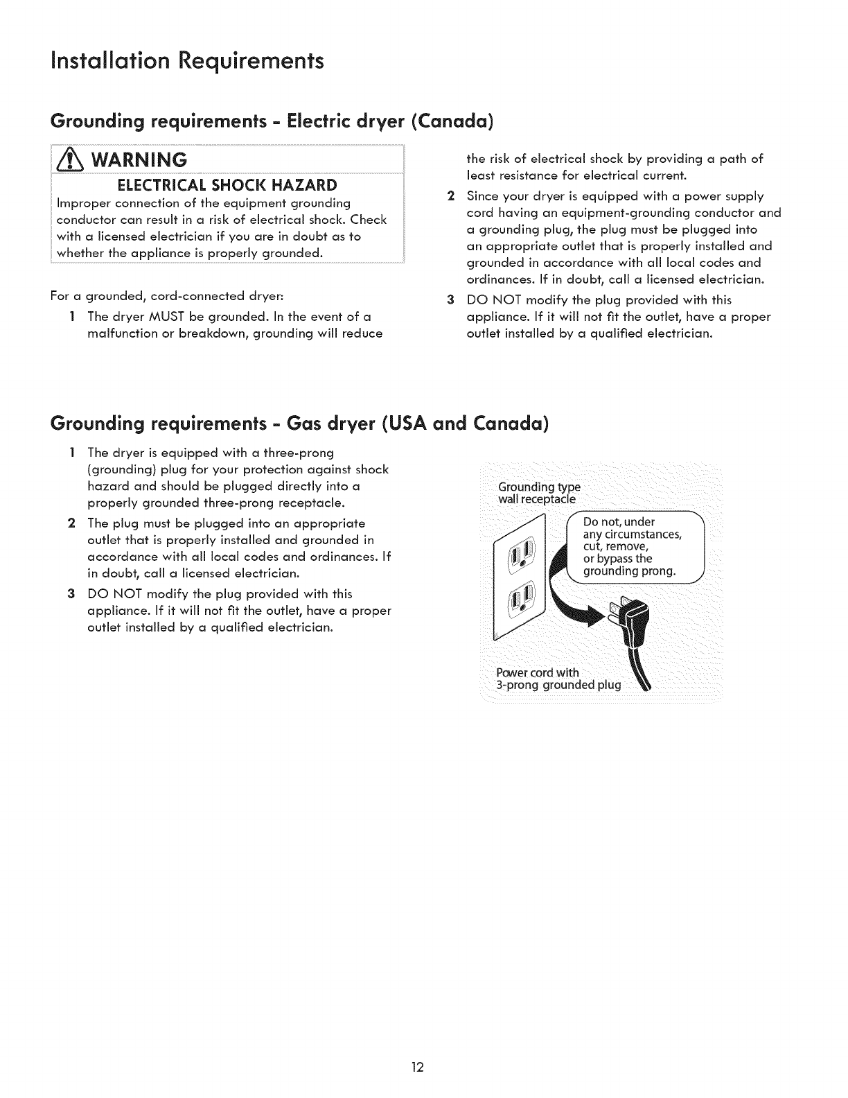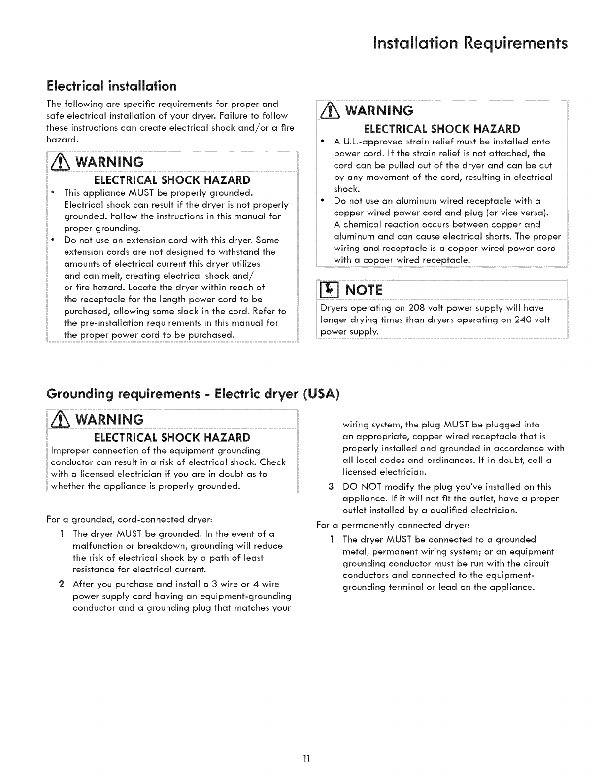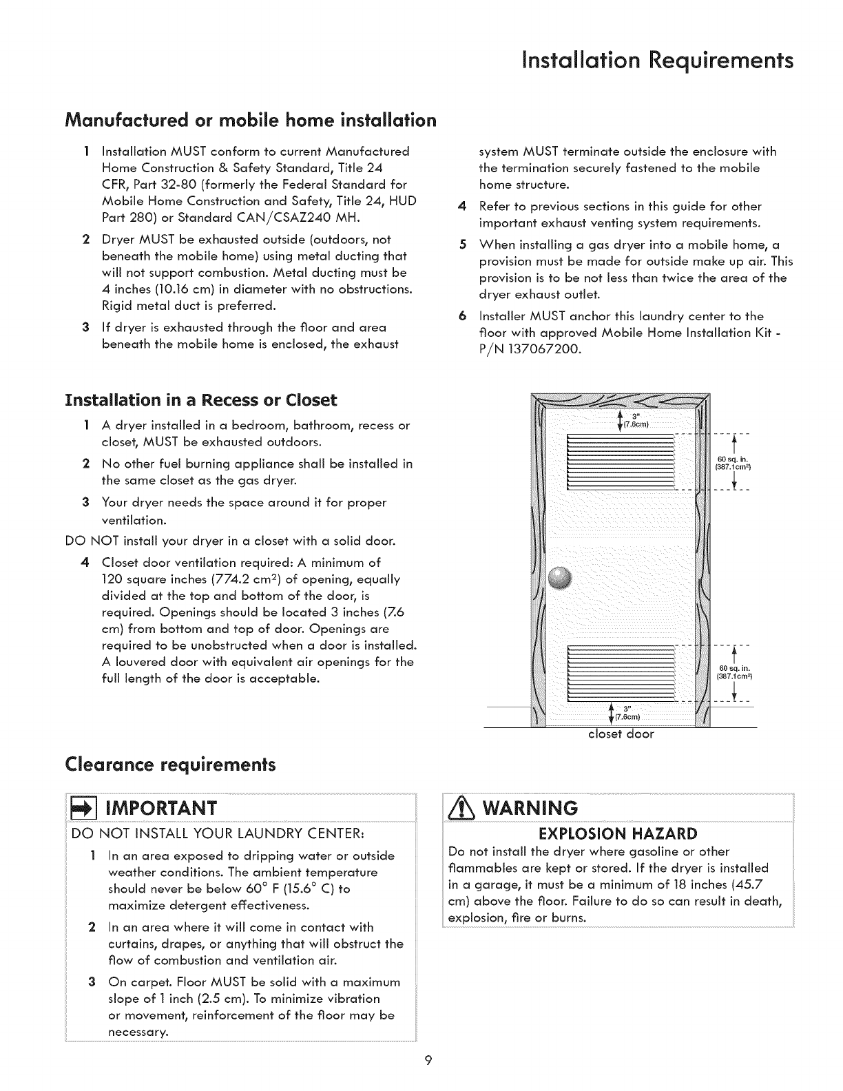 °Clothes dryer installation and service must be performed by a qualified installer, service agency or the gas supplier.