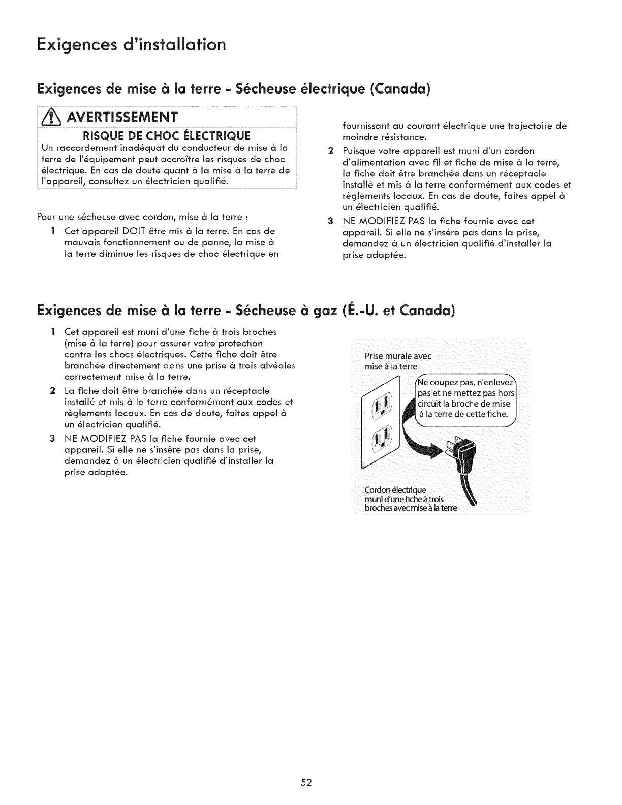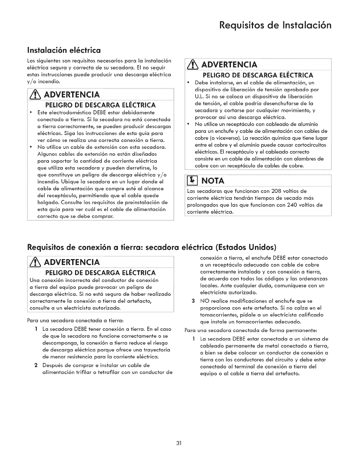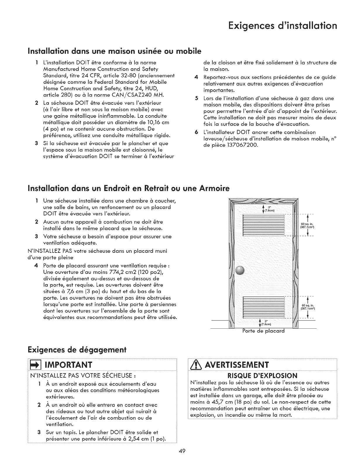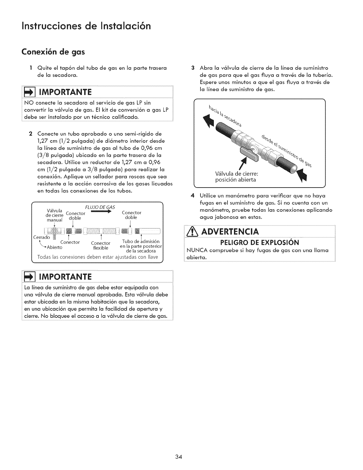 °Clothes dryer installation and service must be performed by a qualified installer, service agency or the gas supplier.