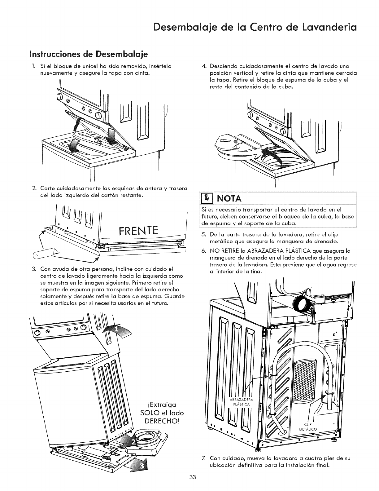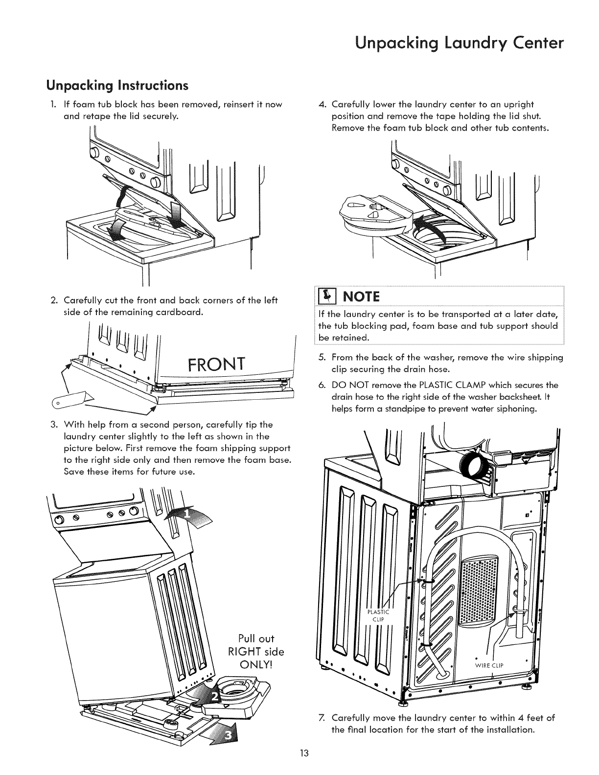 °Destroy the carton and plastic bags after the laundry center is unpacked. Children might use them for play. Cartons