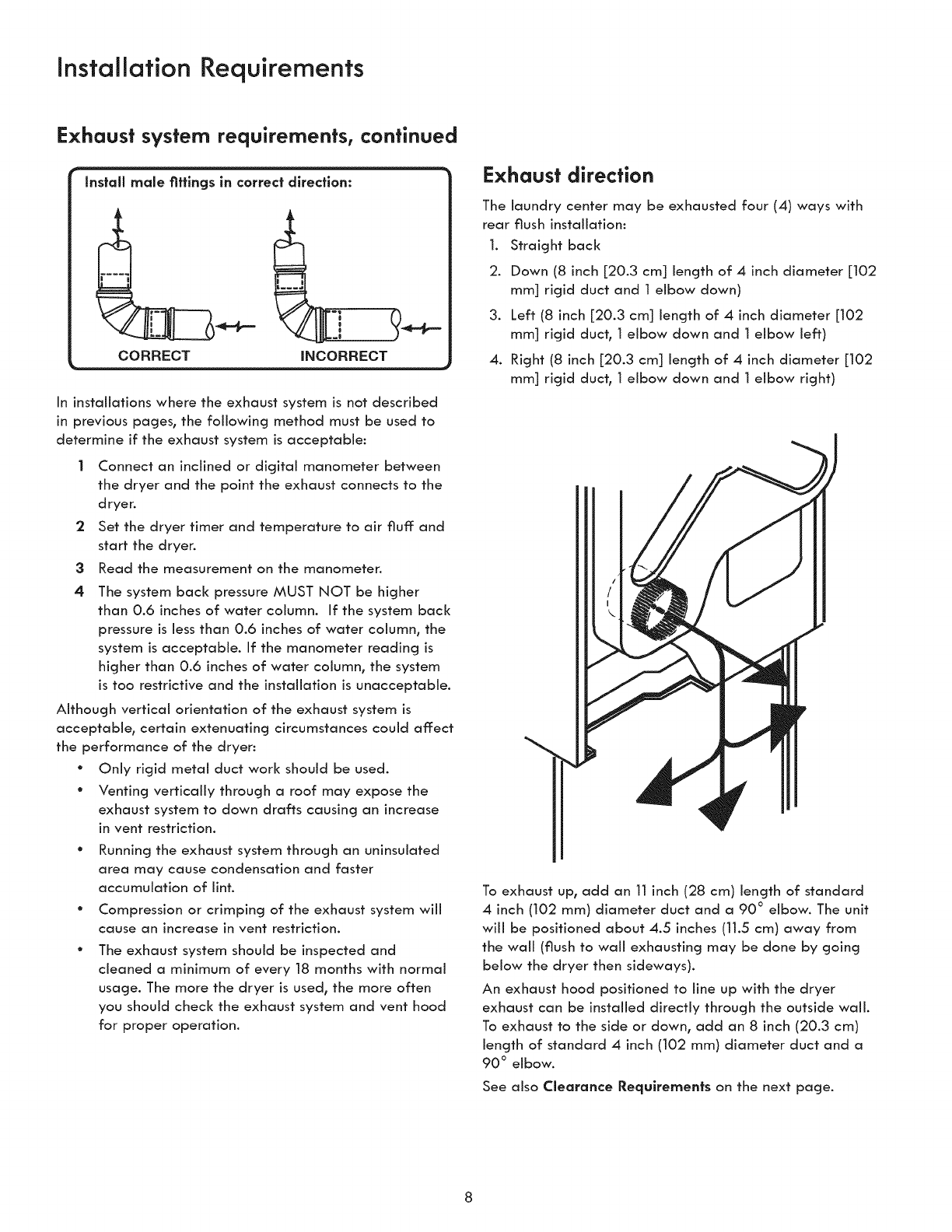 within 6 ft (1.83 m) of the dryer in accordance with the National Fuel Gas Code, ANSI Z223.1/NFPA 54.
