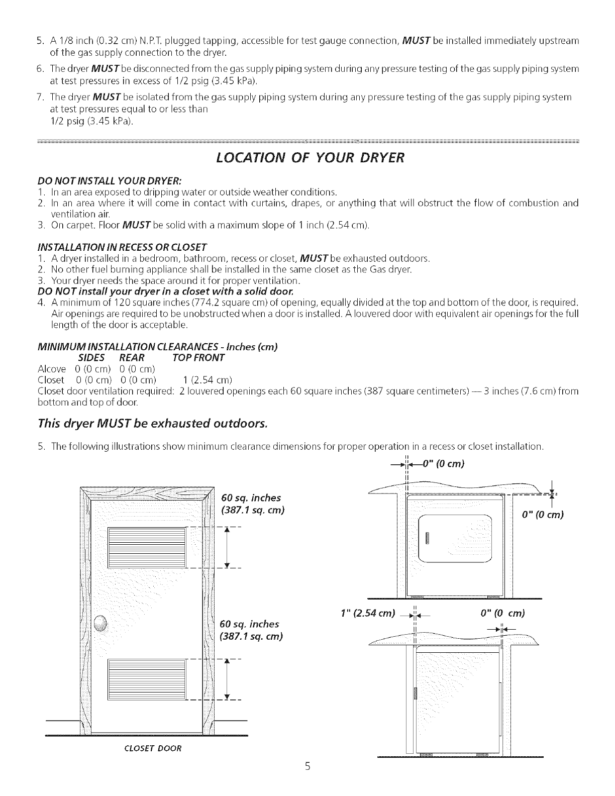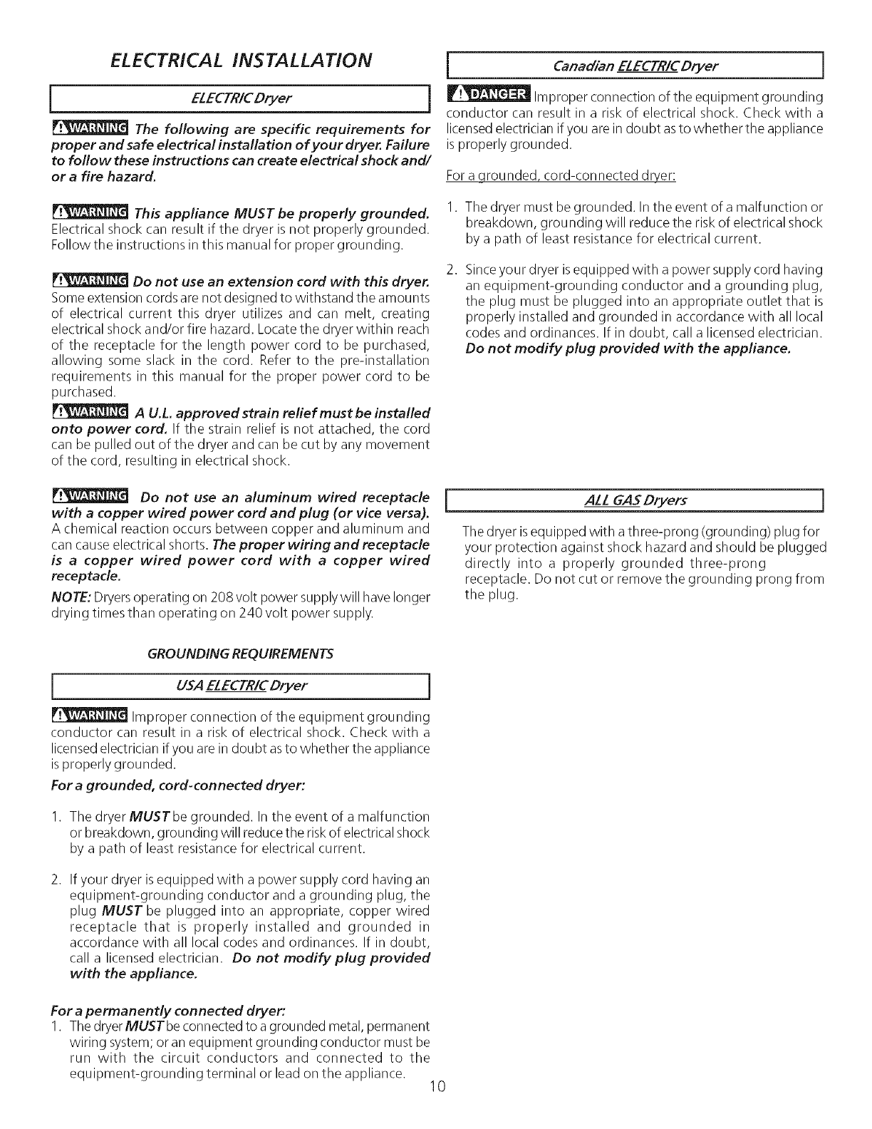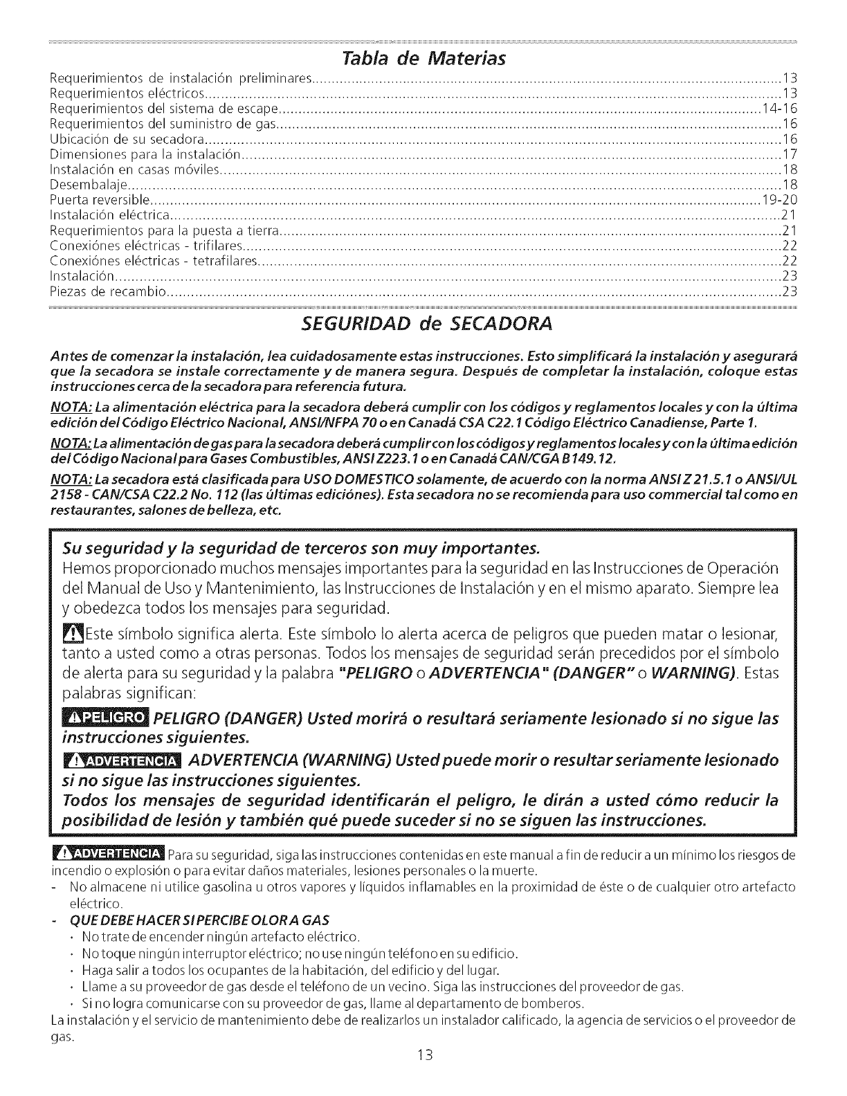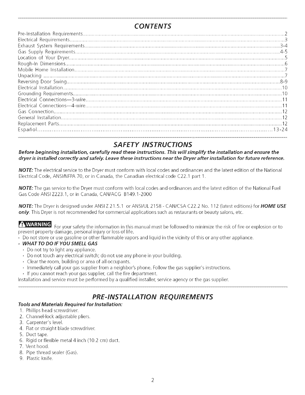 NOTE: The Dryer is designed under ANSI Z 21.5.1 or ANSI/UL 2158 - CAN/CSA C22.2 No. 112 (latest editions) for HOME USE