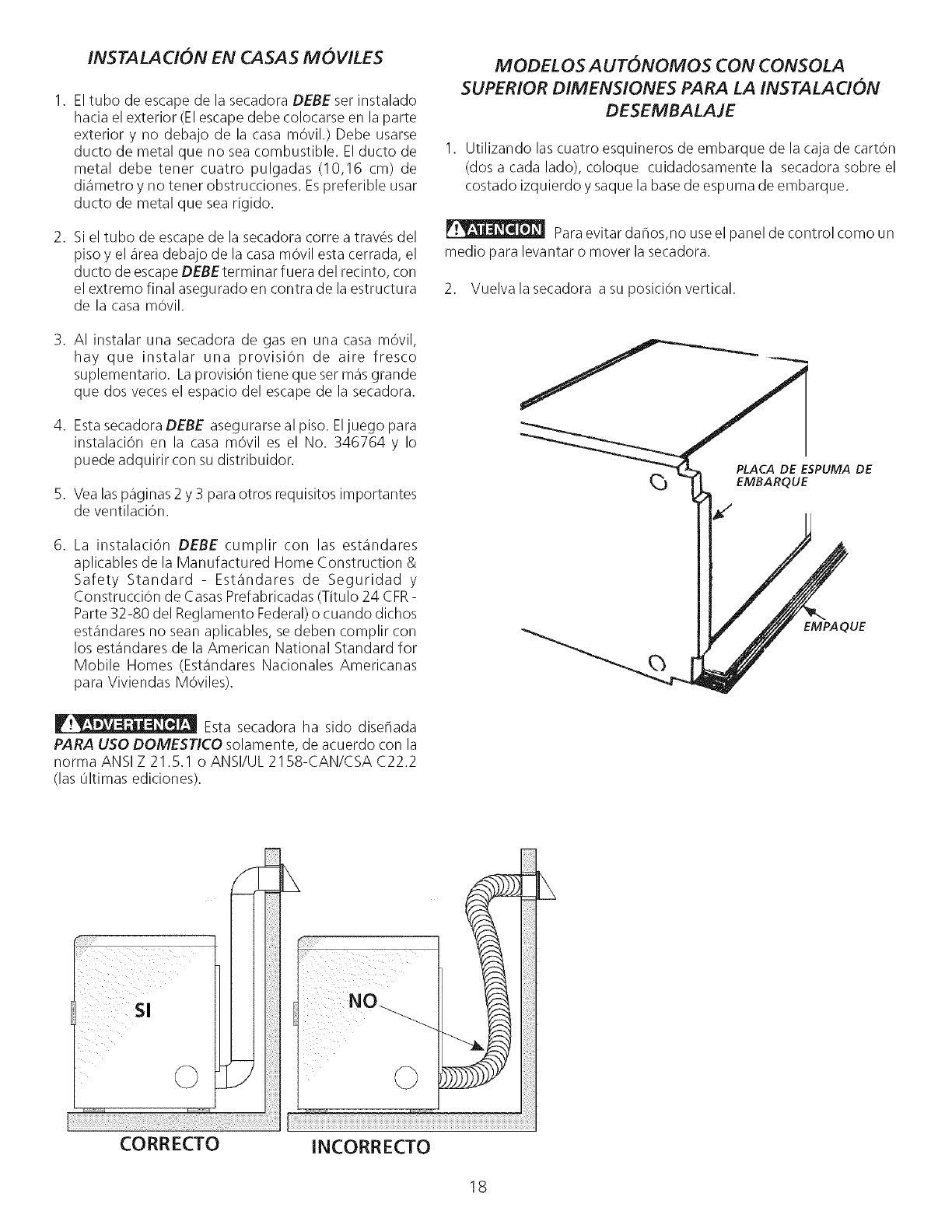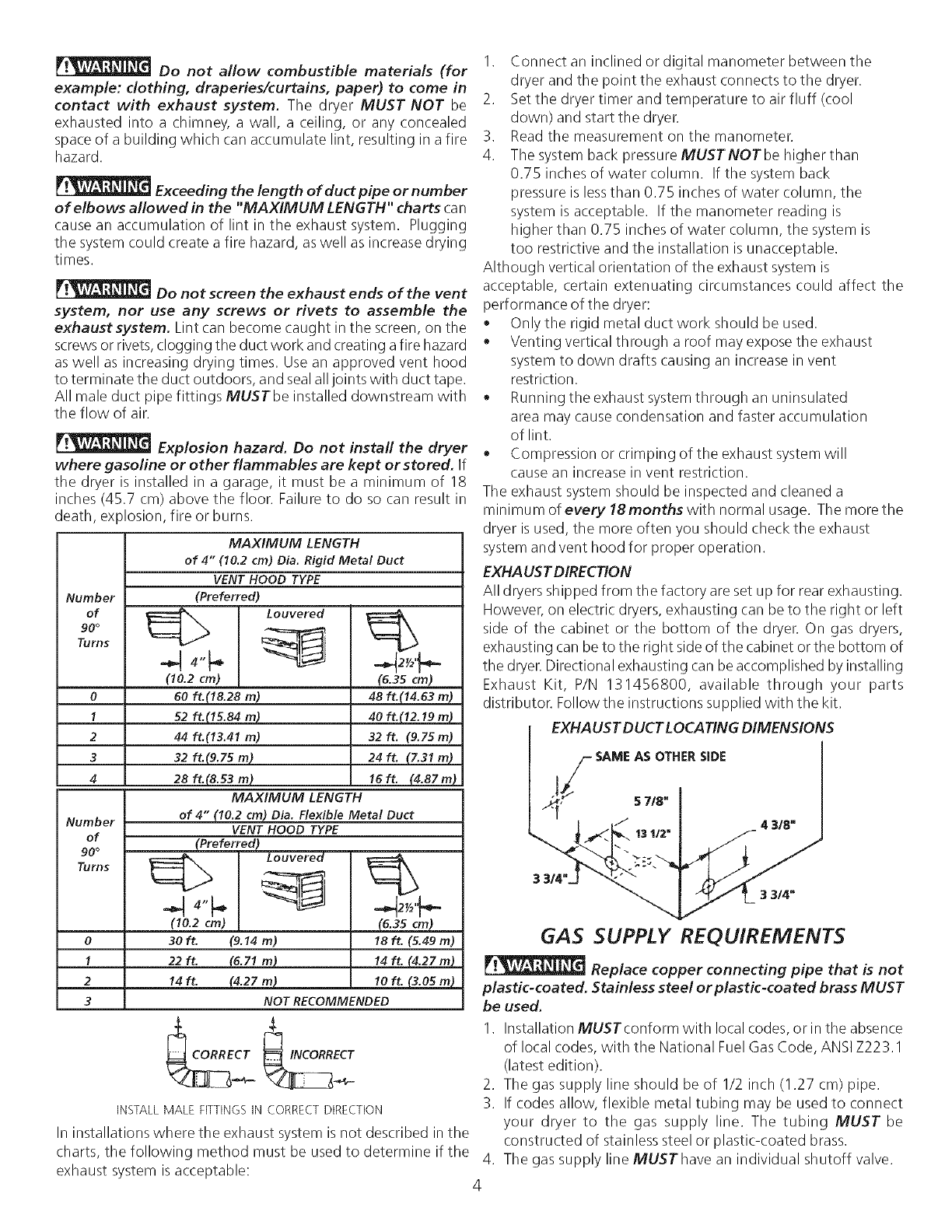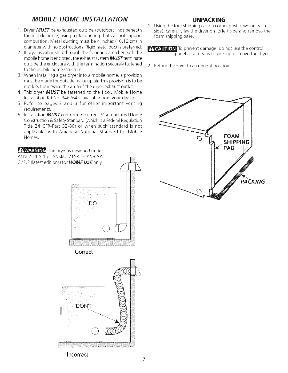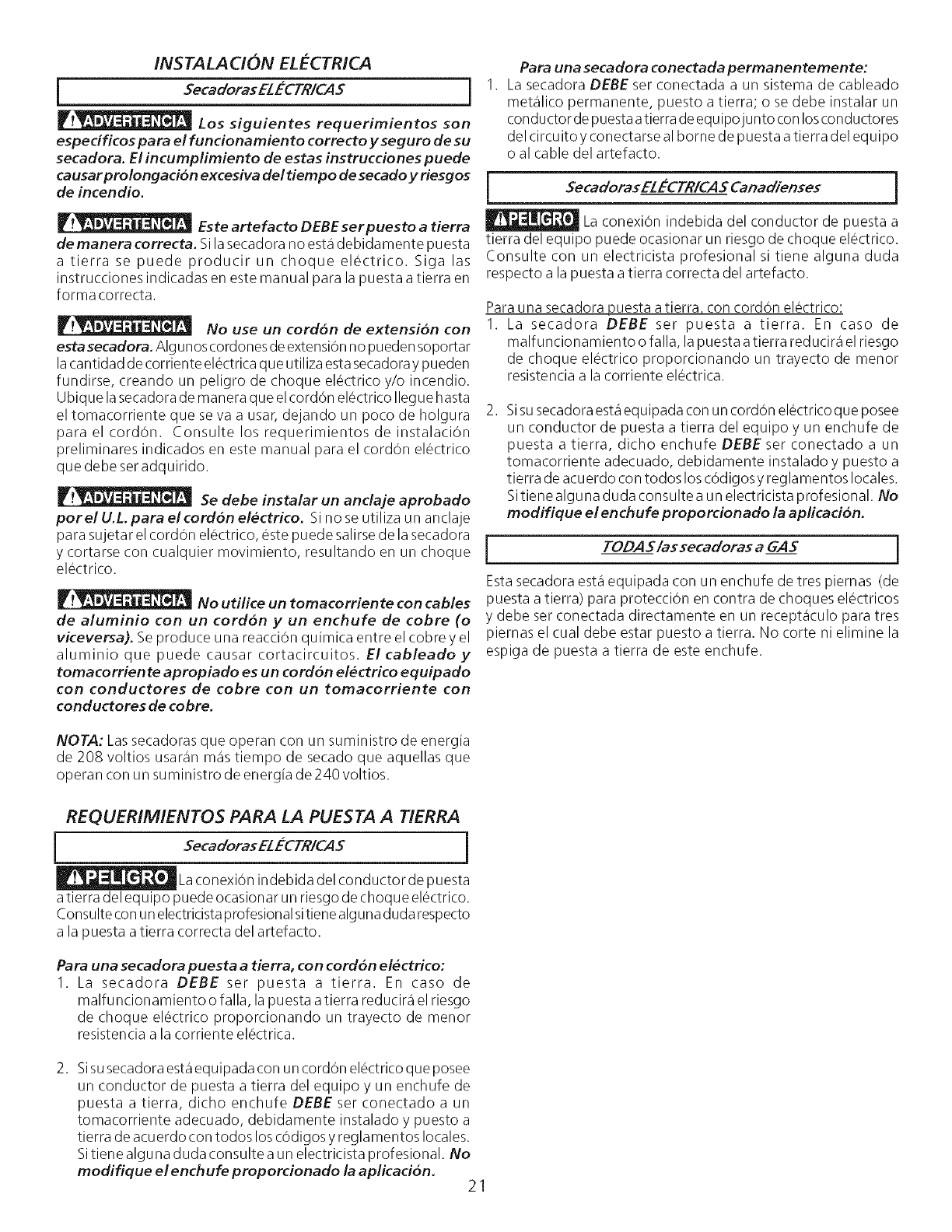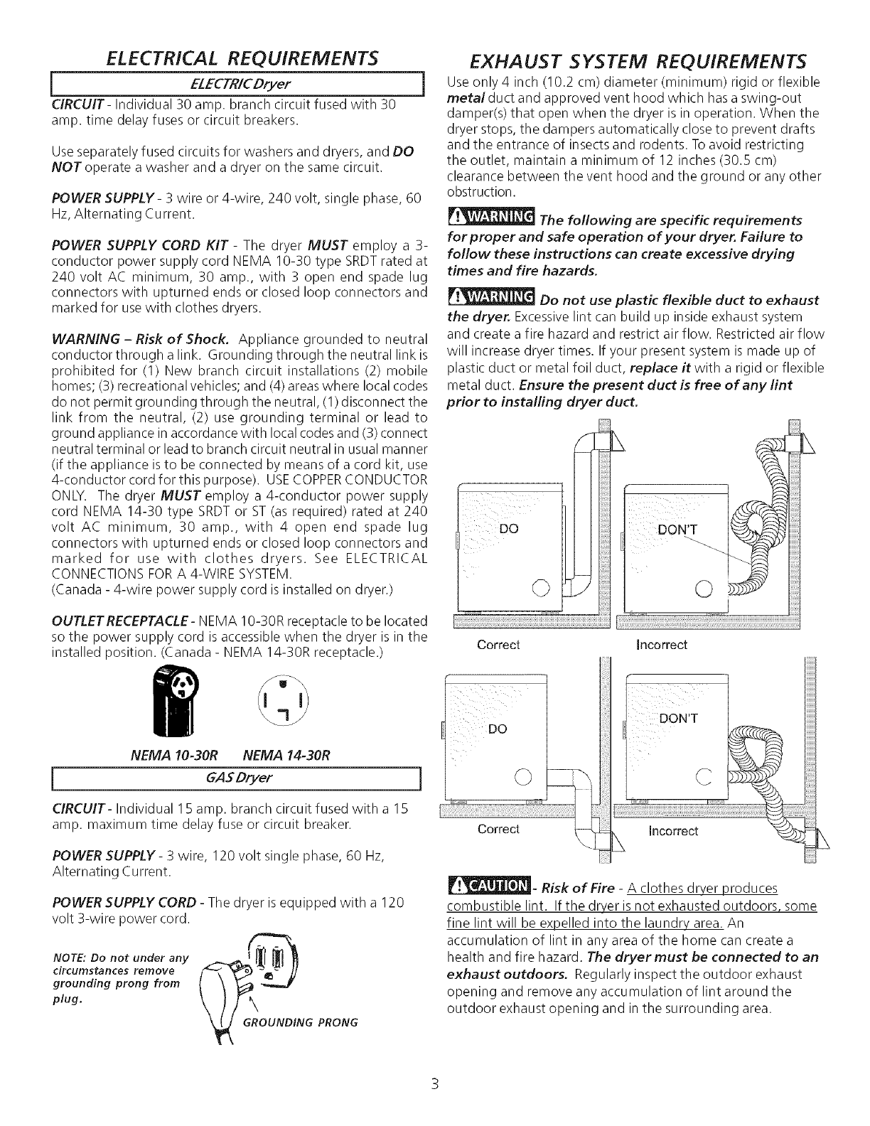 NOTE: The Dryer is designed under ANSI Z 21.5.1 or ANSI/UL 2158 - CAN/CSA C22.2 No. 112 (latest editions) for HOME USE