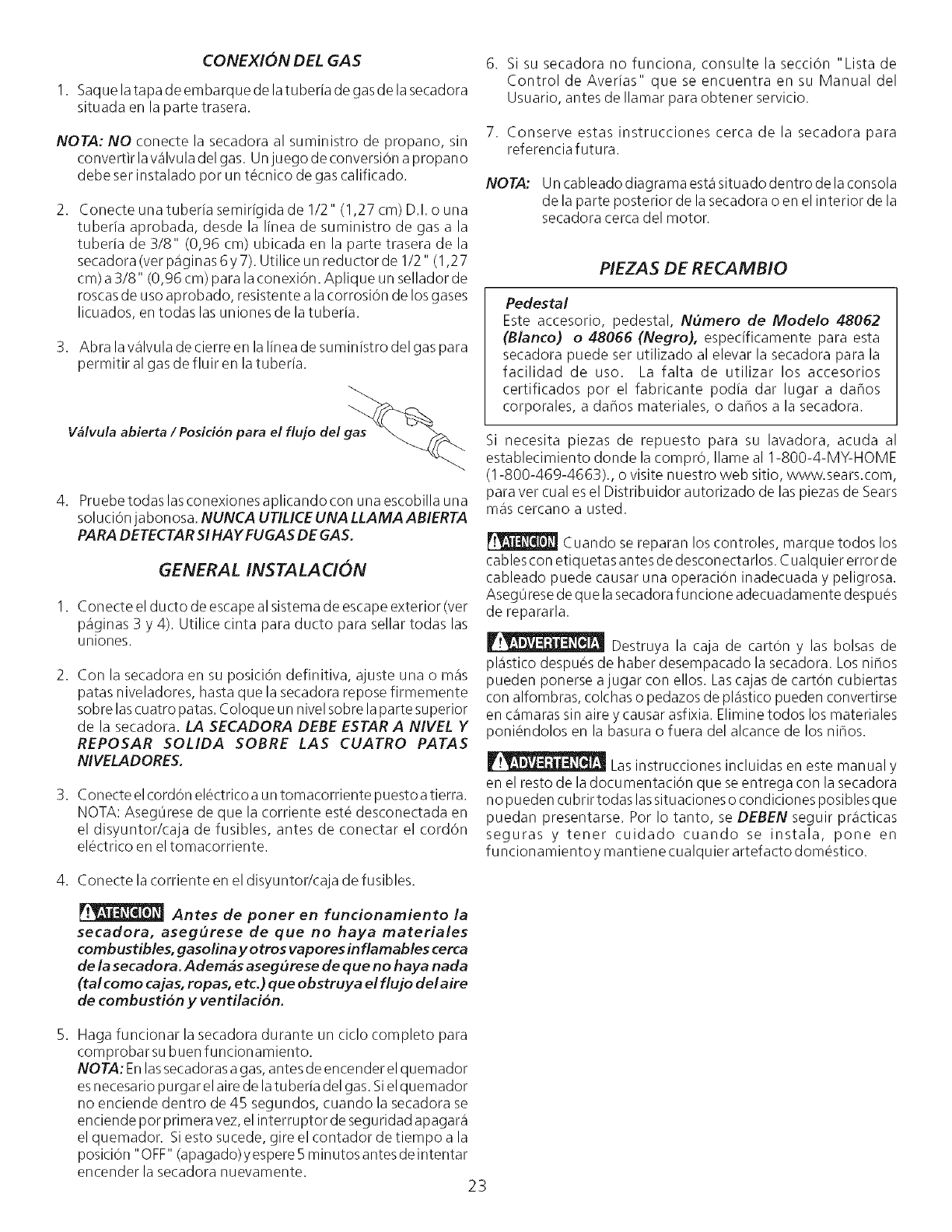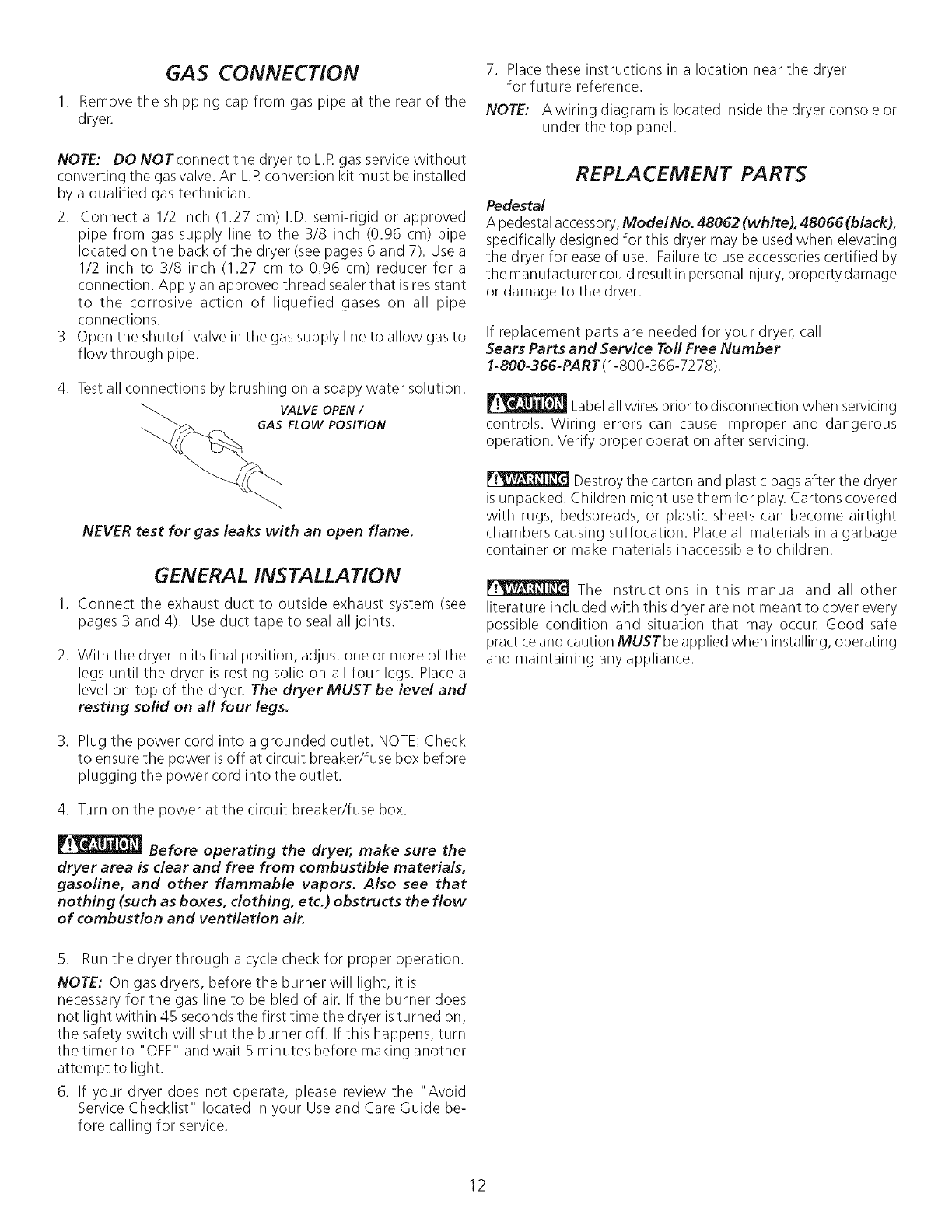 NOTE: The gas service to the Dryer must conform with local codes and ordinances and the latest edition of the National Fuel