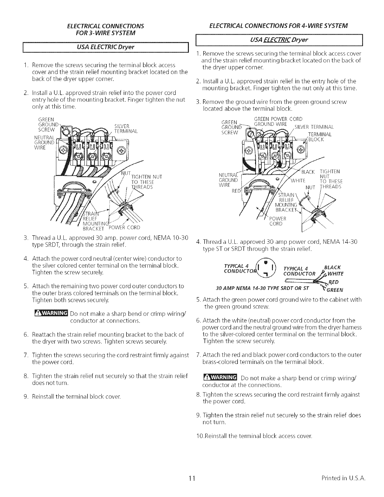 ONLY. The dryer MUST employ a 4-conductor power supply