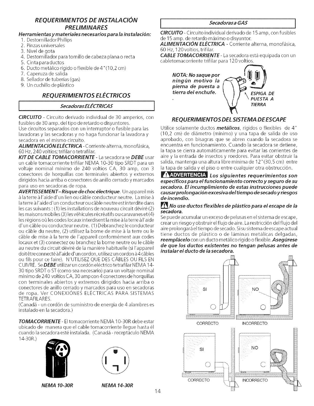 installed position. (Canada - NEMA 14-30R receptacle.)