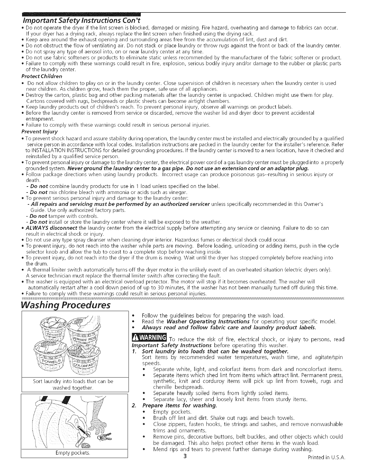 o To reduce the risk of fire, electrical shock, or injury to persons when using this laundry center, comply with the basic v_i_hings listed