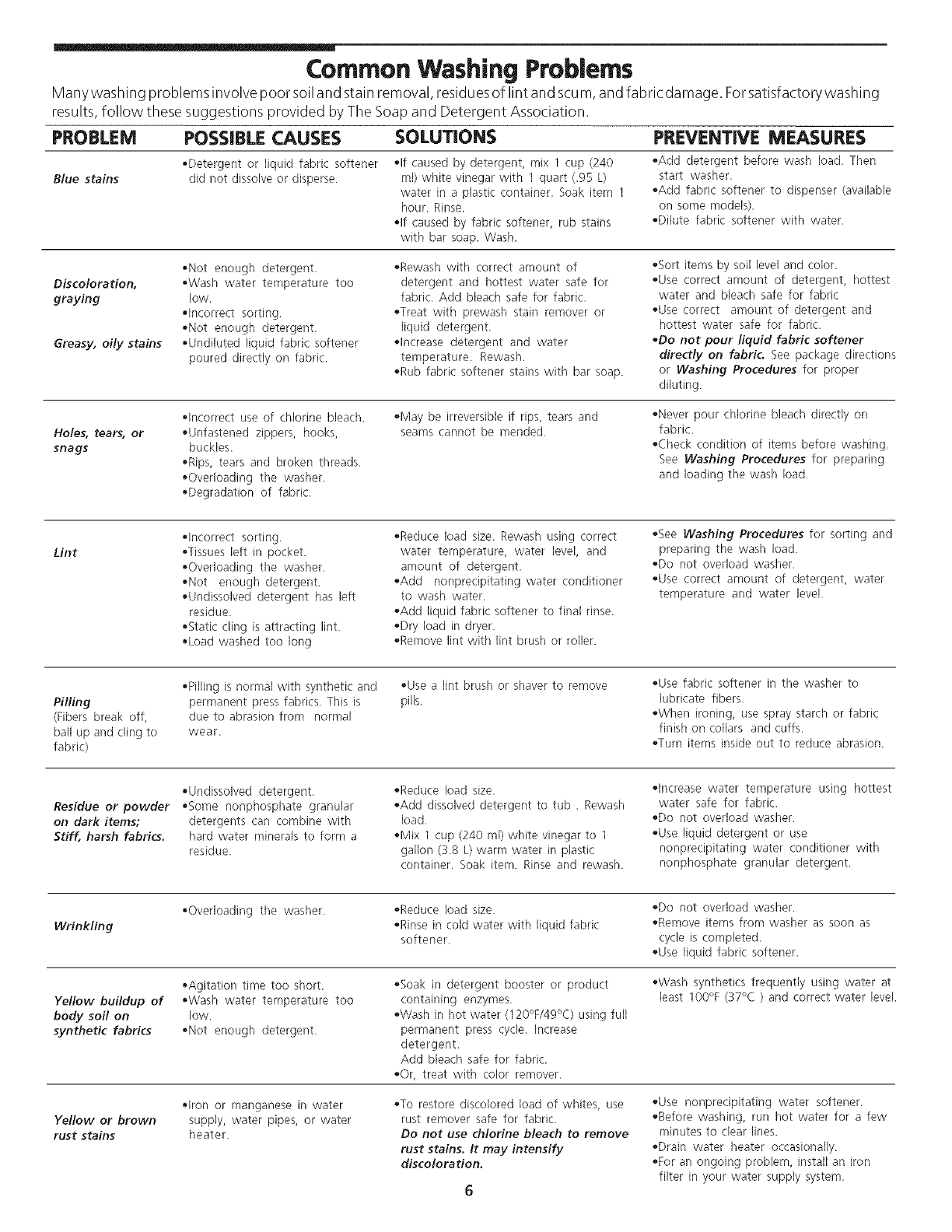 Common Washing Problems................................................ 6