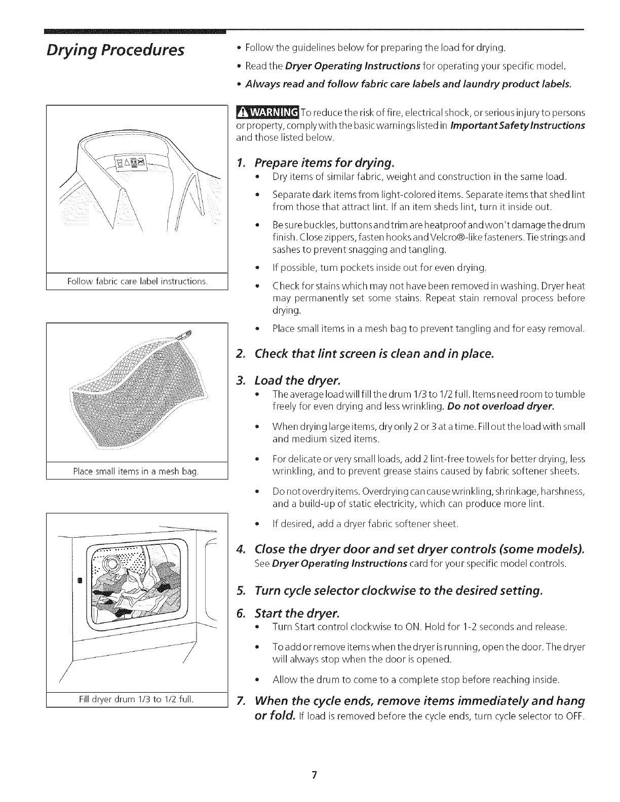 *Do not place items exposed to cooking oils in your dryer. Items contaminated with cooking oils may contribute to a chemical reaction that