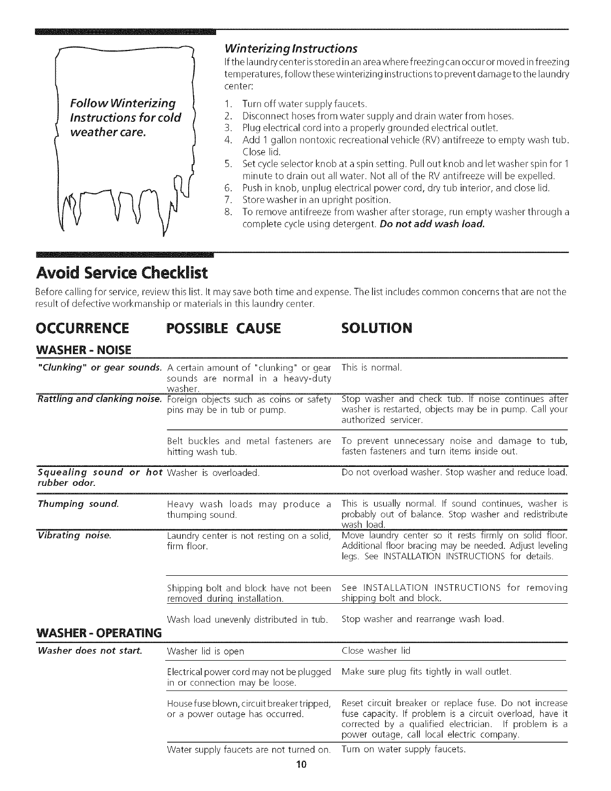 Avoid Service Checklist ................................................ 10-12