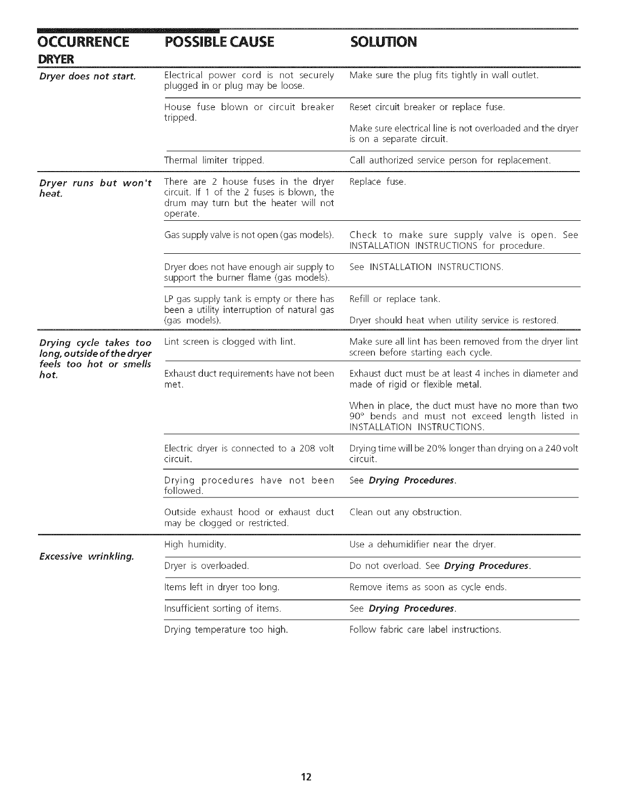 (gas models). Dryer should heat when utility service is restored.