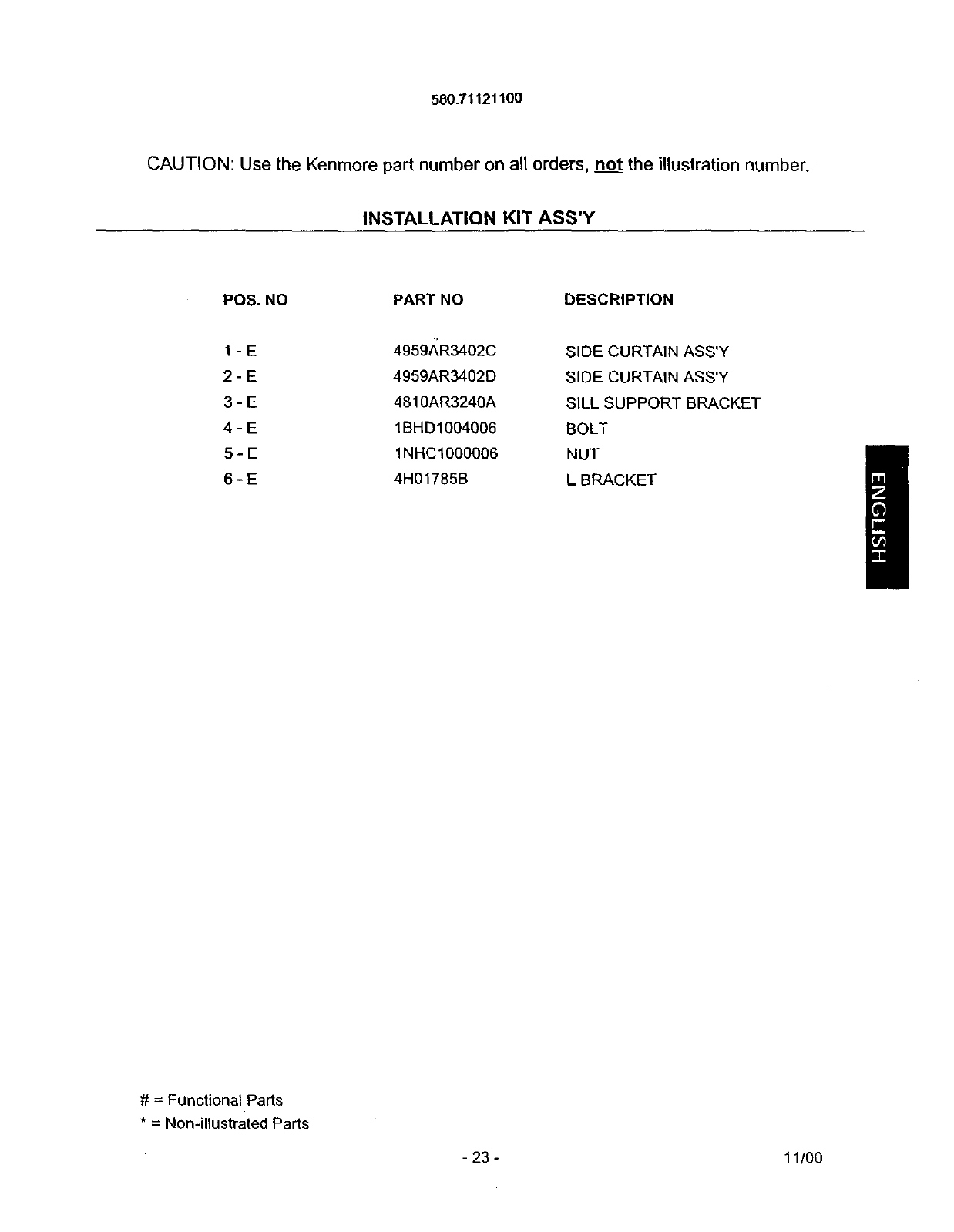 CAUTION: Use the Kenmore part number on all orders, not: the illustration number.