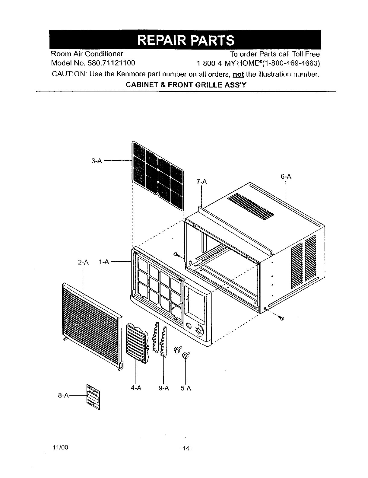 CAUTION: Use the Kenmore part number on all orders, no.__ttthe illustration number.